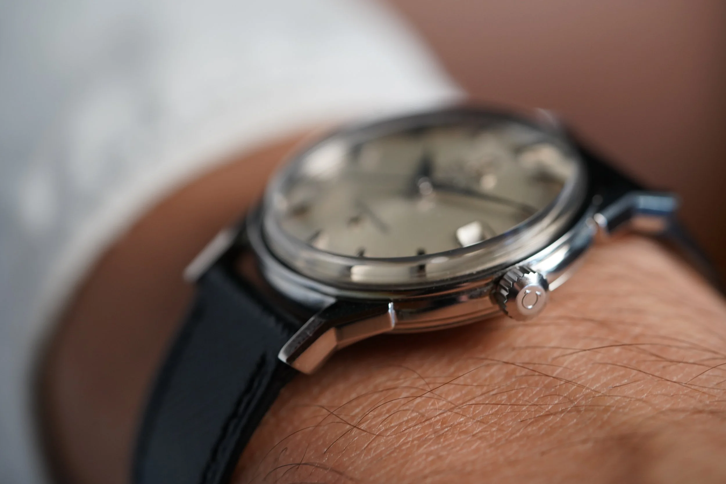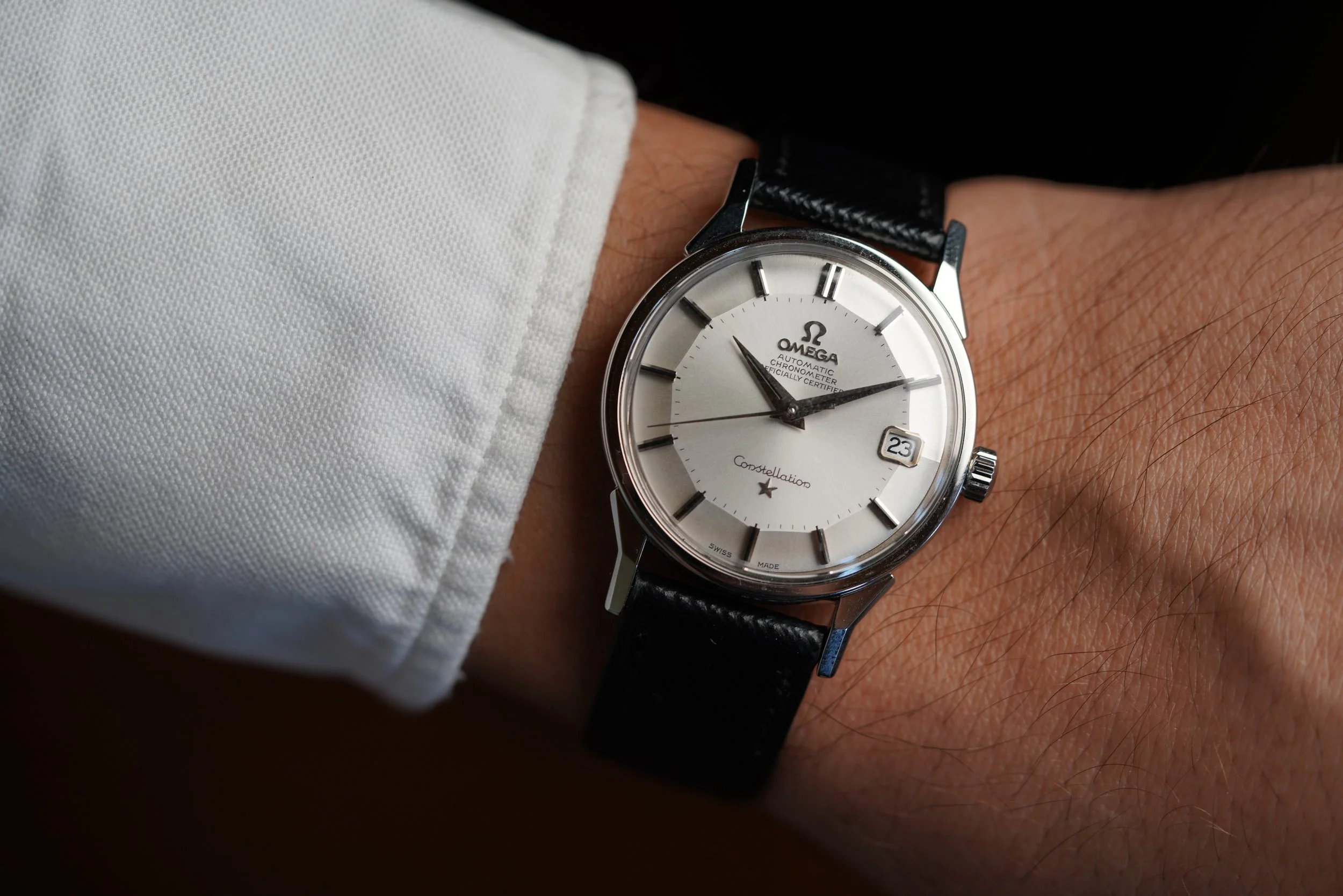 This OMEGA Constellation is a cool watch. It features the pie-pan dial The reference 168.005 has a diameter of 34mm in diameter and 43.5mm in length. The silver dial is in great condition. The case has been polished in the past. It is powered by the calibre 561 automatic movement. The case is made by CB!