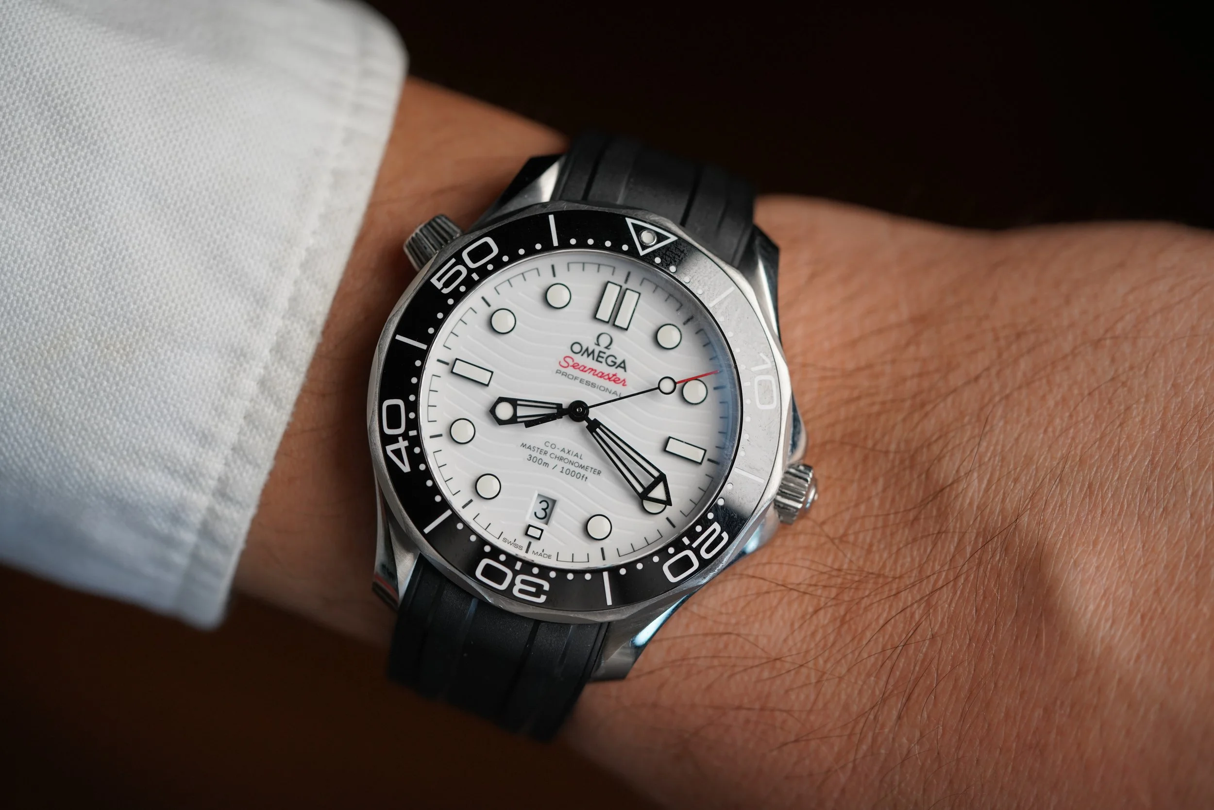 This OMEGA Seamaster Diver 300M reference 210.32.42.20.04.001 has a very long reference number and is a classic OMEGA. These are solid divers and fun to wear. The watch measures 42mm in diameter and has a very attractive and legible dial. It is powered by the OMEGA Master Chronometer Calibre 8800.