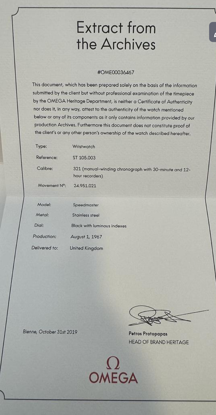 OMEGA Speedmaster Ed White Reference 105.003-65 Unpolished w/ Papers + Extract