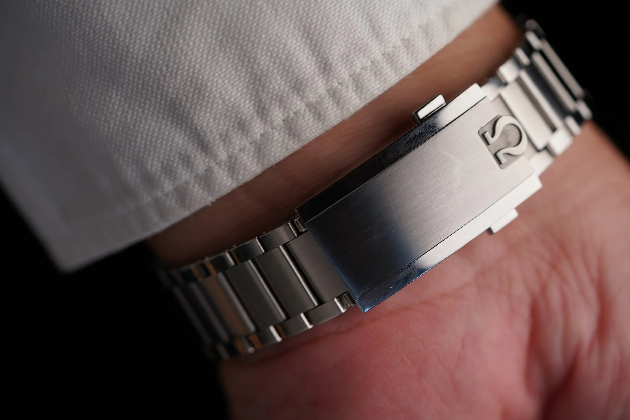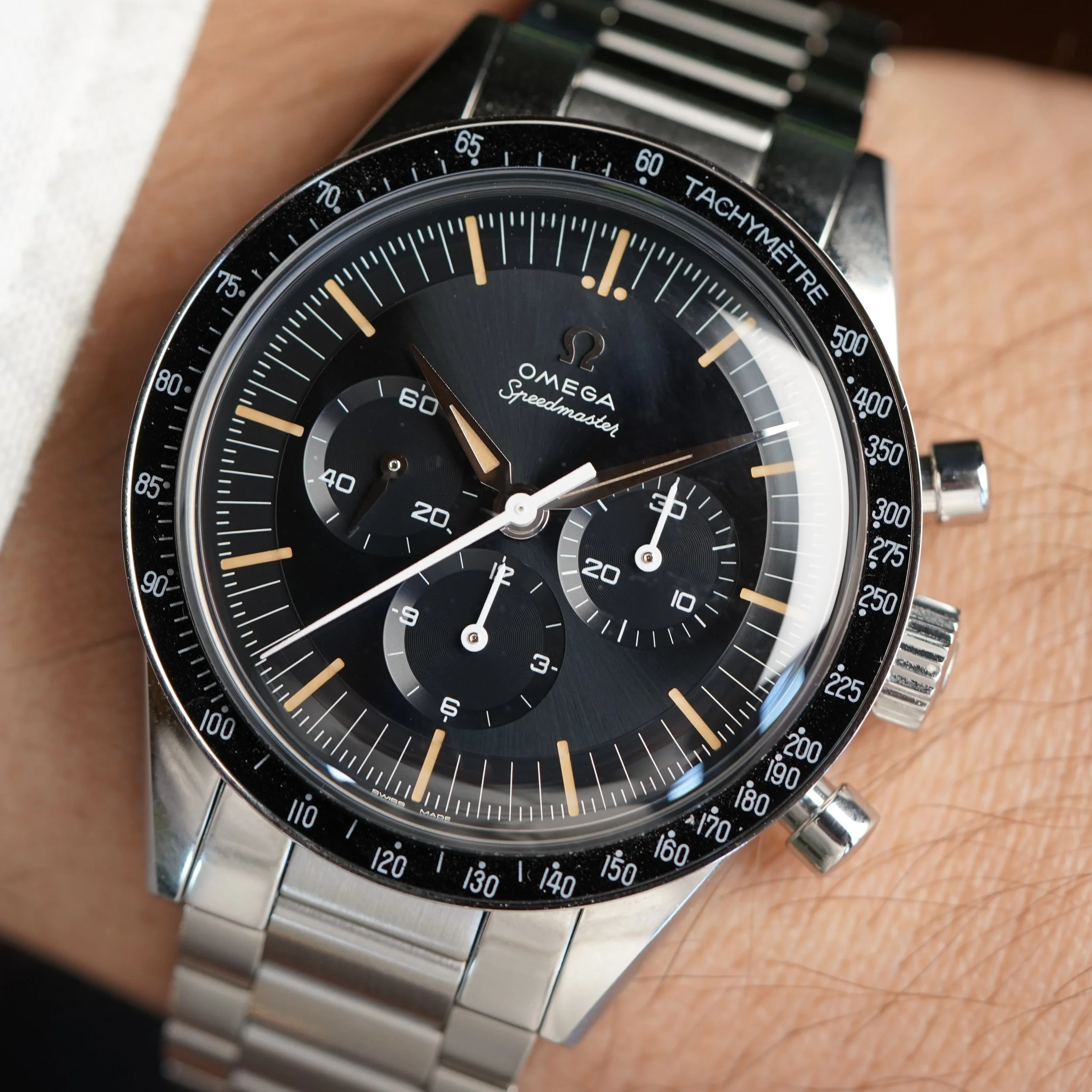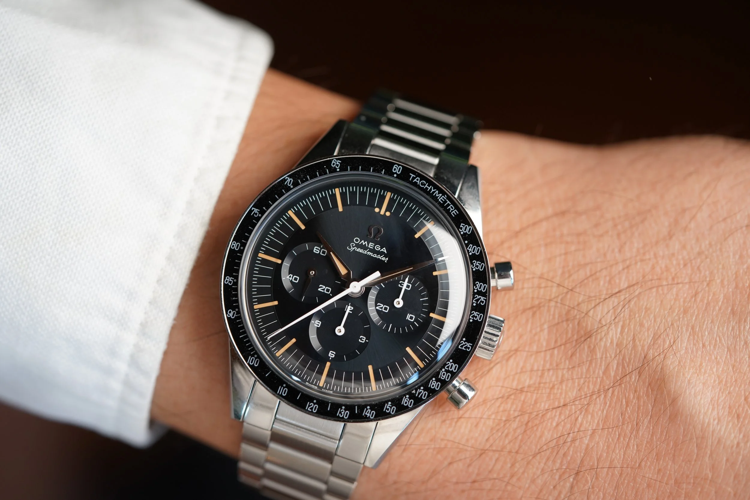 This is a great modern Speedmaster that pays homage to the second reference of Speedmaster, the reference CK2998. The case appears to be unpolished.