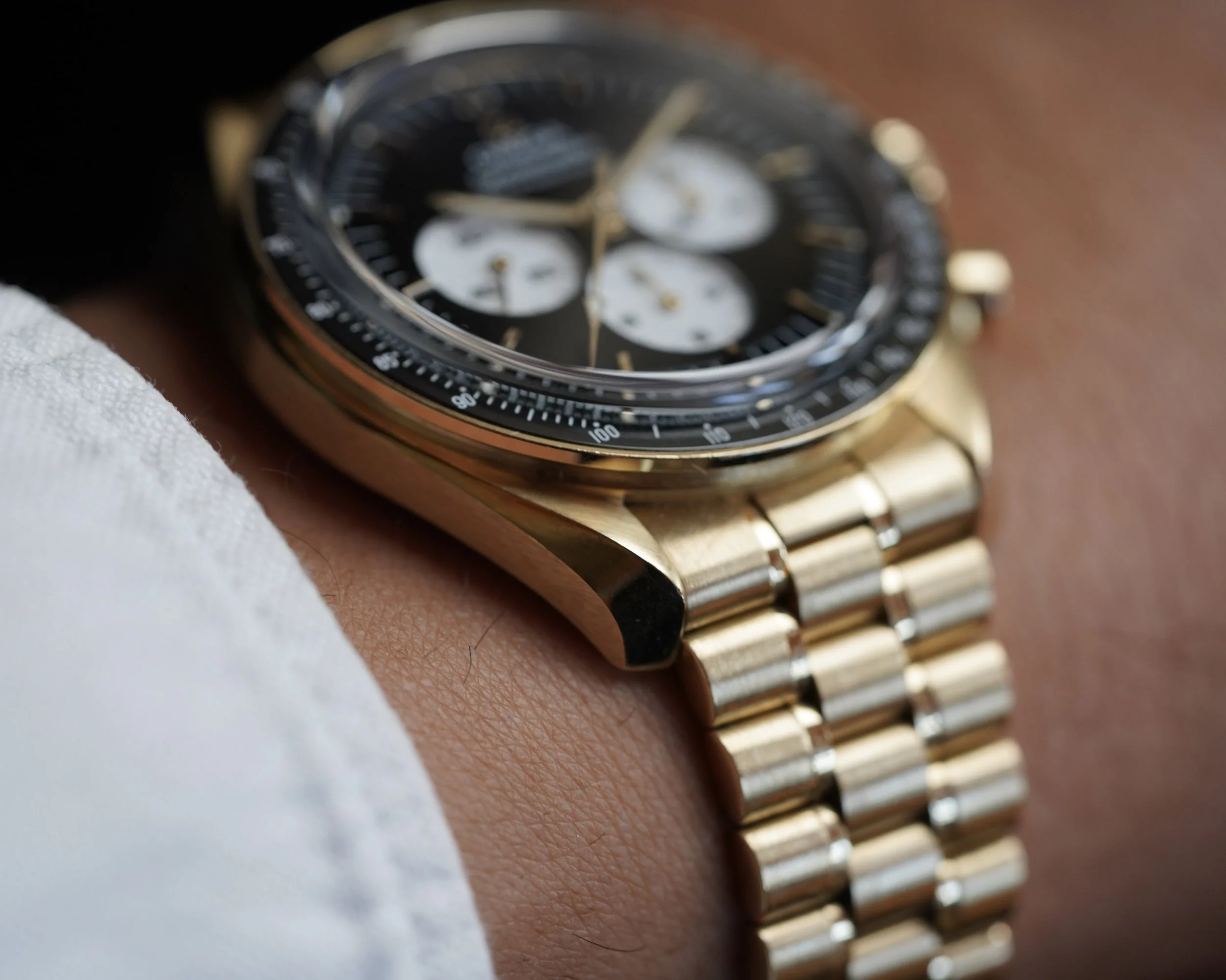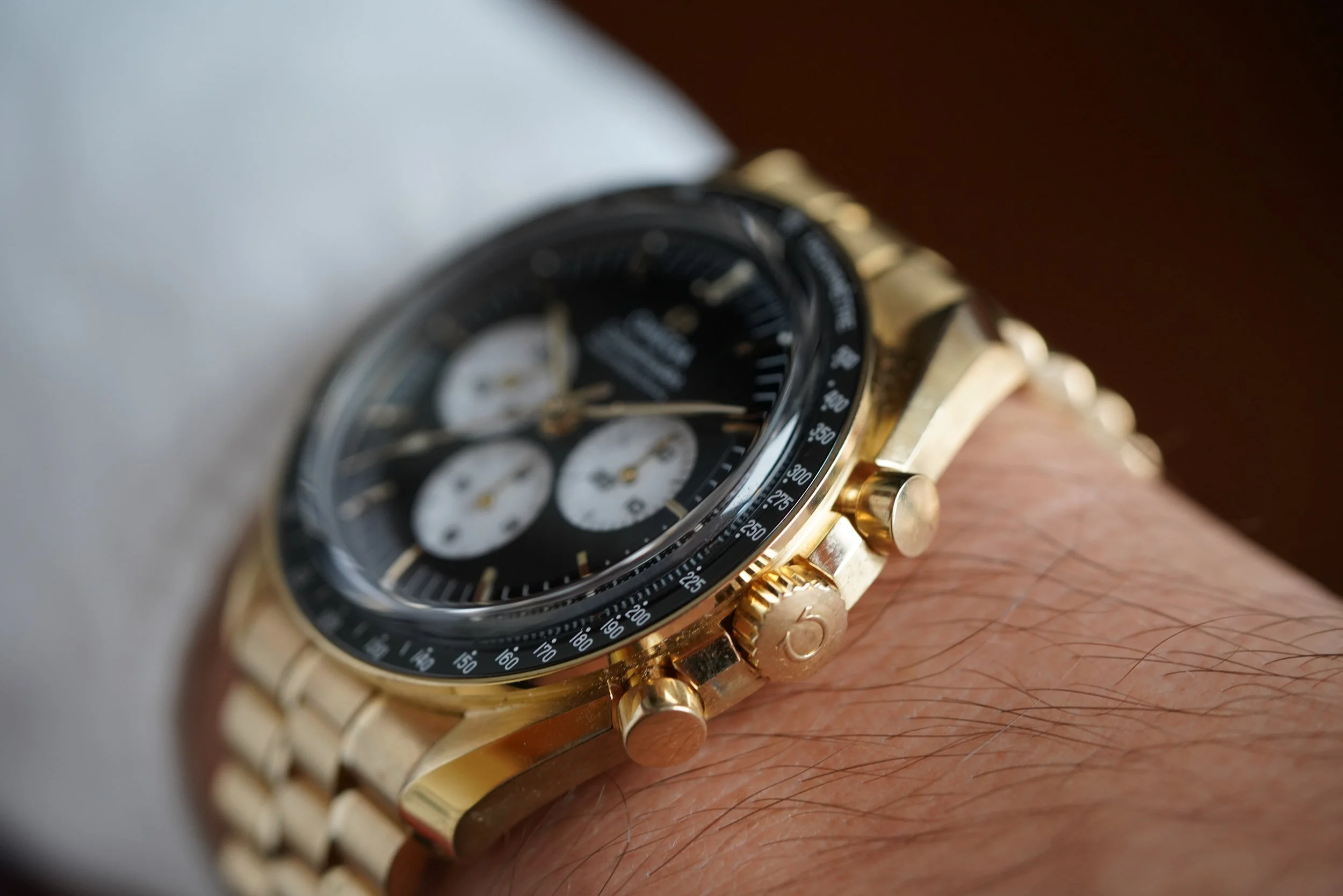 OMEGA Speedmaster in 18k Yellow Gold Unpolished w/ Box and Papers
