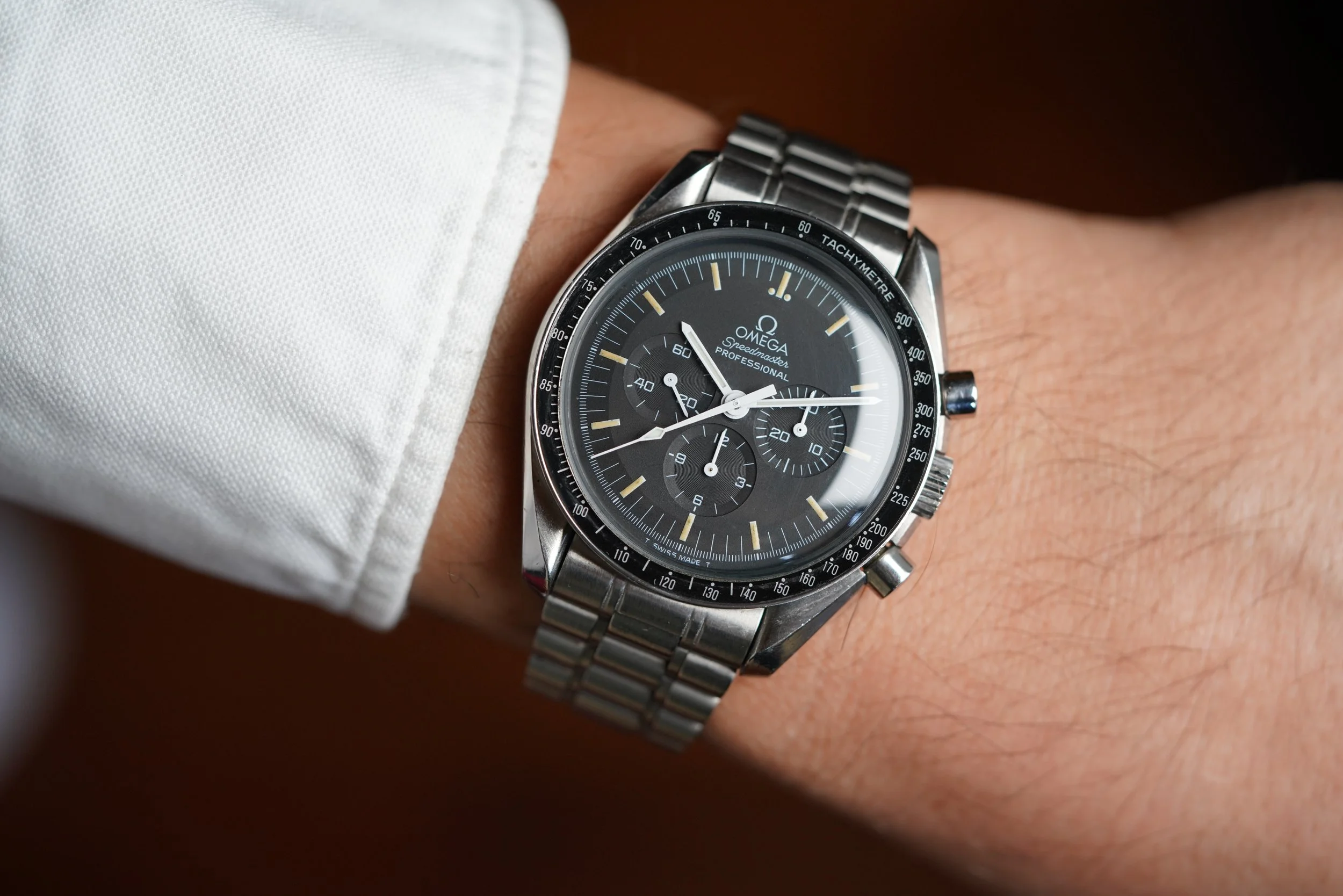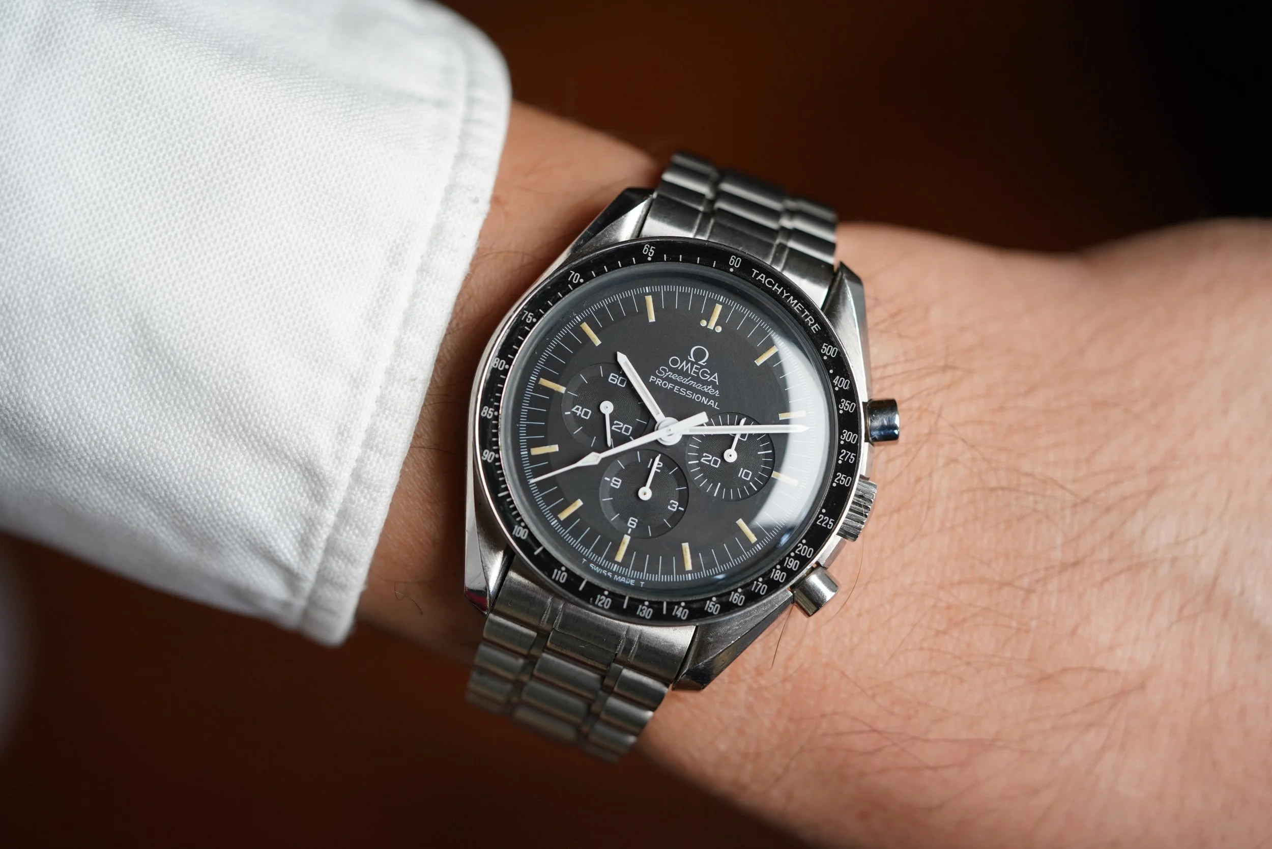 This Speedmaster Professional reference 145.0022 is a great steel sportwatch. The case is highly attractive and we believe it is unpolished. The watch is powered by the calibre 861. The production dates to circa 1990 based on the movement number. The case has been polished. The hands have been relumed.