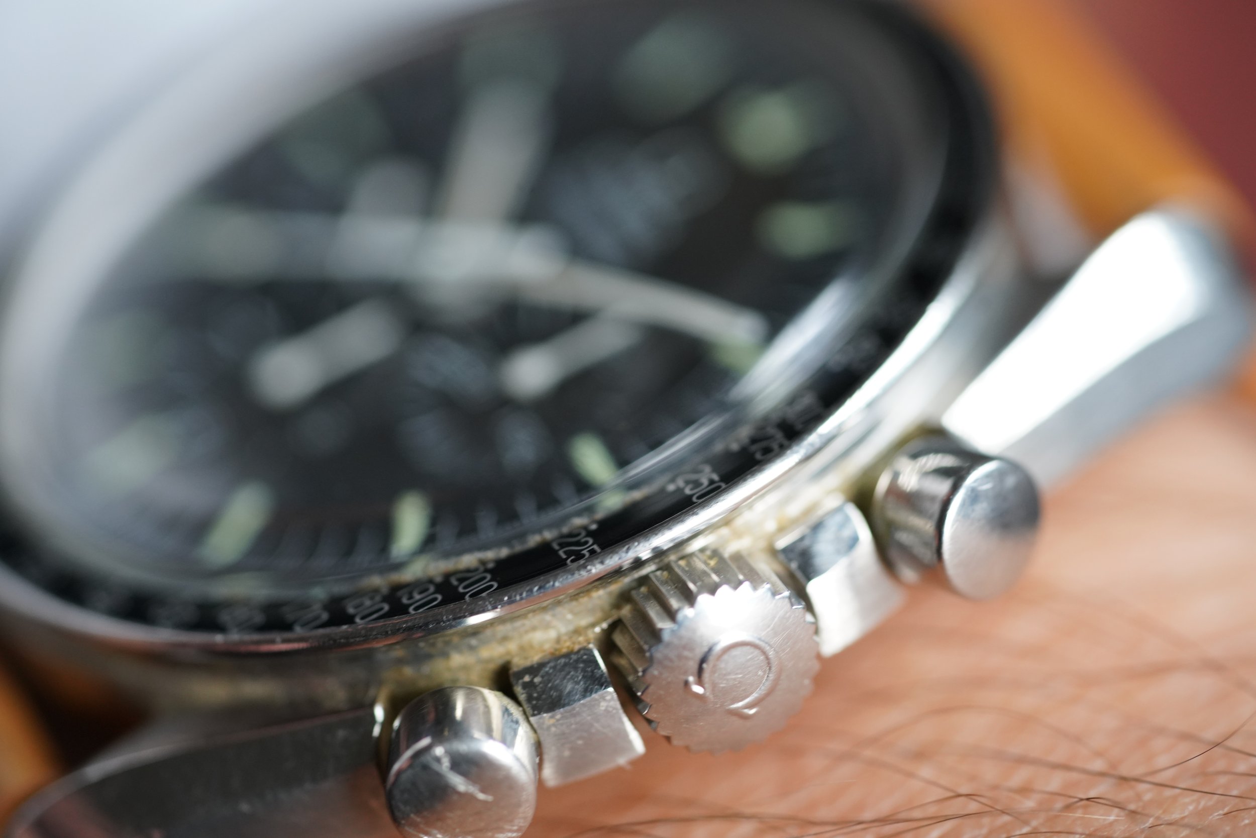 This OMEGA Speedmaster Professional Reference 145.022-69 is super cool example. The dial is very attractive. We believe the case is unpolished, but the case back appears to have been polished. It measures at 42mm. It is powered by a manual wind movement (Caliber 861 made by Lemania). The crown appears to be replaced. The crystal appears to be a signed original. It features the original dot over 90 (DON) bezel in great condition. Historically, these bezels have sold as high as $5,500 by themselves, so the whole watch is basically priced at the previous value of the bezel.