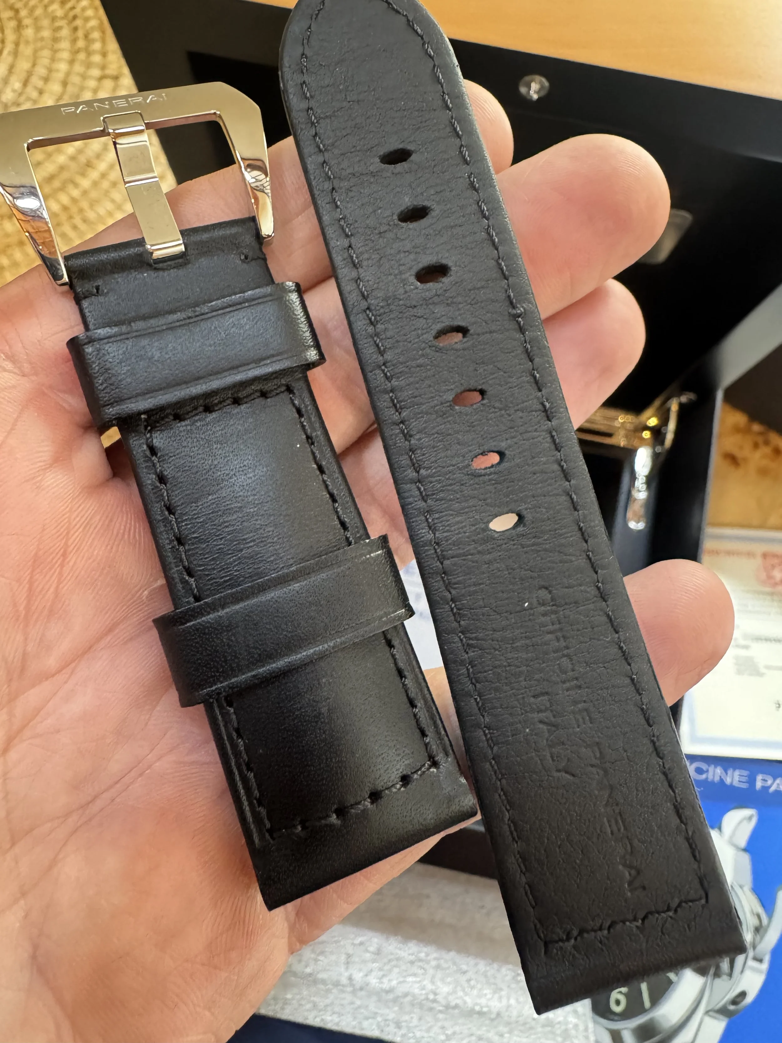 It is paired on an aftermarket strap and buckle. The original strap and buckle are in the box.