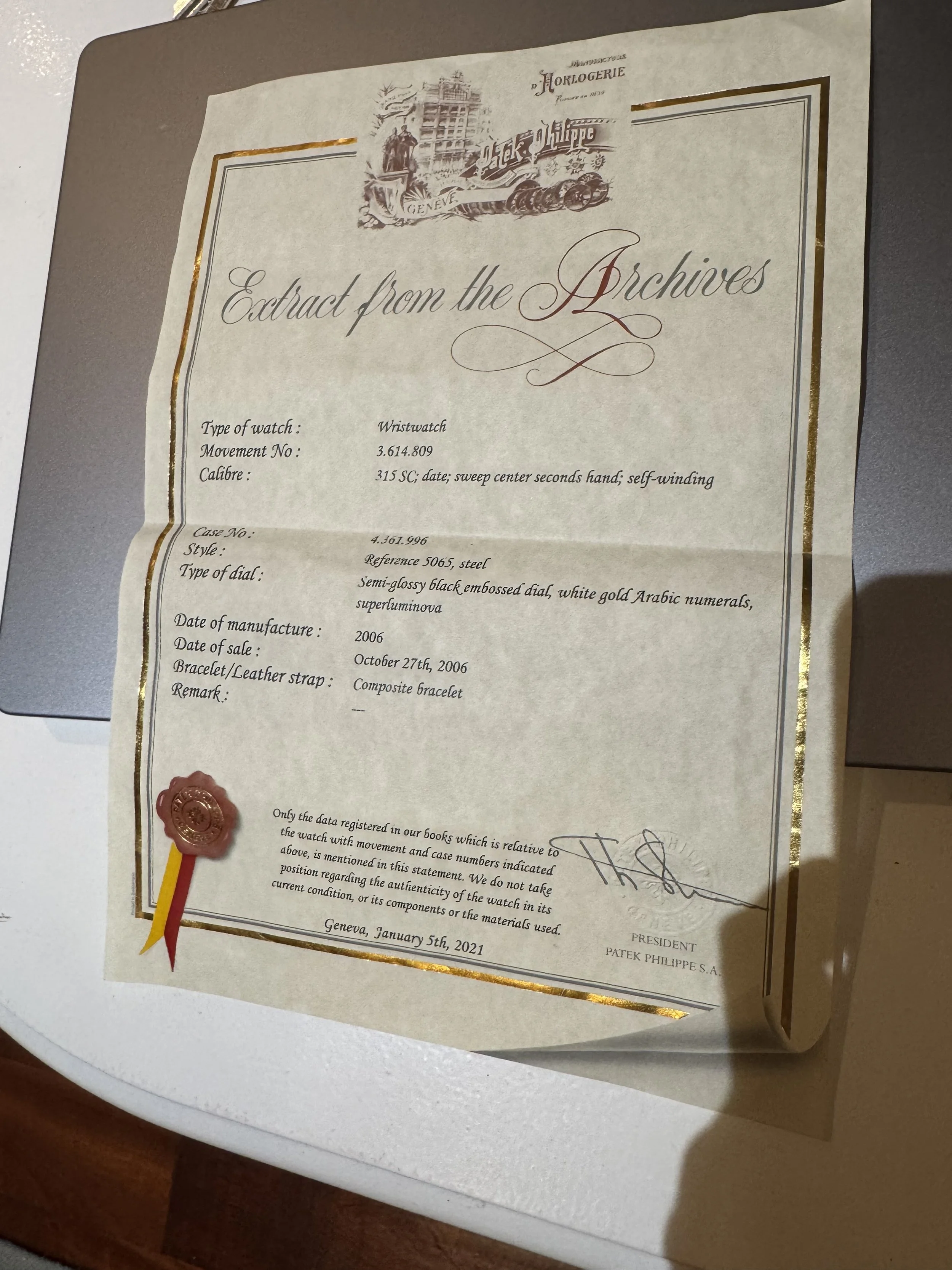 The Patek Philippe reference 5065A is one of the great contemporary sports watches. At 38mm in diameter, it has fantastic proportions that can appeal to both vintage and modern enthusiasts. We believe the case is unpolished.
