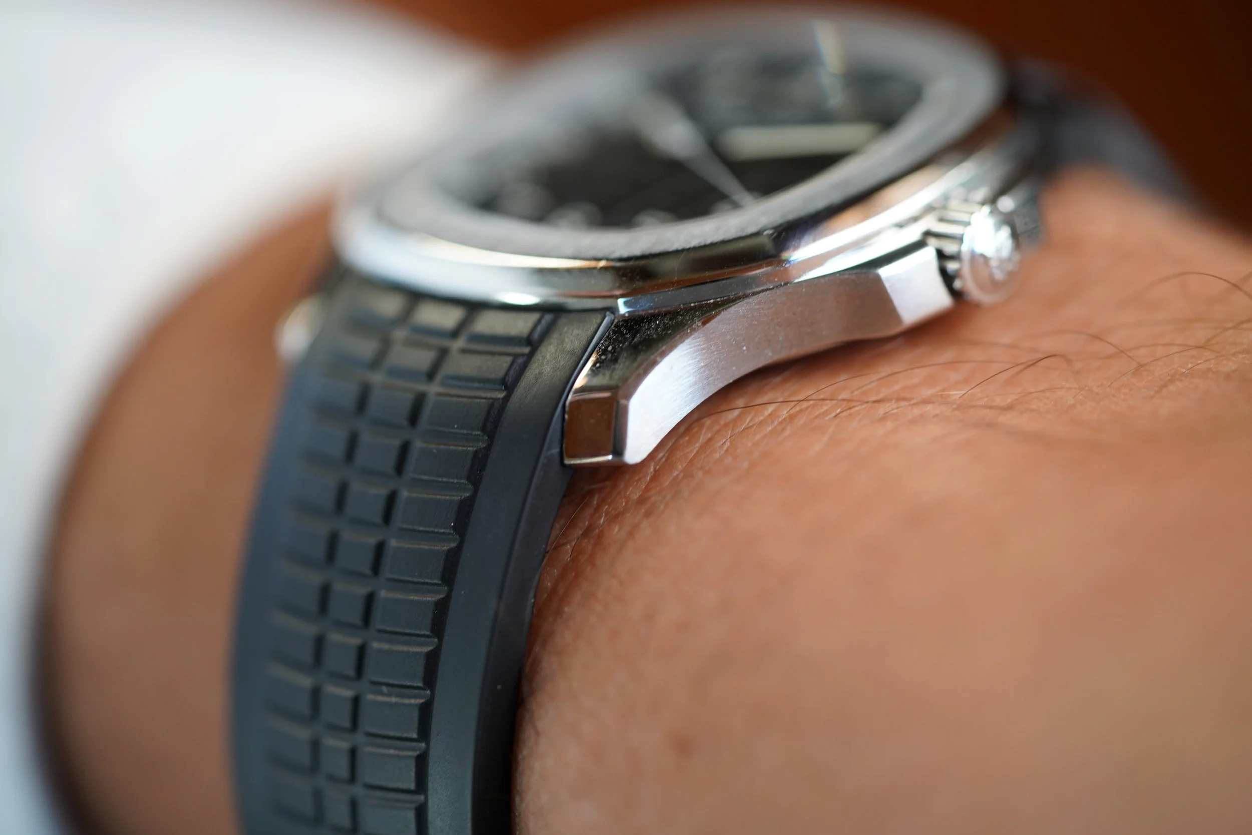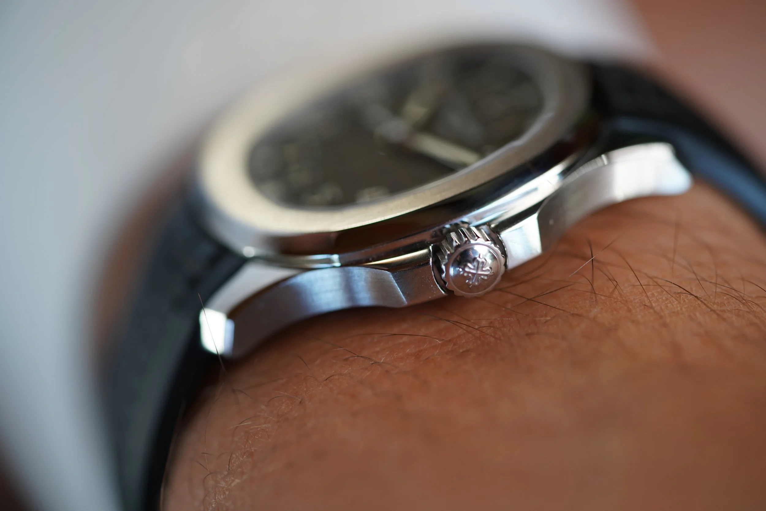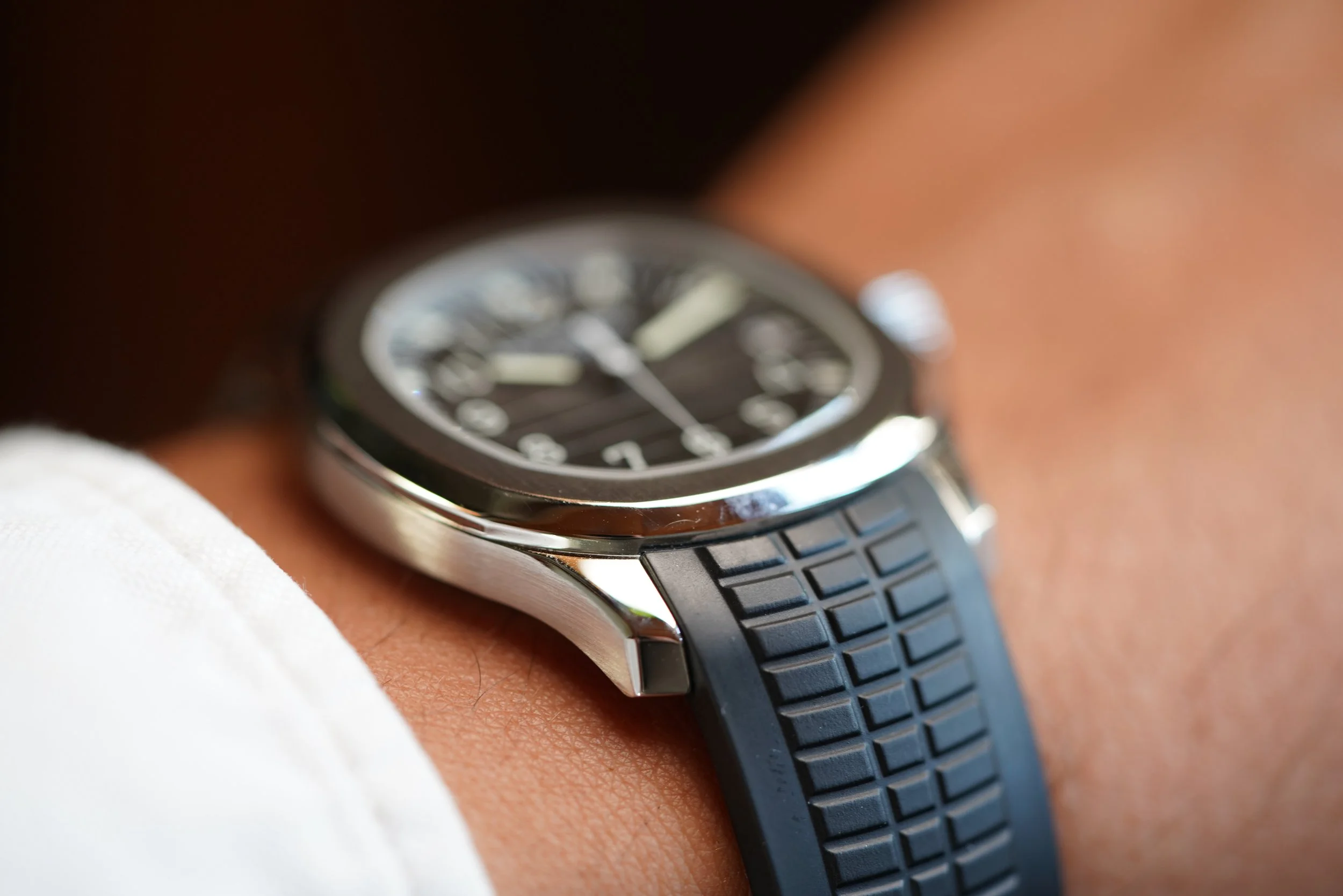 This Patek Philippe Aquanaut reference 5165A-001 is a spectacular sports watch and one of the most beloved models from Patek Philippe. The stainless steel case has been lightly polished but it attractive! It measures 38mm in diameter.