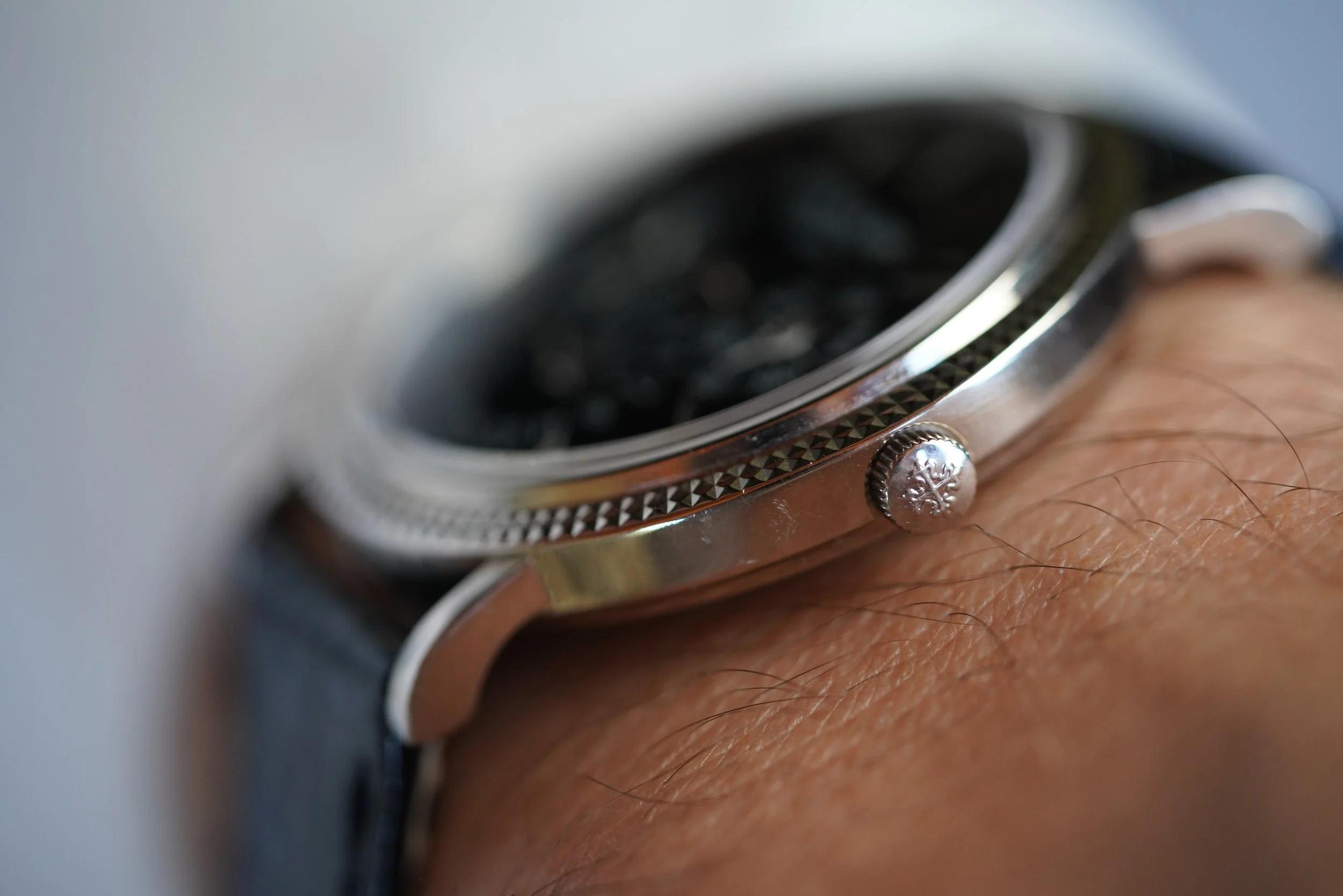 This Patek Philippe Perpetual Calendar reference 5139G is a beautiful 18k white gold. The case measures 39mm in diameter (approximately 45mm lug-to-lug). The watch features a black dial and is paired with an 18k white gold Patek Philippe buckle. It comes with a black hand stitched Patek Philippe leather strap as well. The case appears to be unpolished.