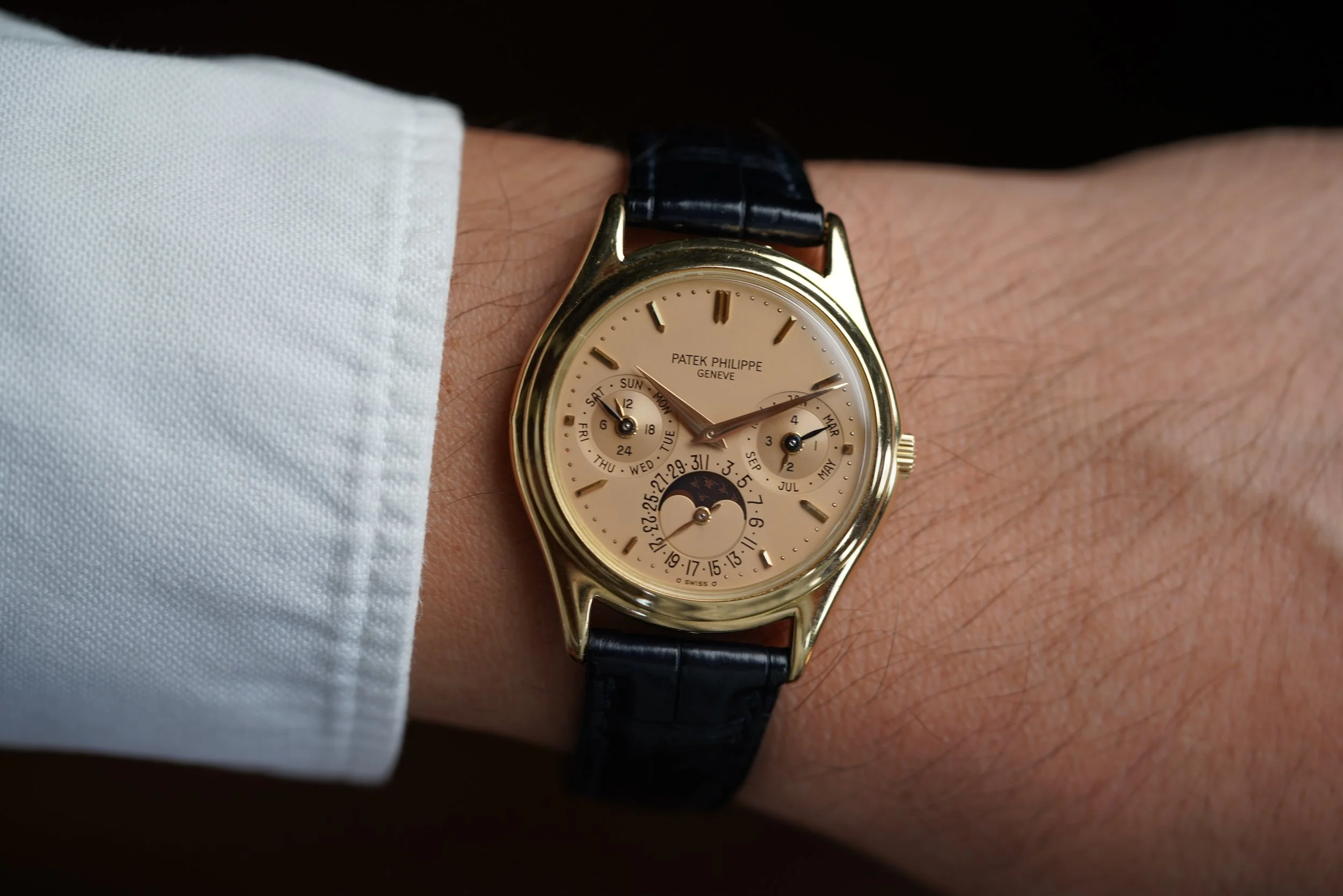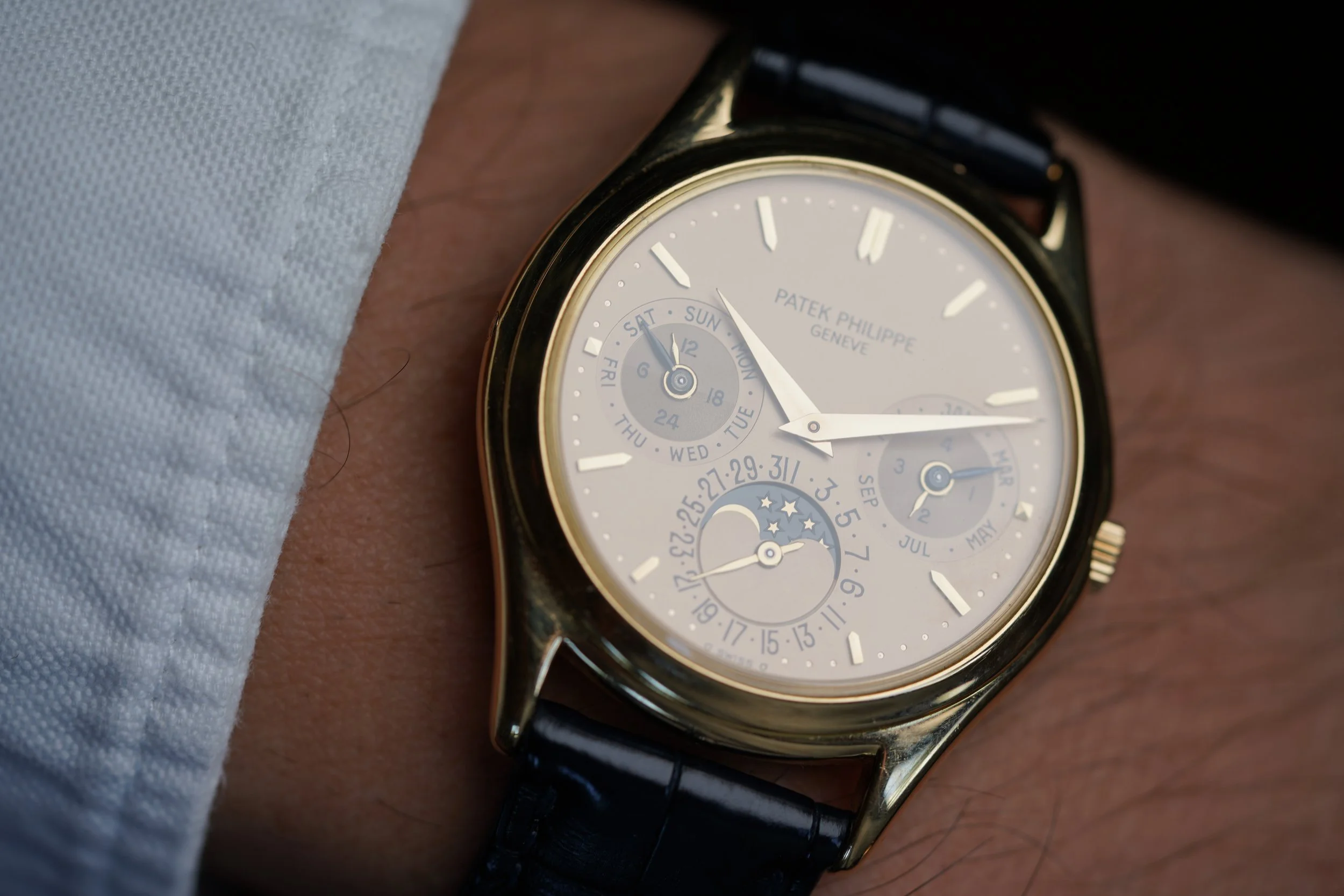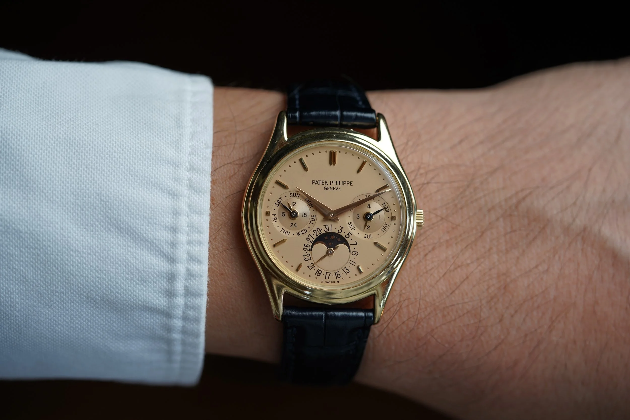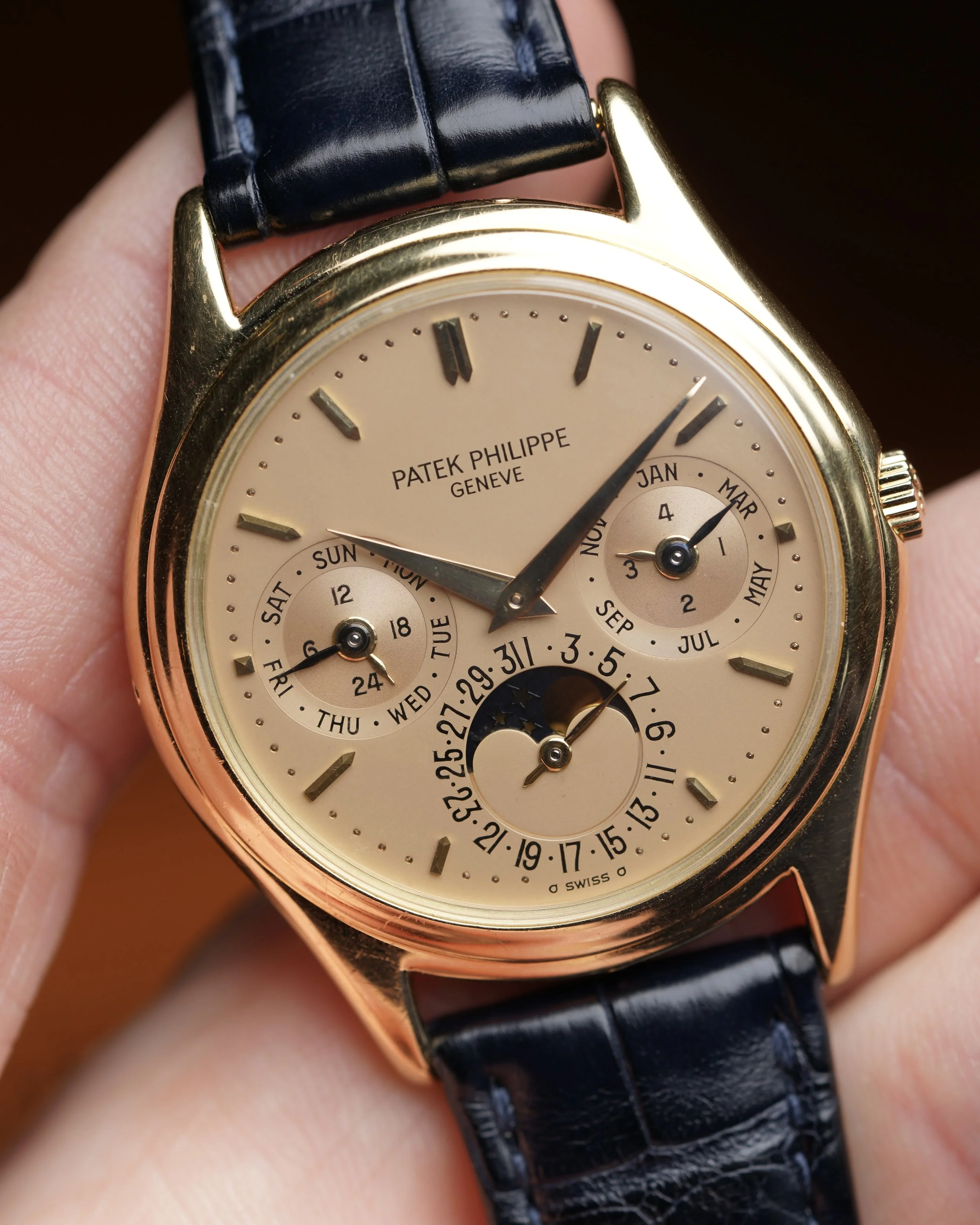 The reference 3940 is arguably the most elegant Patek complicated watch made over the last 40 years. The watch is powered by the self-winding calibre 240Q with microrotor, which when released was the thinnest automatic perpetual calendar movement available.