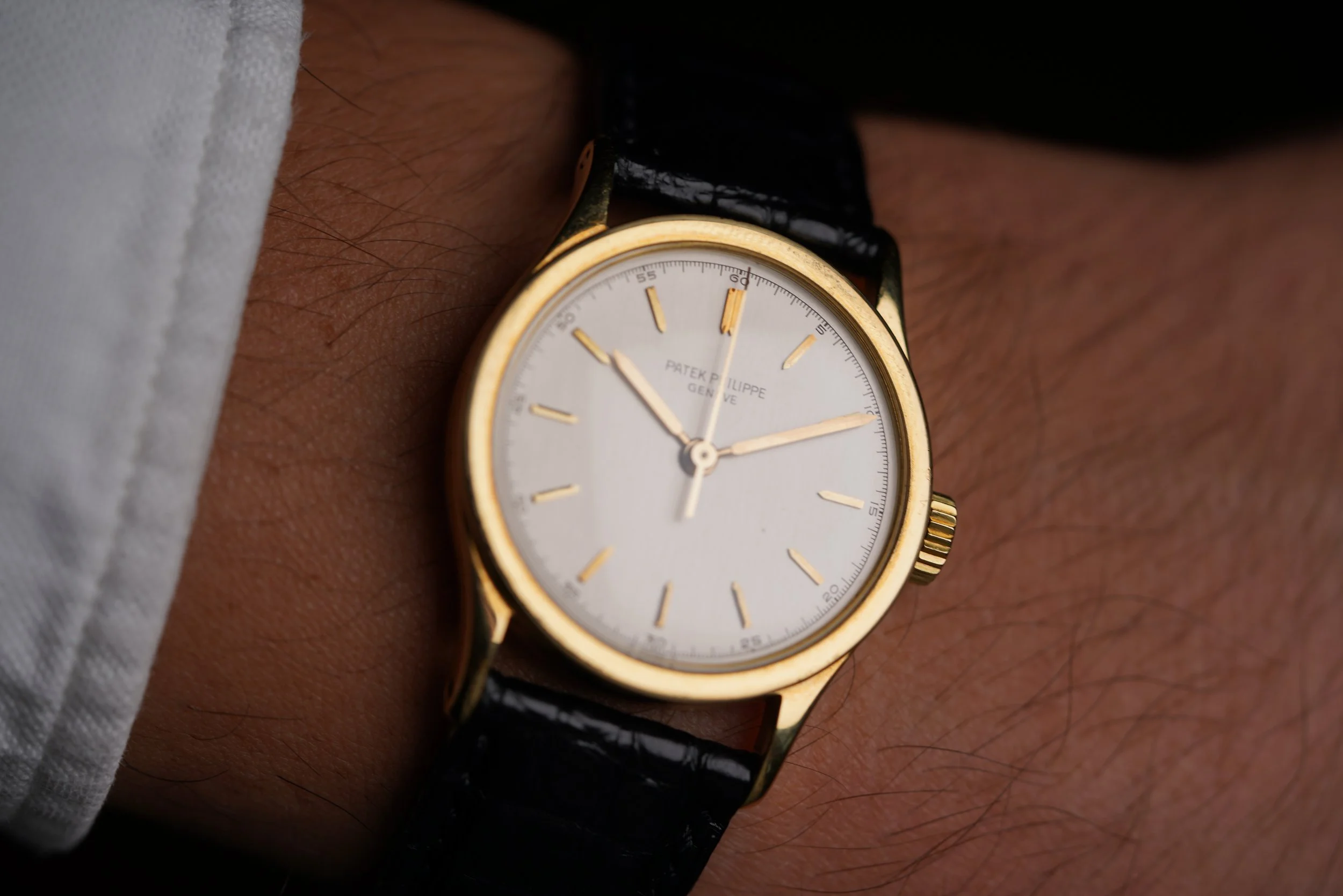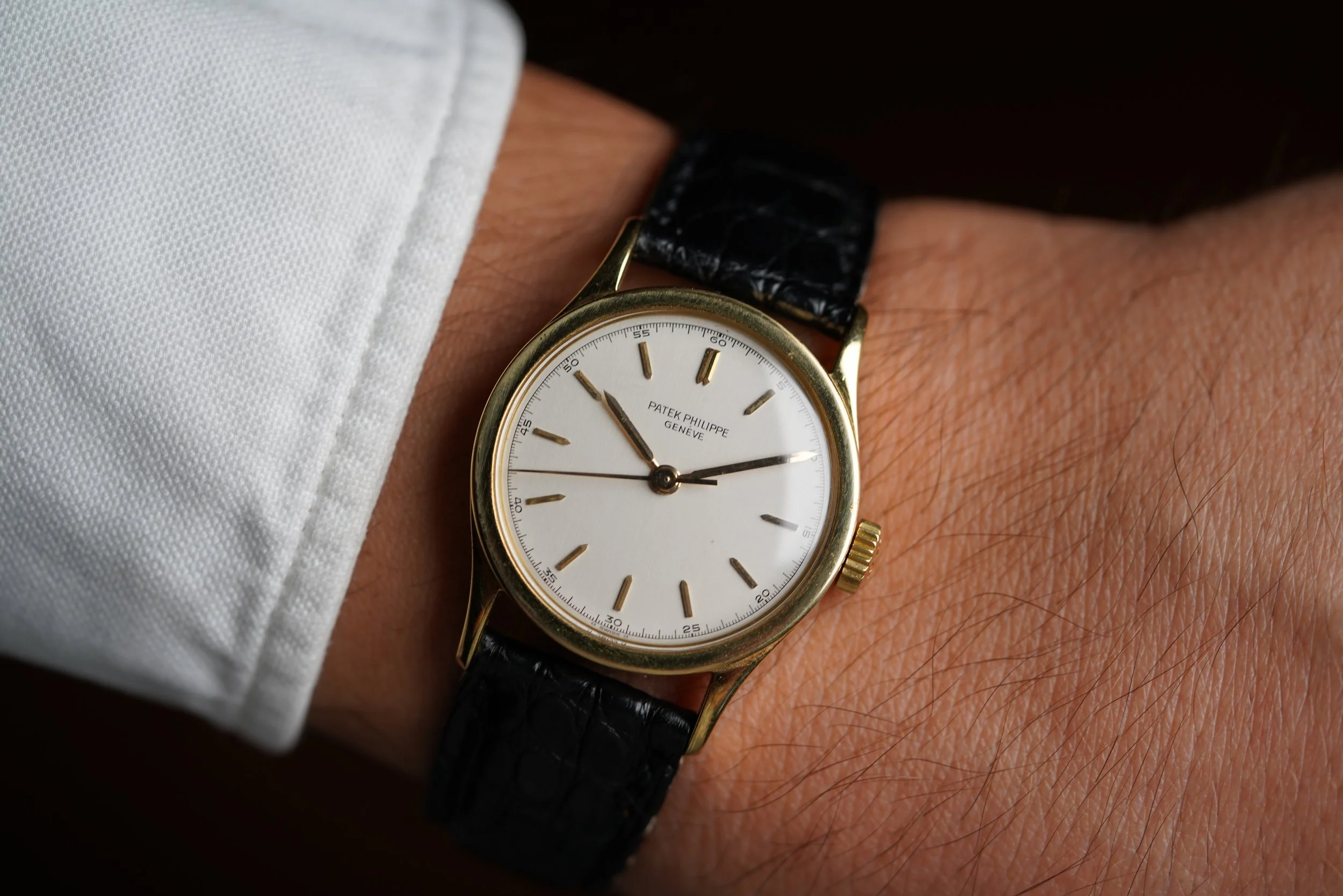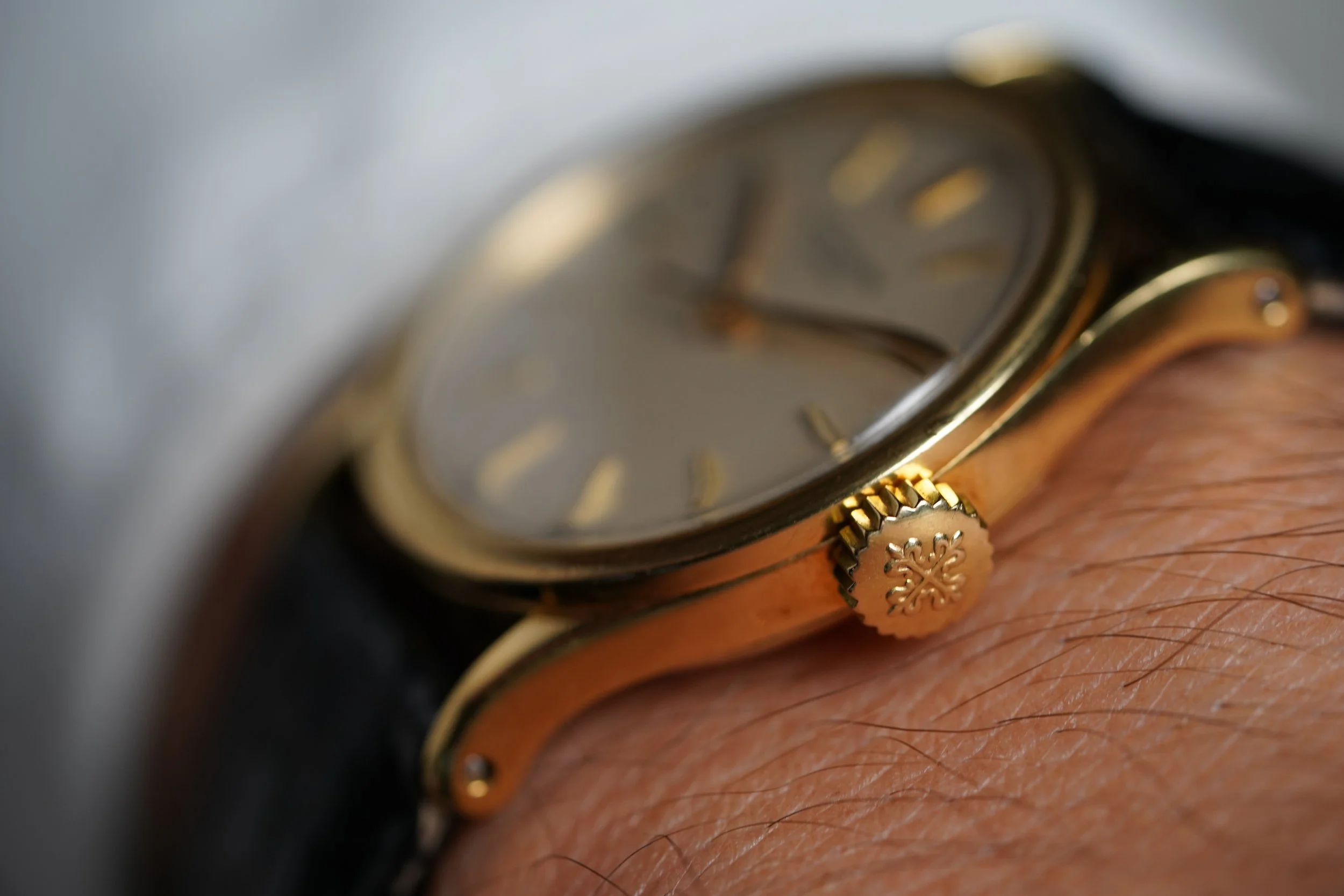 This is a very attractive Patek Philippe reference 2457, which is a successor to the reference 96. It is an 18k yellow gold case. It measures 31mm in diameter and 39mm lug to lug. It is powered by the calibre 27 SC. It has been polished. It features a service replacement dial.