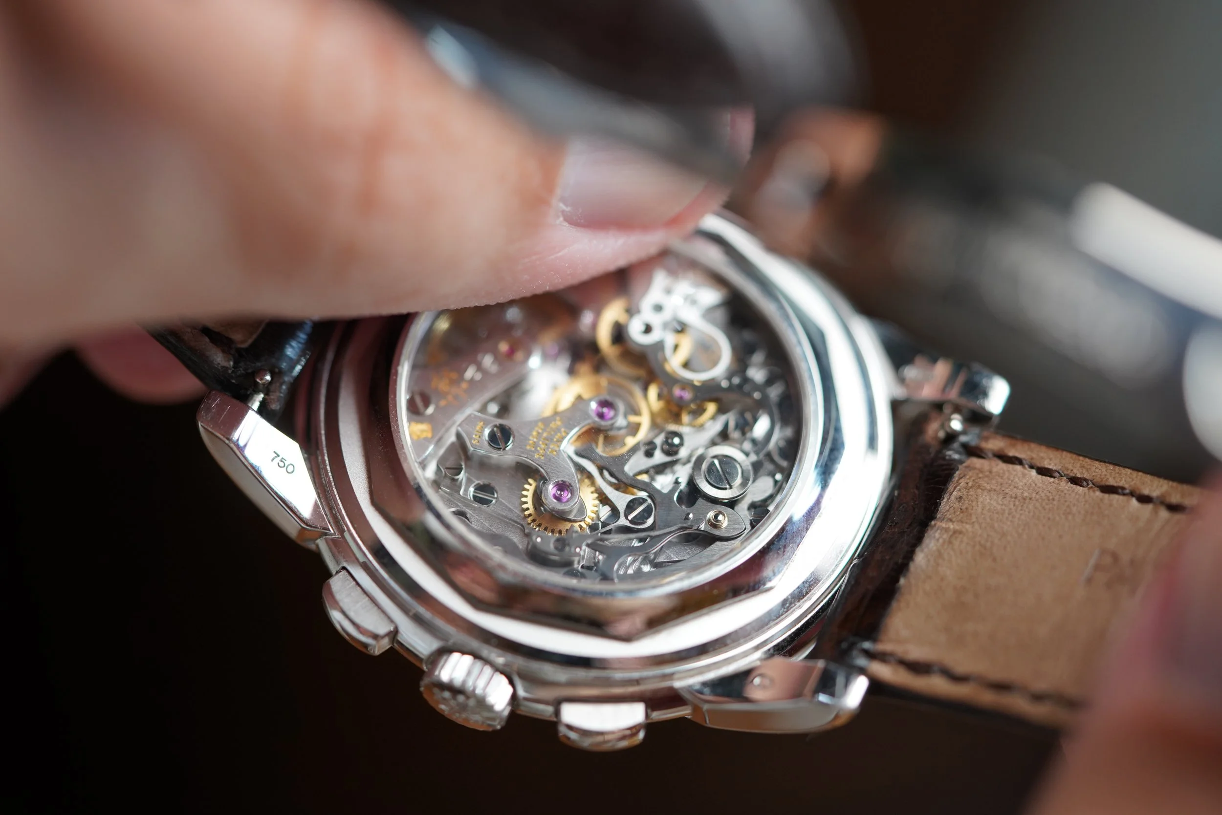 The reference 5970R is powered by the calibre CH 27-70 Q which is a highly praised movement in Patek Philippe circles originating through the Lemania calibre 2310.