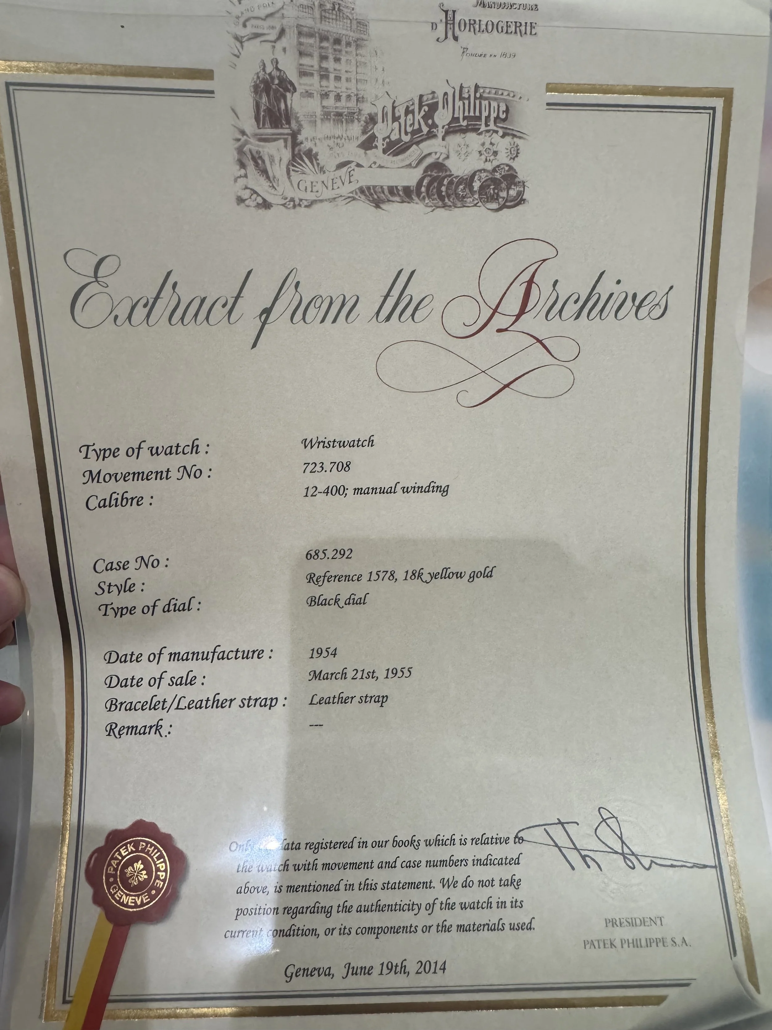 Patek Philippe Reference 1578GM w/ Extract from the Archives Unpolished & Ephemera
