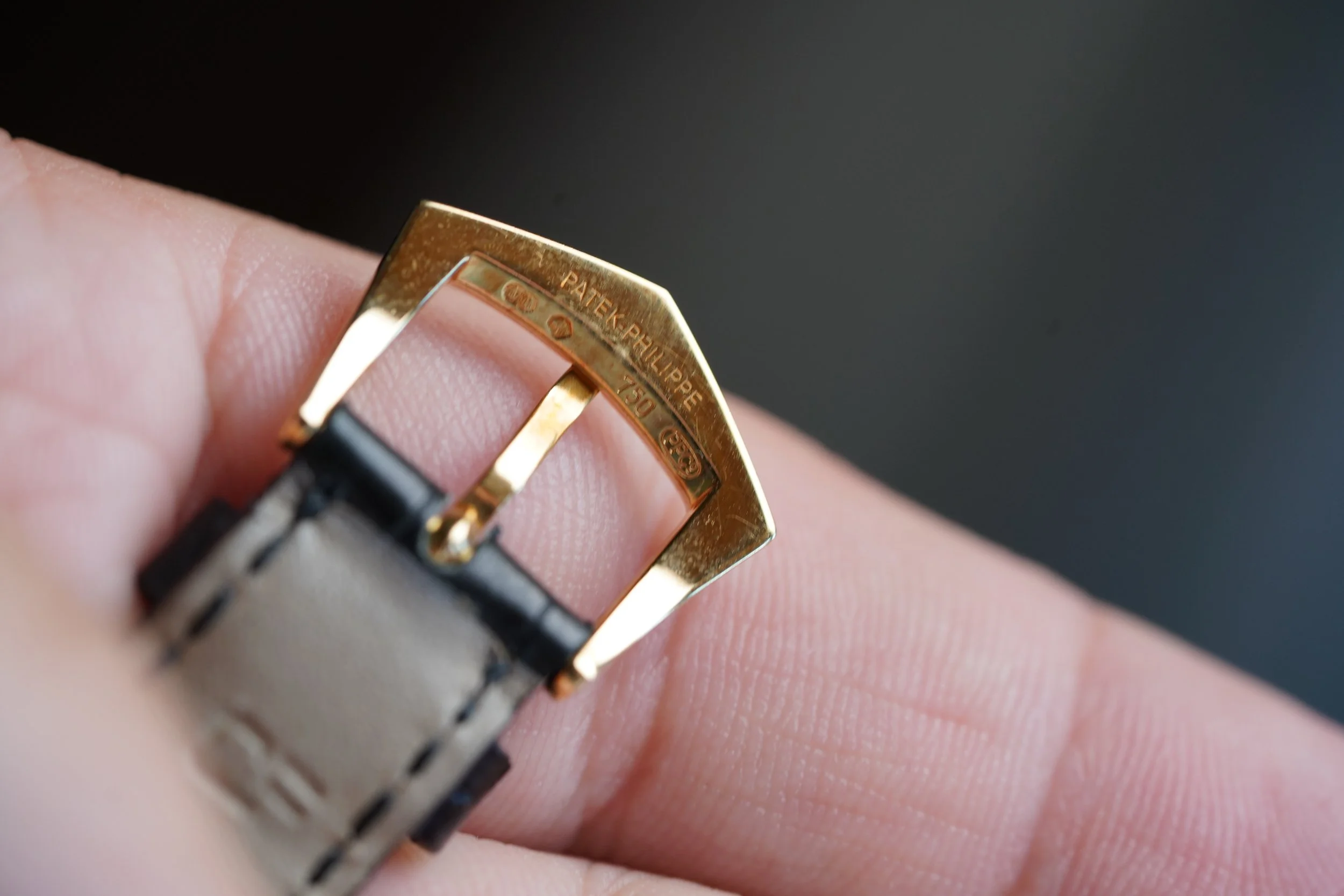 It does not come with box but does include an Extract from the Archives! We do not know the service history, but it is running well. It is on a matching Patek Philippe strap and buckle.