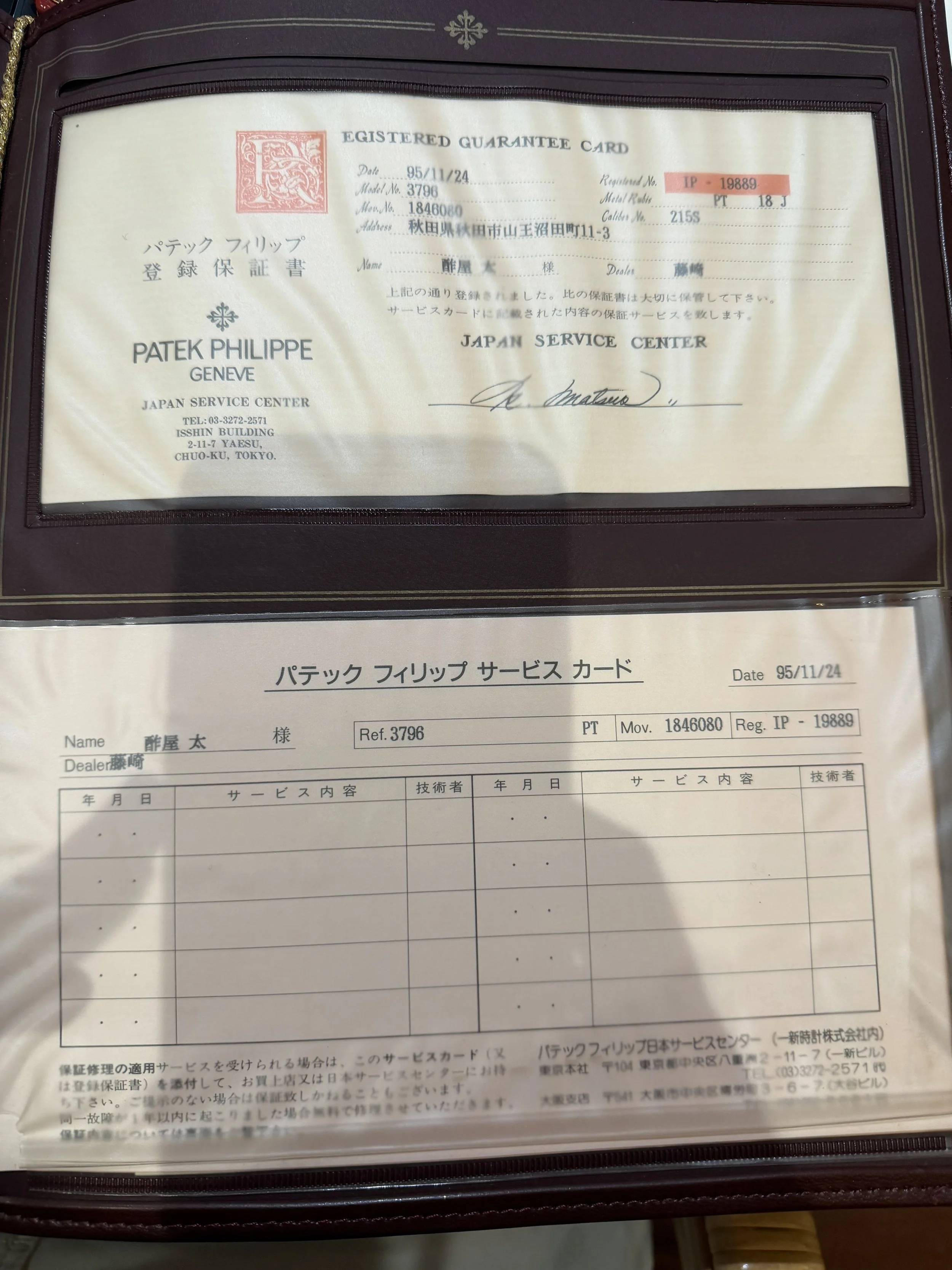 The watch comes with the Certificate of Origin and box. We do not know the service history, but it is running well. The watch comes with service papers from 1995.