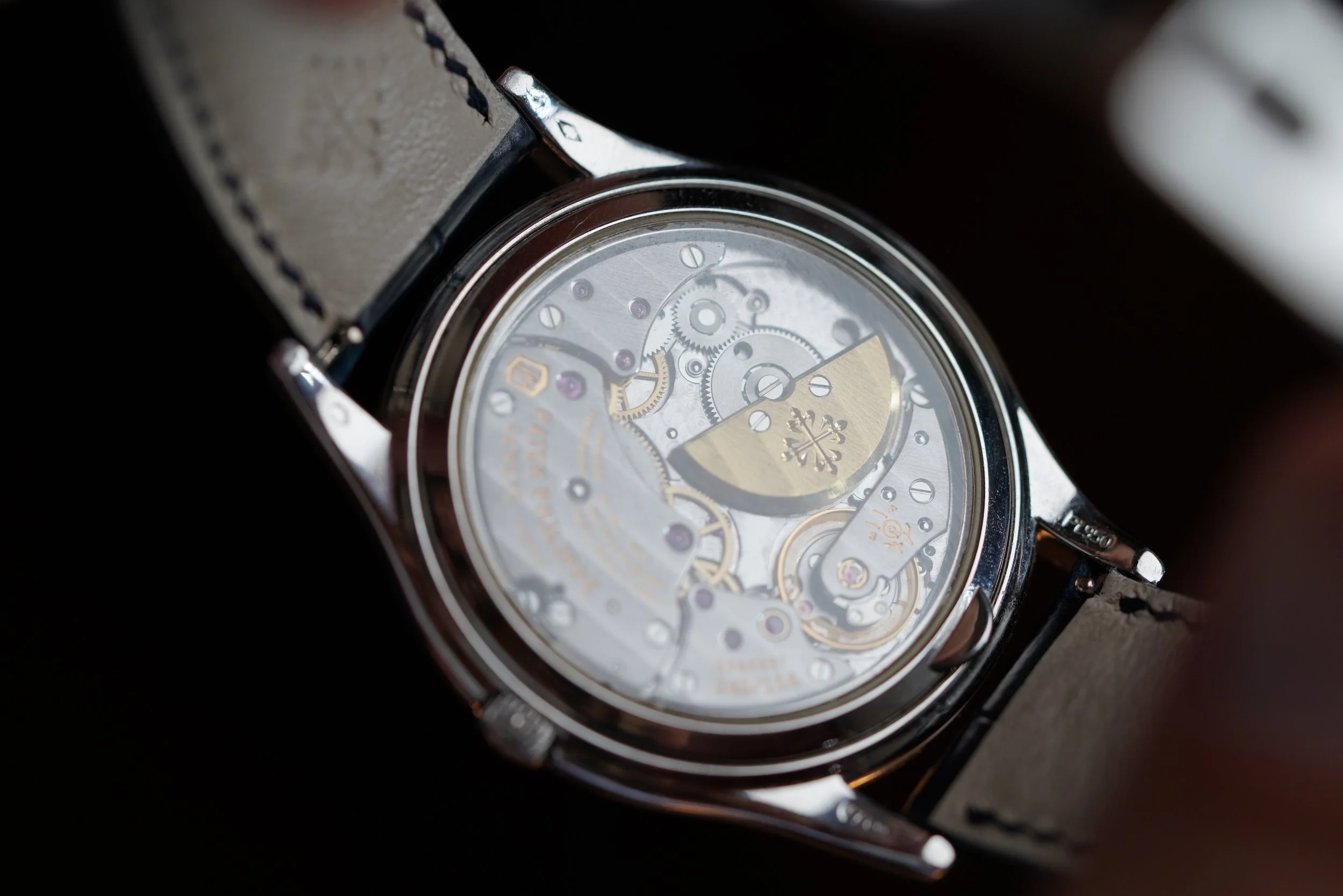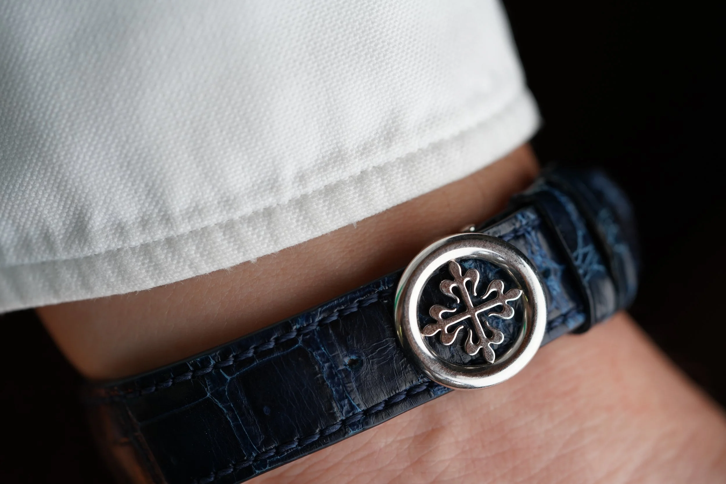 The watch comes with a travel pouch from Patek Philippe. It is paired on a Patek Philippe strap with platinum deployant. We do not know the service history, but it is running well.