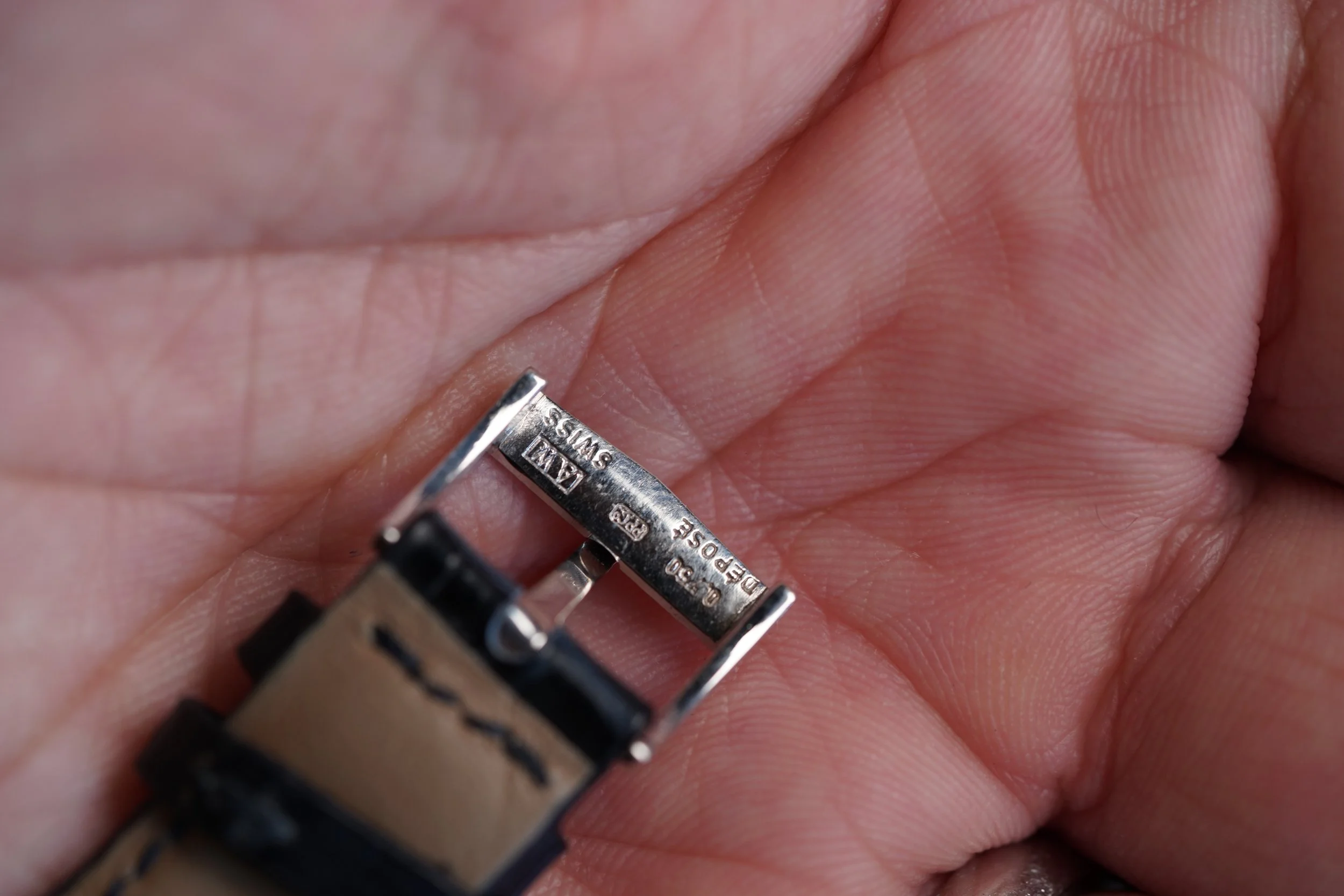 This watch does not include the original box and papers. It is powered by the Caliber 27 SC manual-wind movement made by Patek Philippe. It is paired on what appears to be the original Patek Philippe buckle.