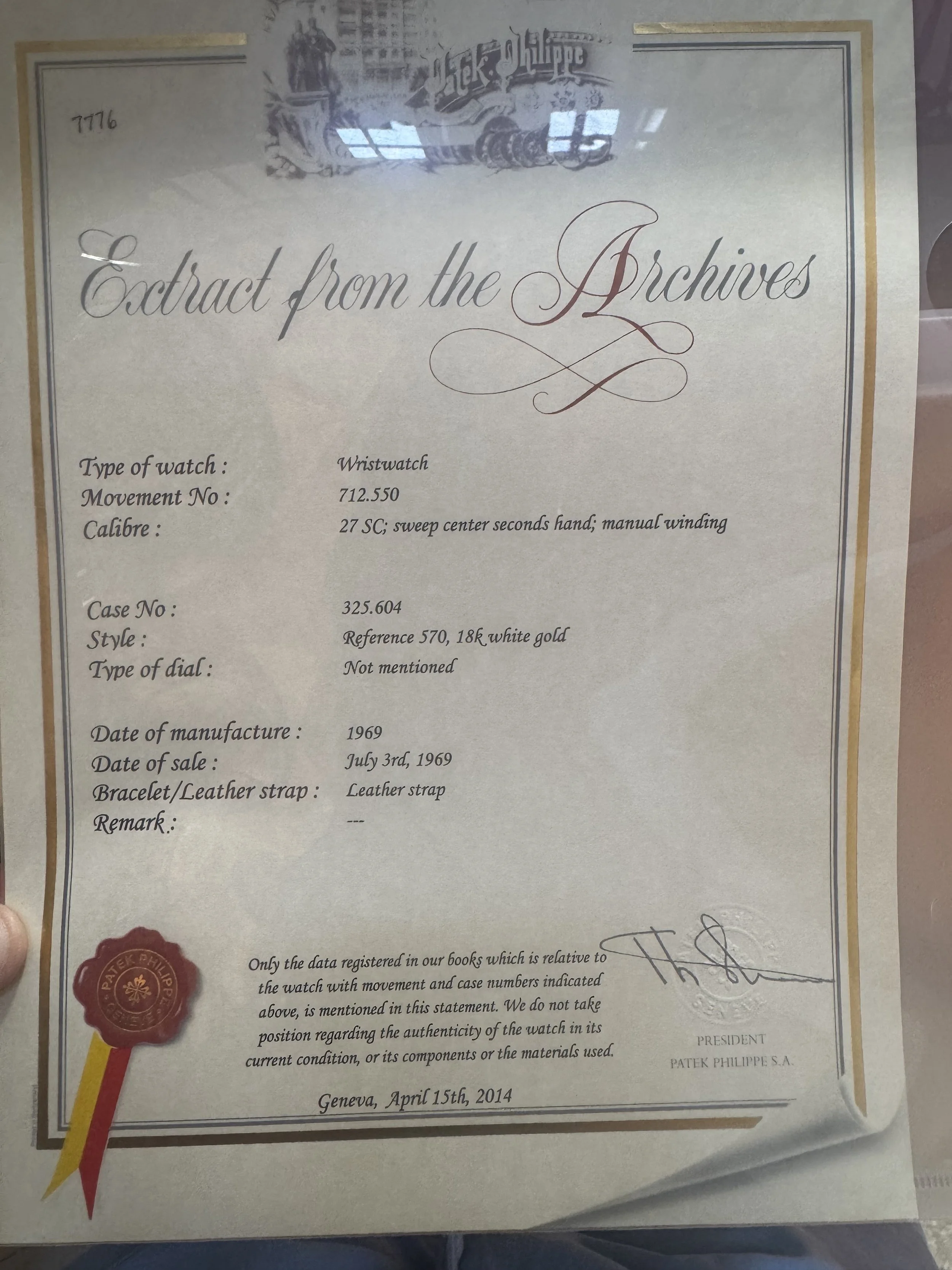 Patek Philippe Reference 570G in WG Unpolished w/ Extract from the Archives