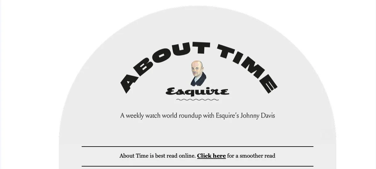 Esquire's Johnny Davis recently highlighted Charlie Dunne’s article on the Rolex GMT-Master reference 1675 within his ‘About Time’ weekly newsletter dedicated to watches.