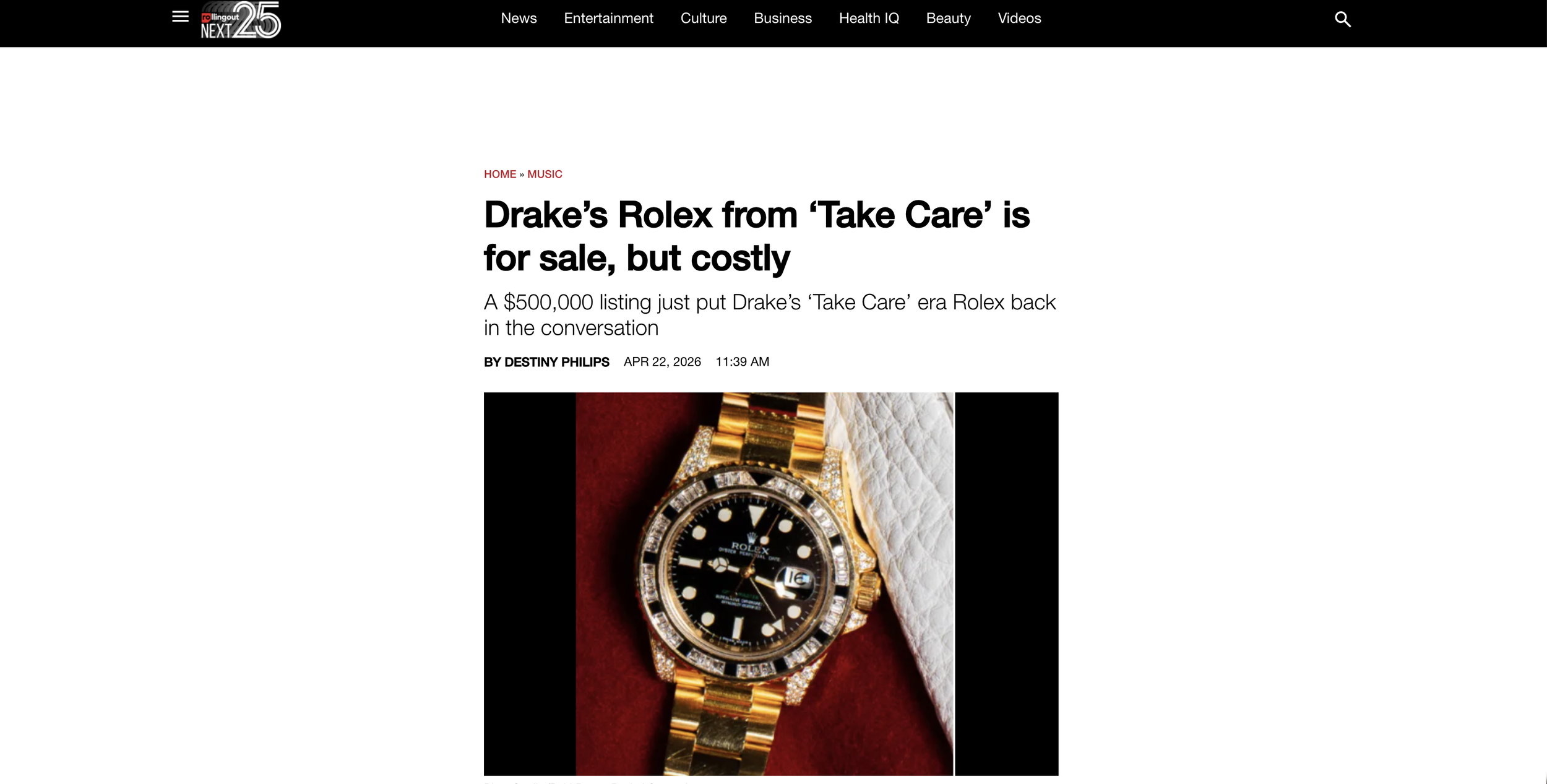 Destiny Philiips recently wrote for Rollingout ‘Drake’s Rolex from ‘Take Care’ is for sale, but costly’.