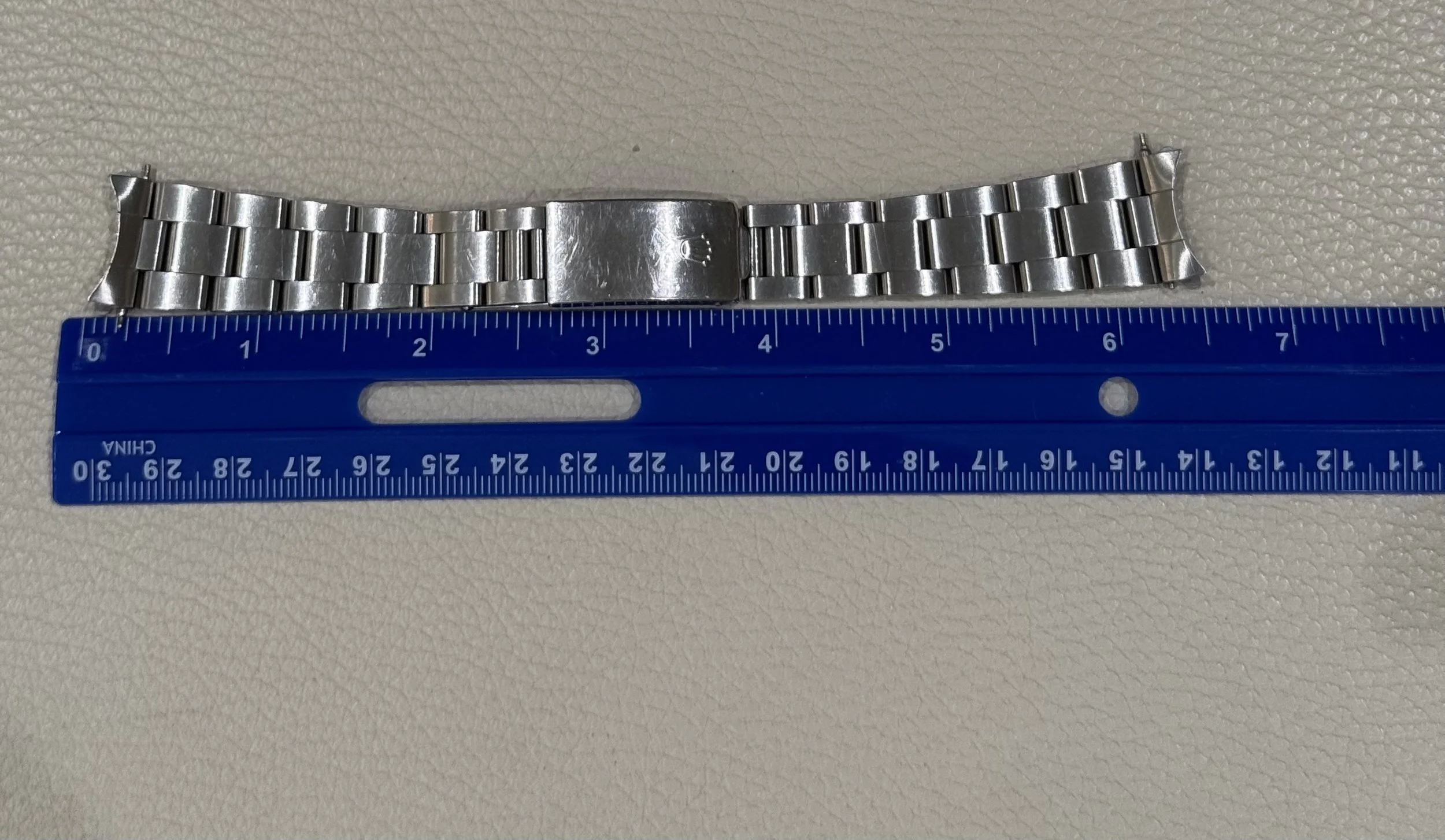 This bracelet is nice example made by Rolex. It is a solid link 78350 Swiss bracelet and measures approximately 6 inches in length. It dates to circa 1982 and has 20mm 557 end links.