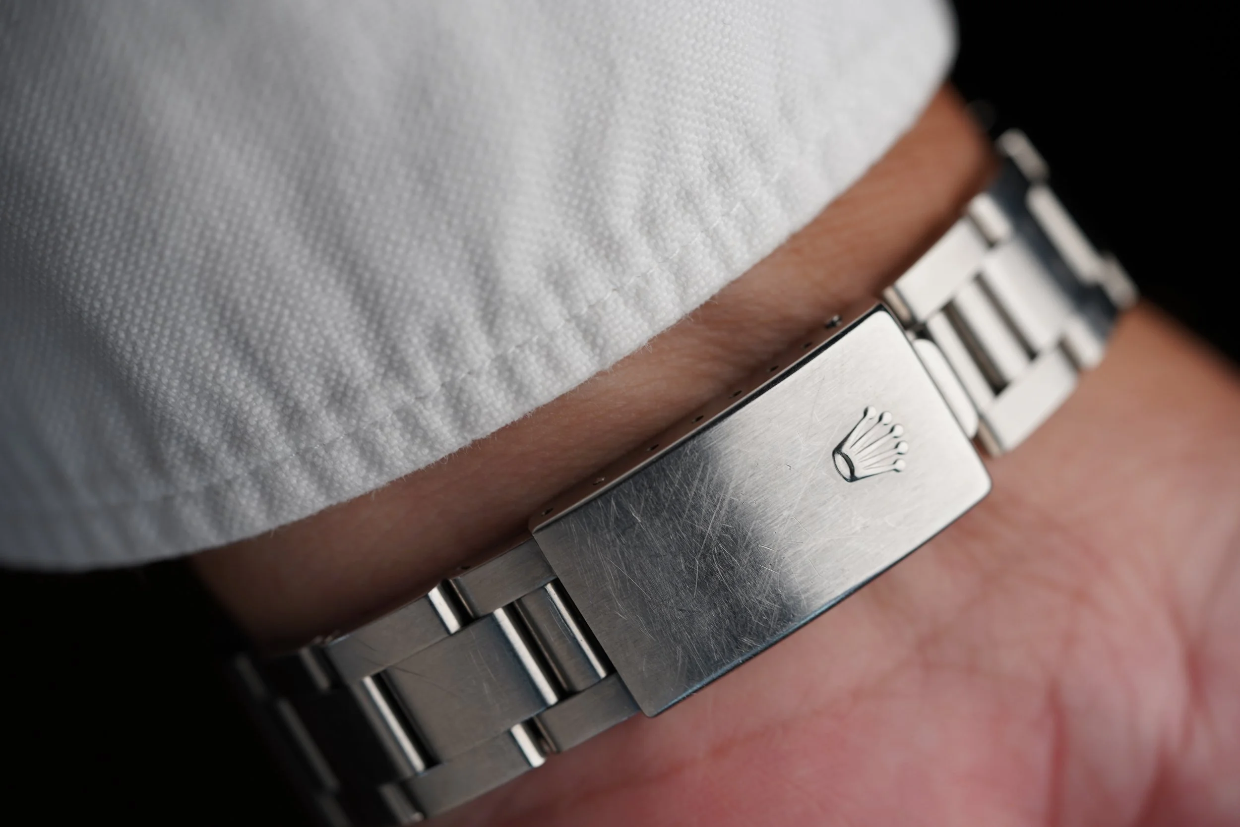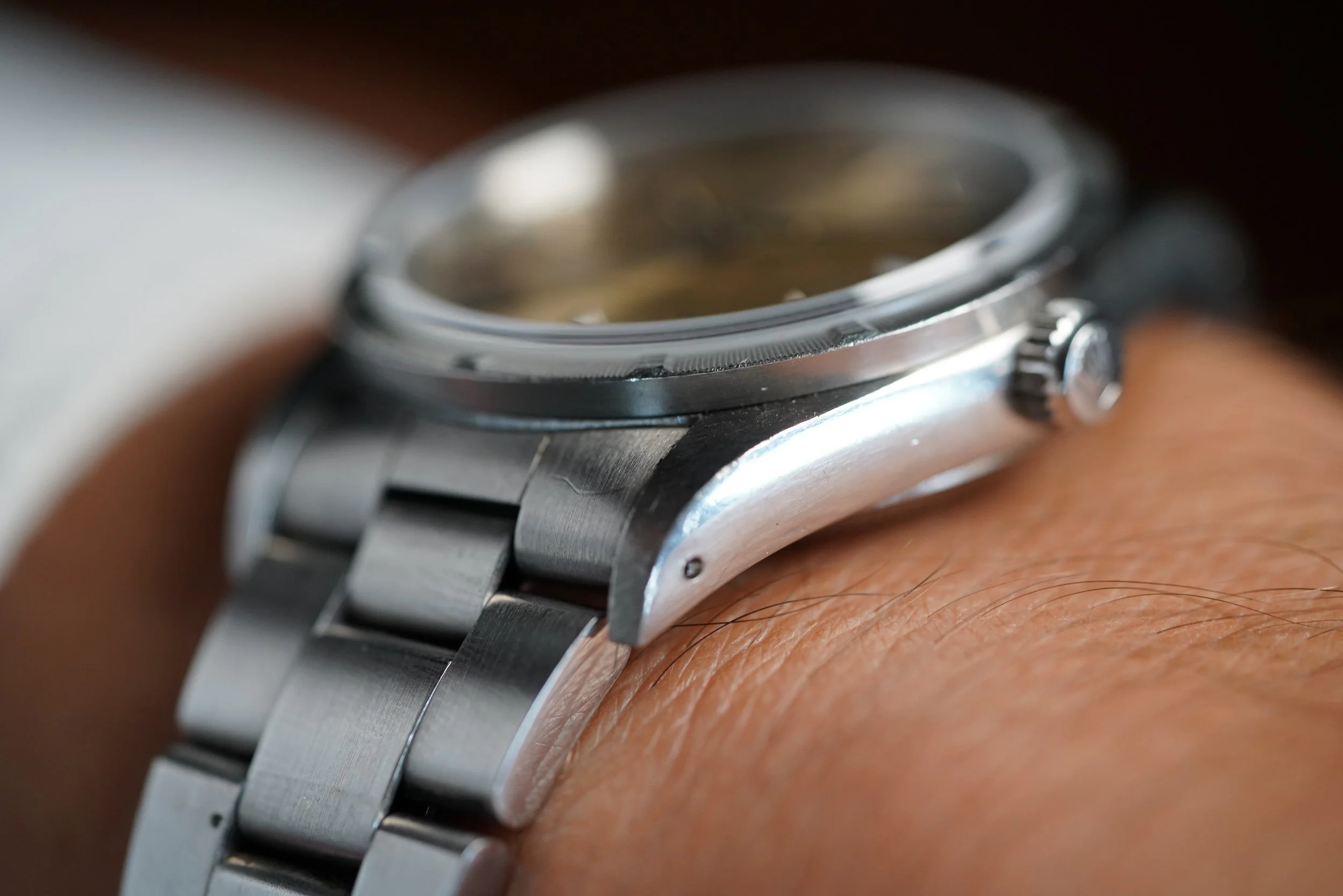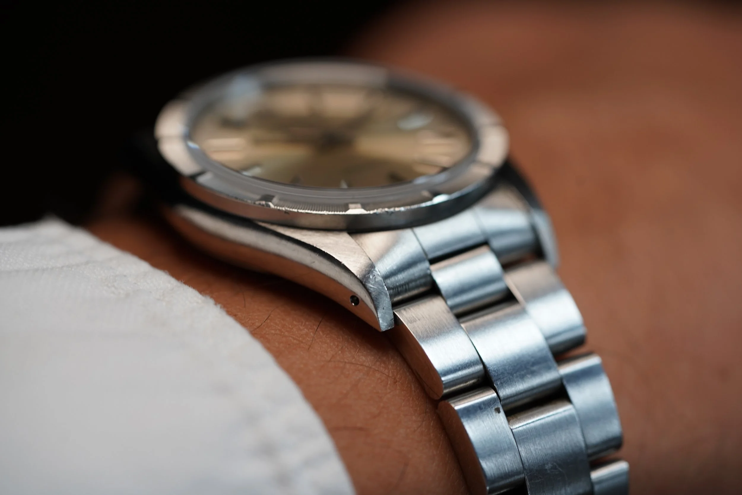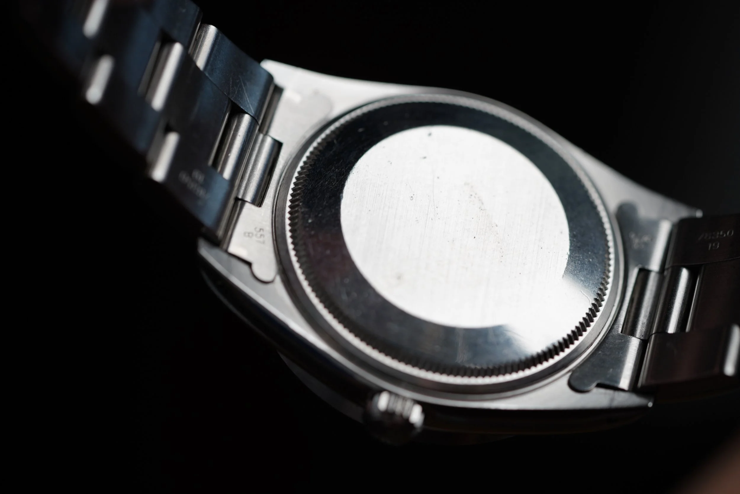 This Rolex Air-King reference 14010 is a very attractive timepiece. The watch is slightly over 34mm in diameter (with a lug-to-lug length of 43mm). The lug width is 19mm and the height is slightly lower at around 11.5mm including the crystal. The case appears to be unpolished.
