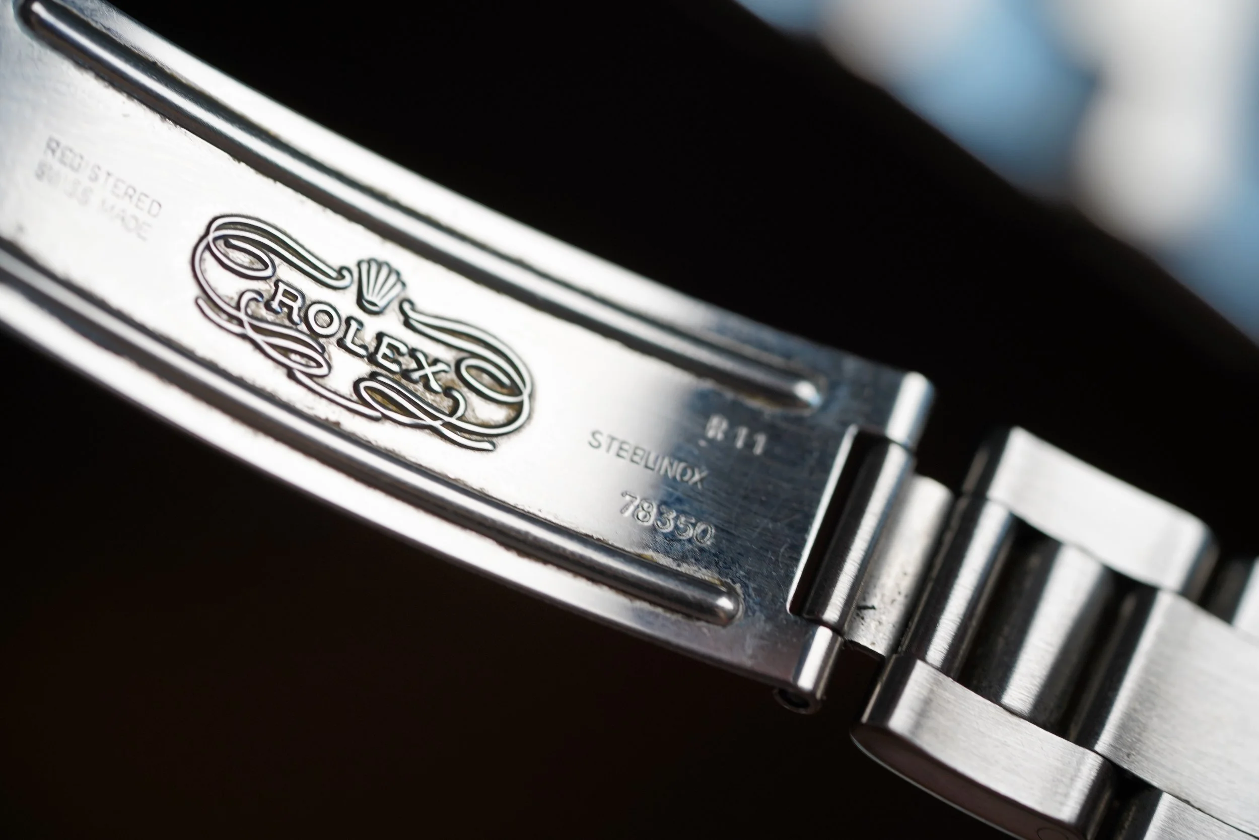 The watch features an X serial and dates to circa 1991. The bracelet has an R11 code dating to circa 1993.