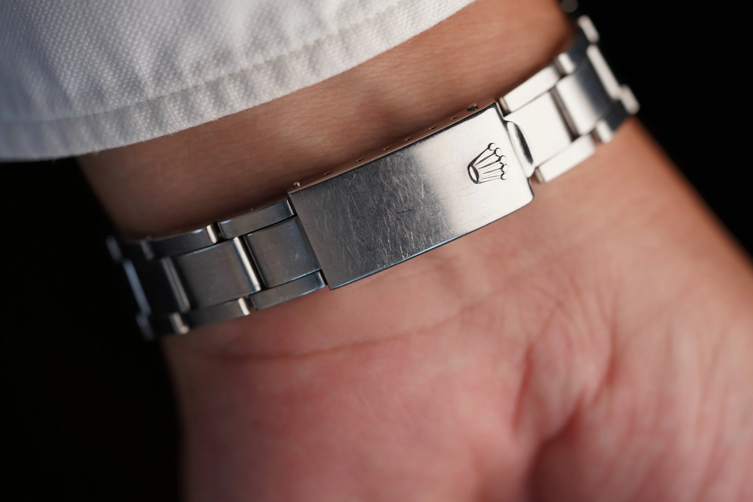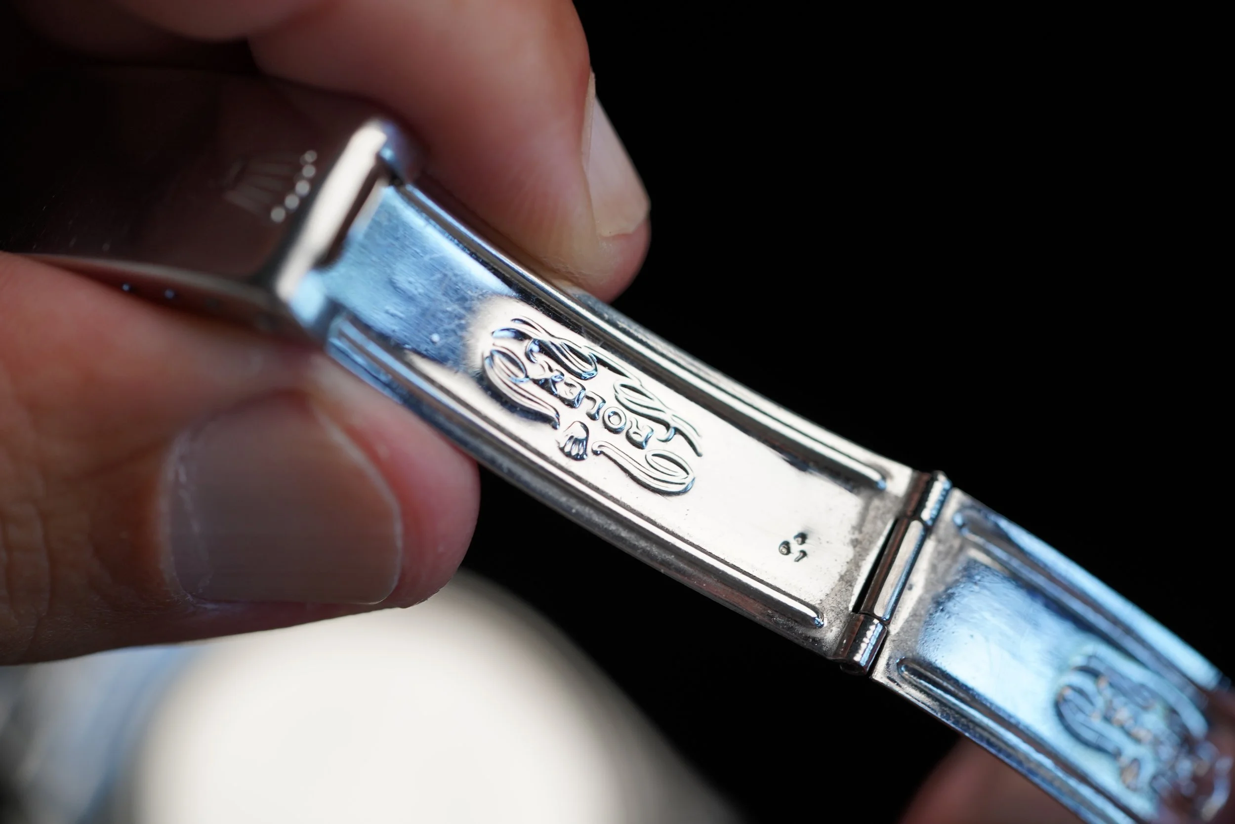 The case features a 1.62 million serial number dating it to circa 1967. The case appears to be unpolished. This example was previously owned by a fighter pilot. He had great vision and purchased an amazing Rolex. It is paired on an extremely rare and original bracelet with 71N end links dating to 1967. Most dealers would sell this on a solid link bracelet from the 1980s (YUCK!).