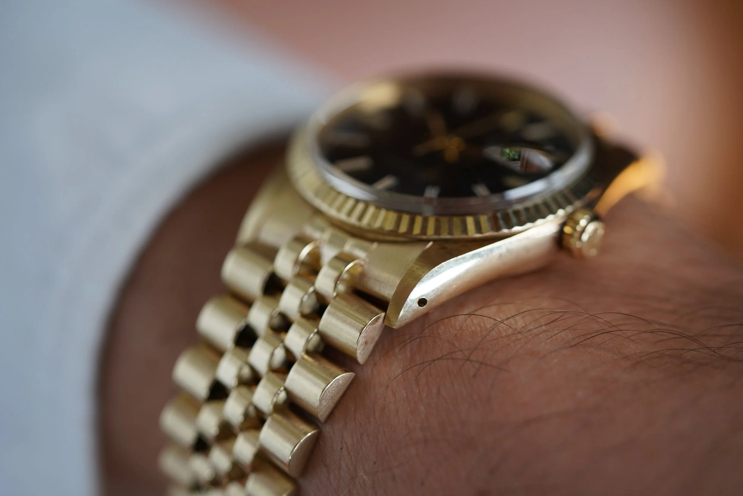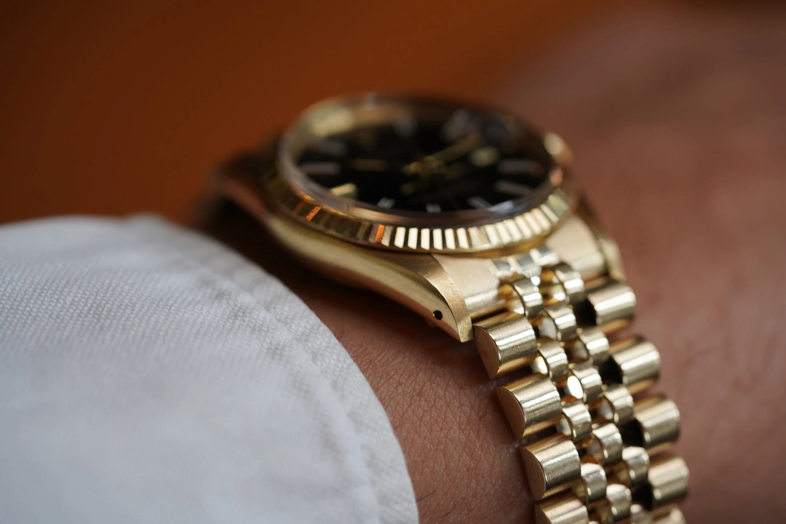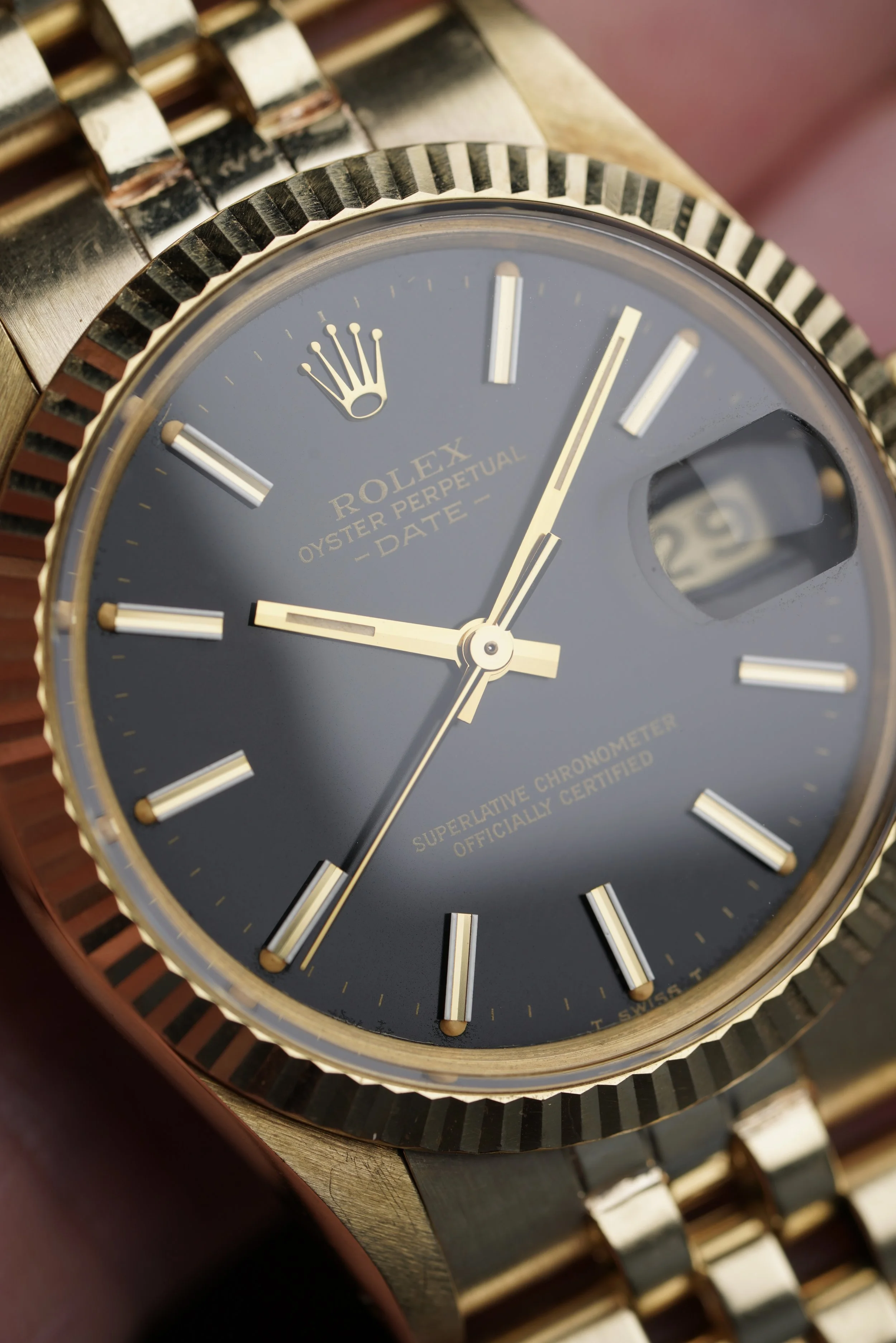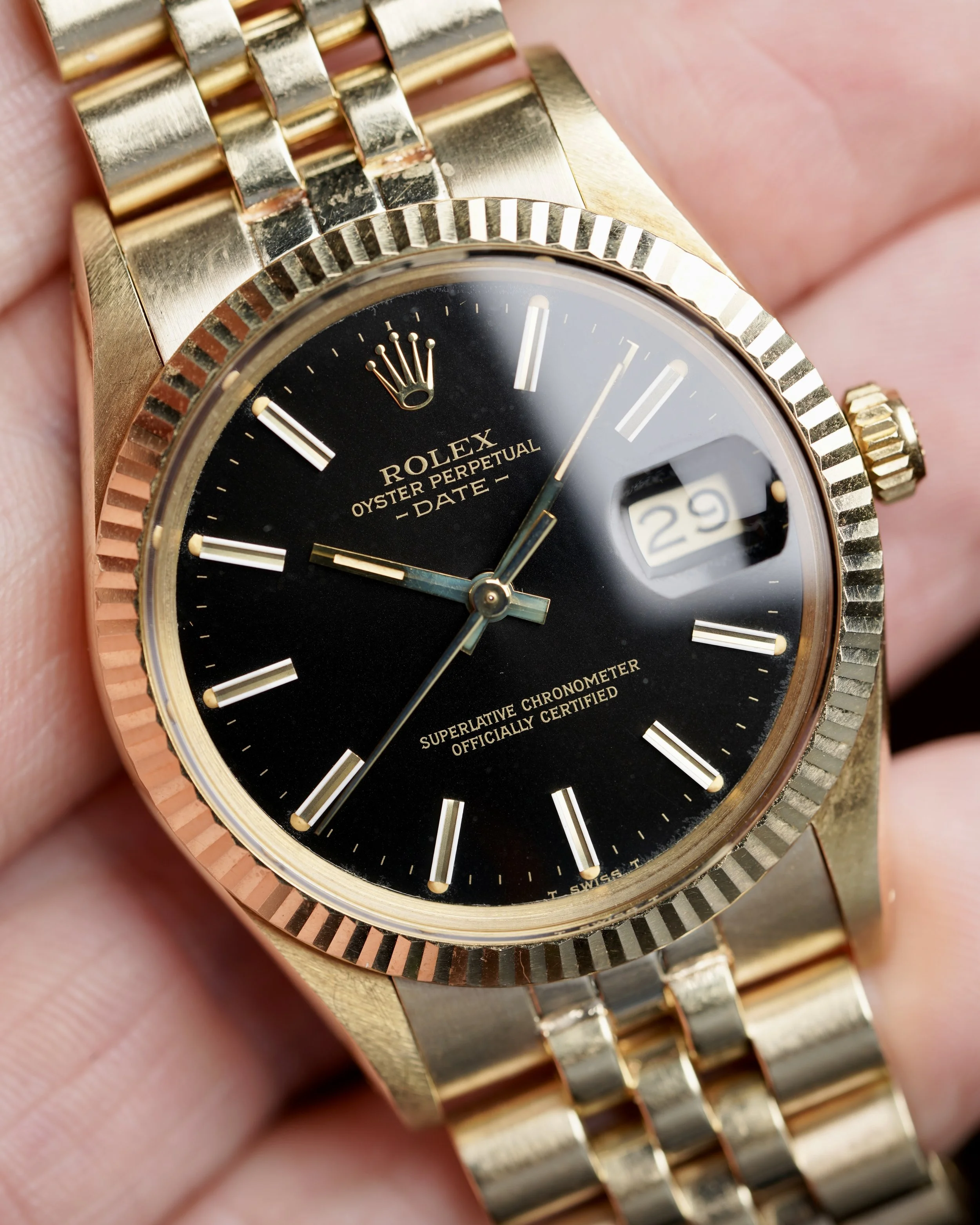 Rolex Black Dial Date Reference 15037 in 14K Yellow Gold Unpolished