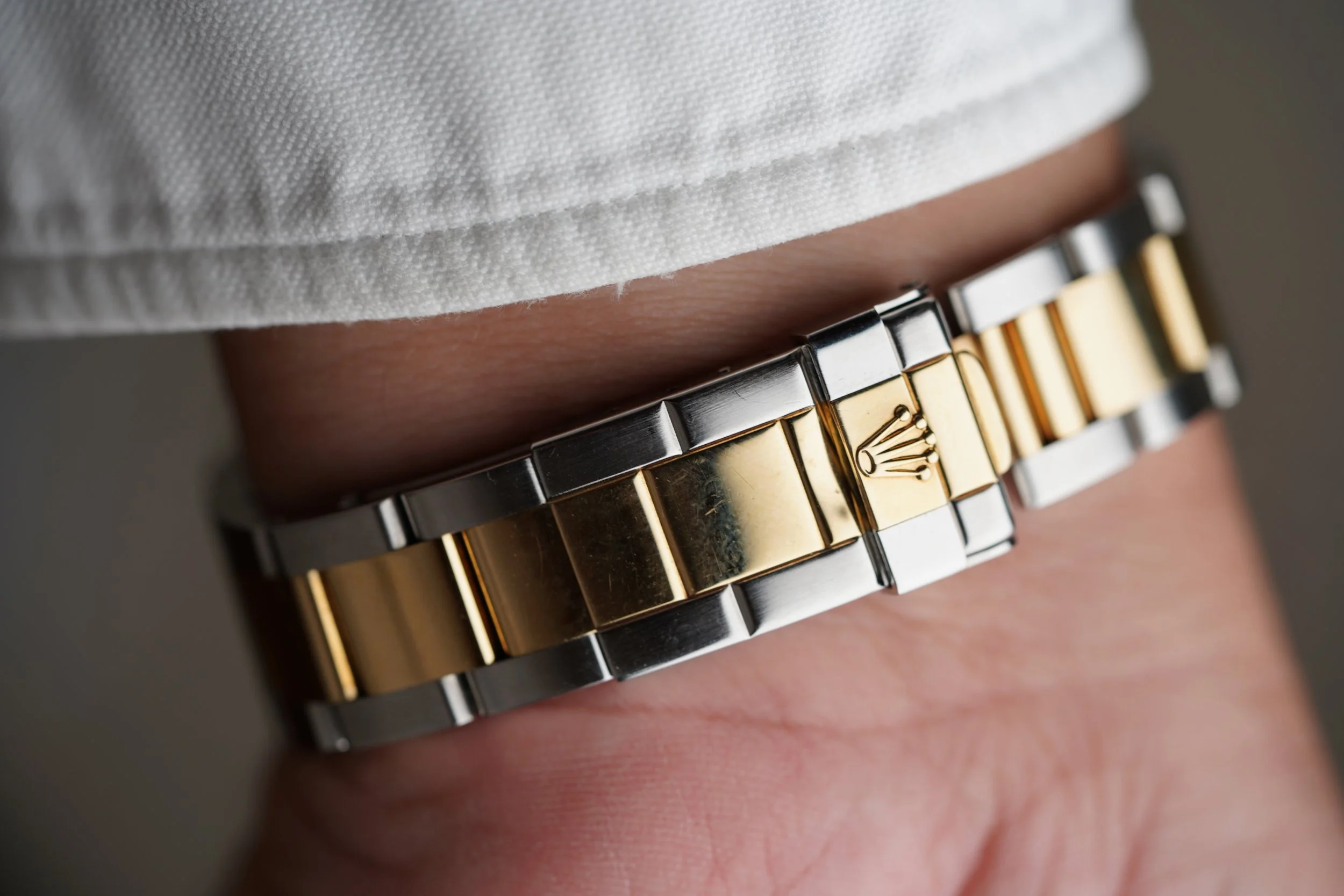 The two-tone oyster bracelet reference 78393 has a V9 serial and dates to circa 1996 and is likely original to the watch.