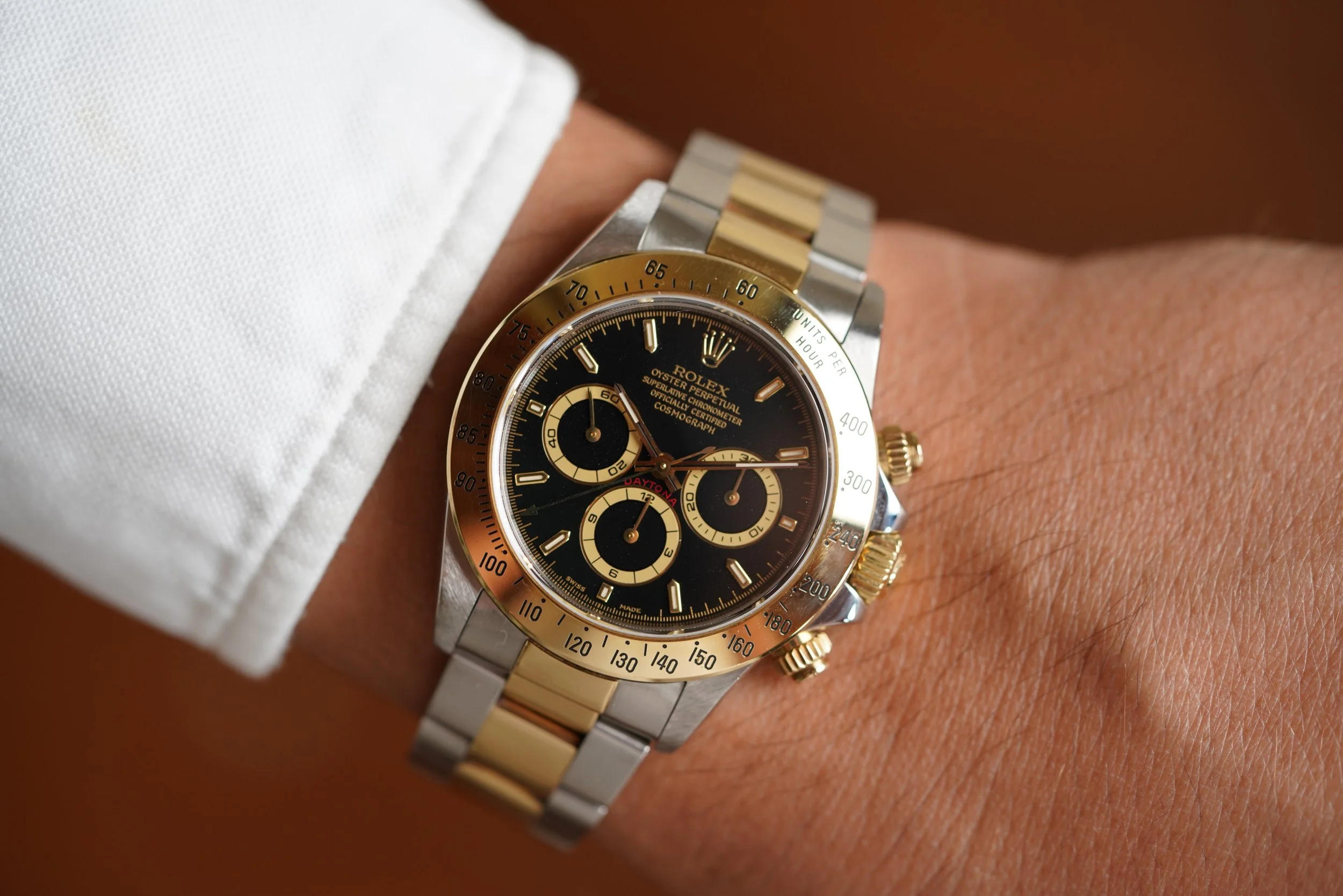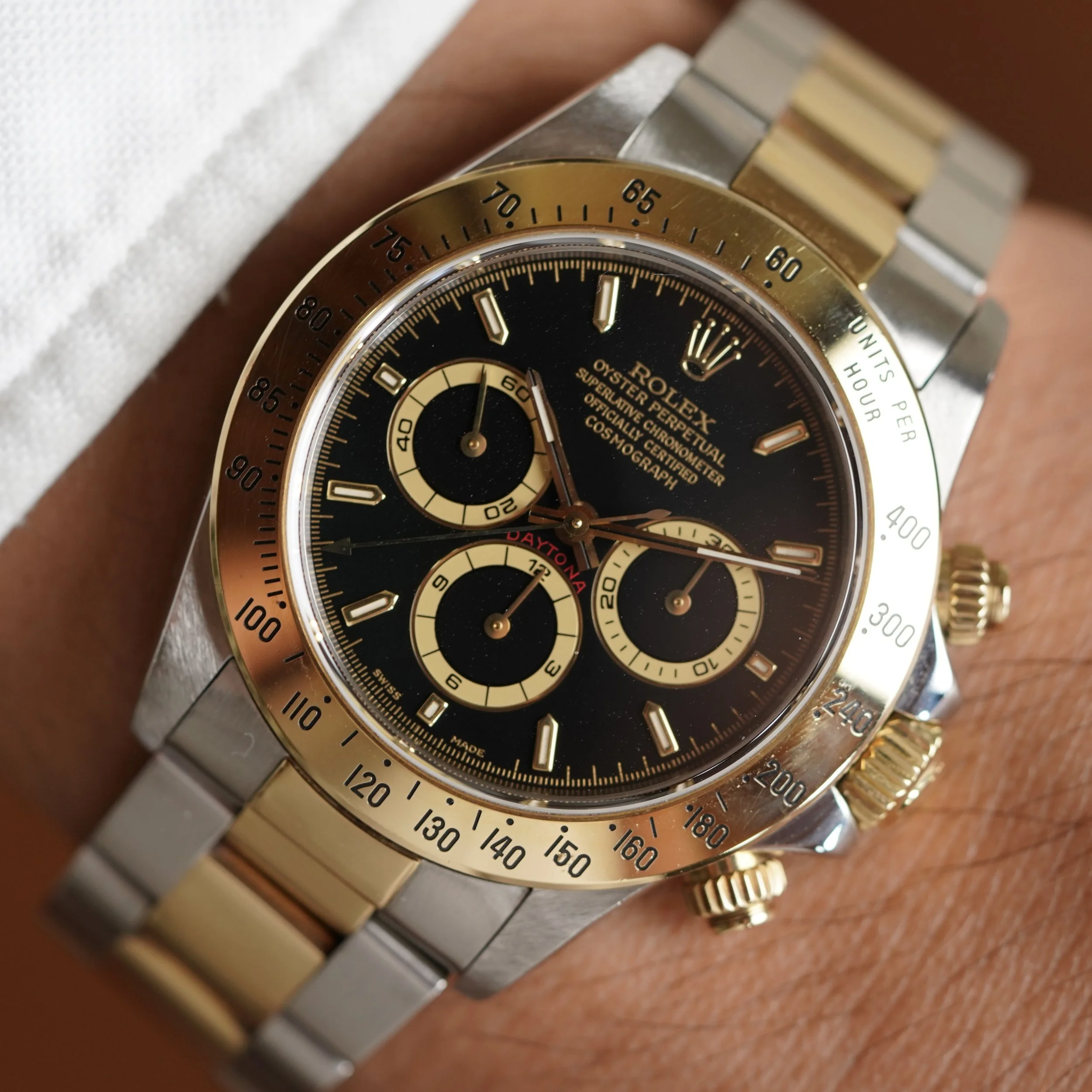 Rolex Black Dial Two-Tone Zenith Daytona Reference 16523 with Papers Unpolished P Serial