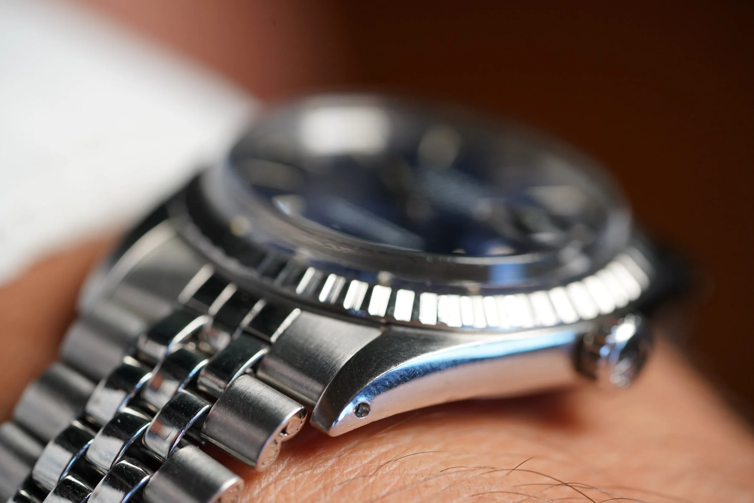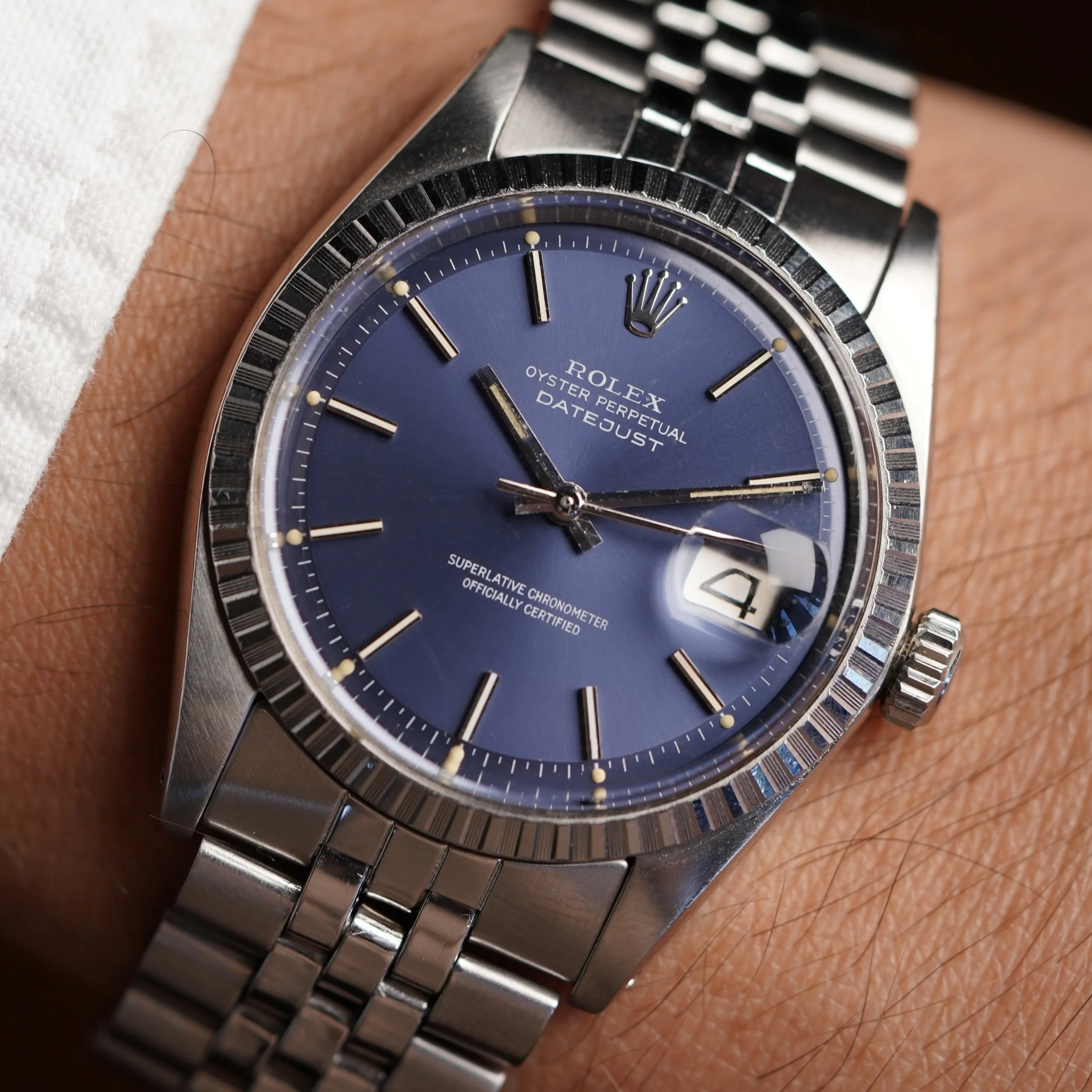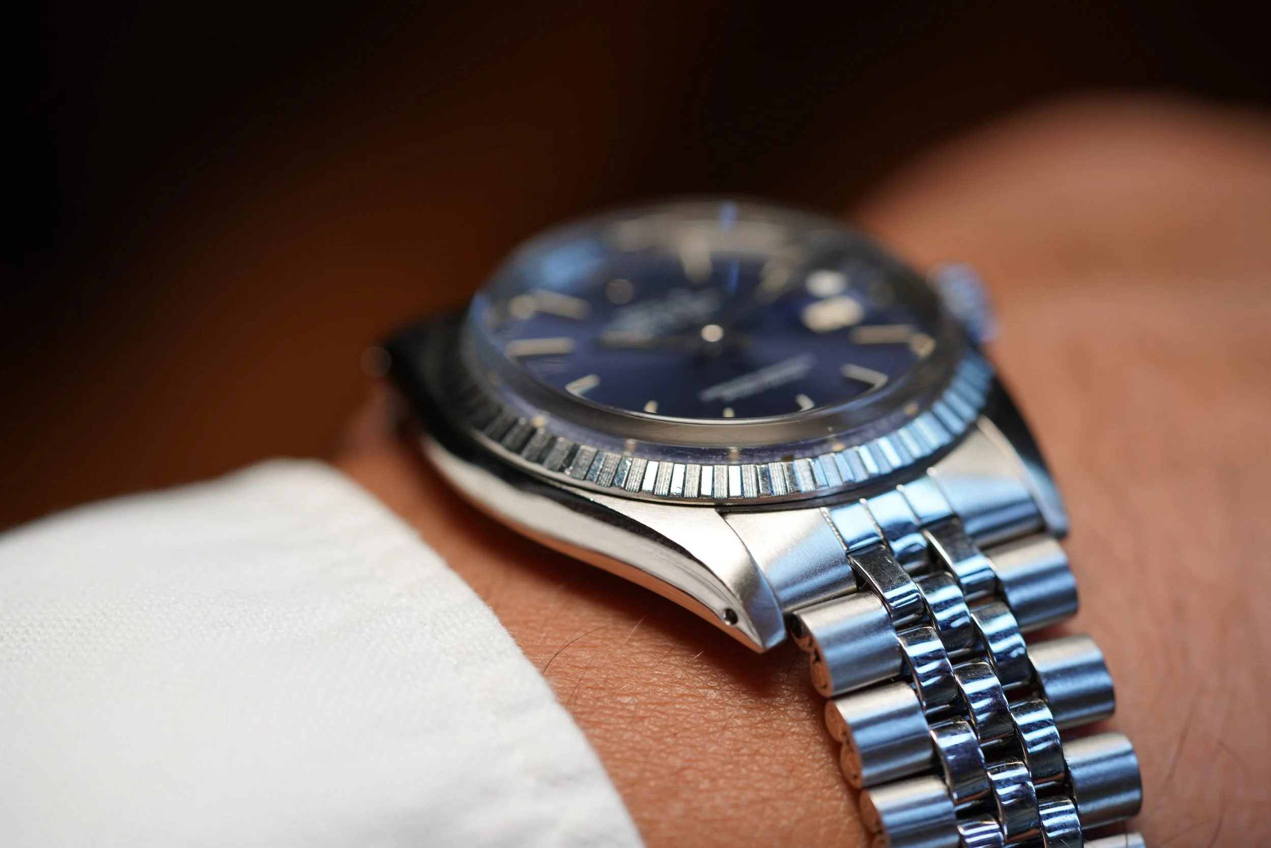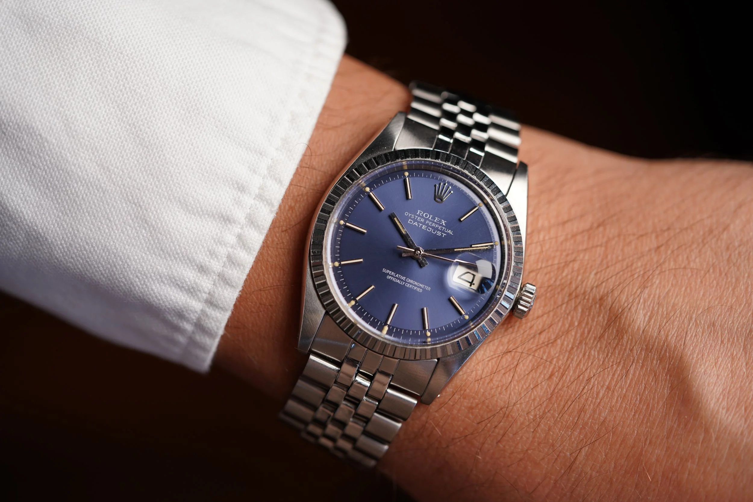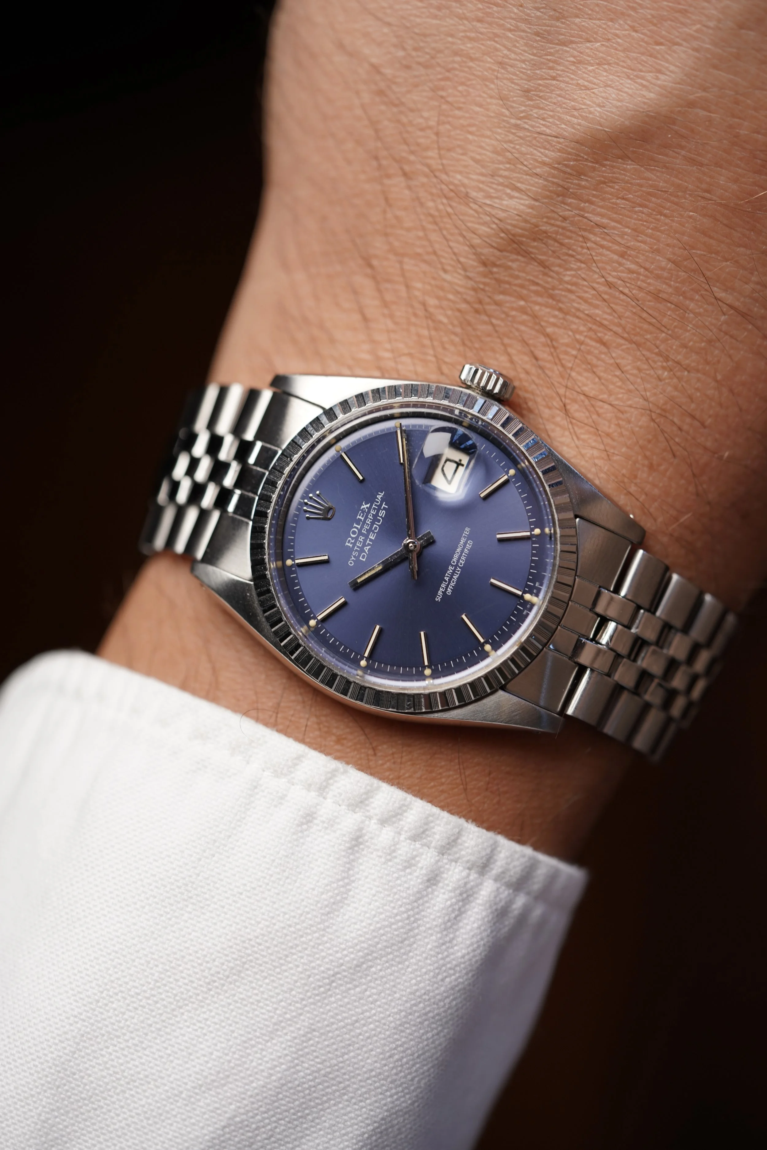 I absolutely love steel Rolex Datejusts. I recently wrote about them in our blog ‘Don't Sleep On This: The Simple Vintage Rolex Datejust In Steel’. I’m constantly amazed by the quality and differentiations of the dials that Rolex used in vintage Datejusts over the decades. I have found the Rolex Datejust to be one of the most versatile watches a person can have and the simplicity in this blue-dial reference 1603 is so beautiful.