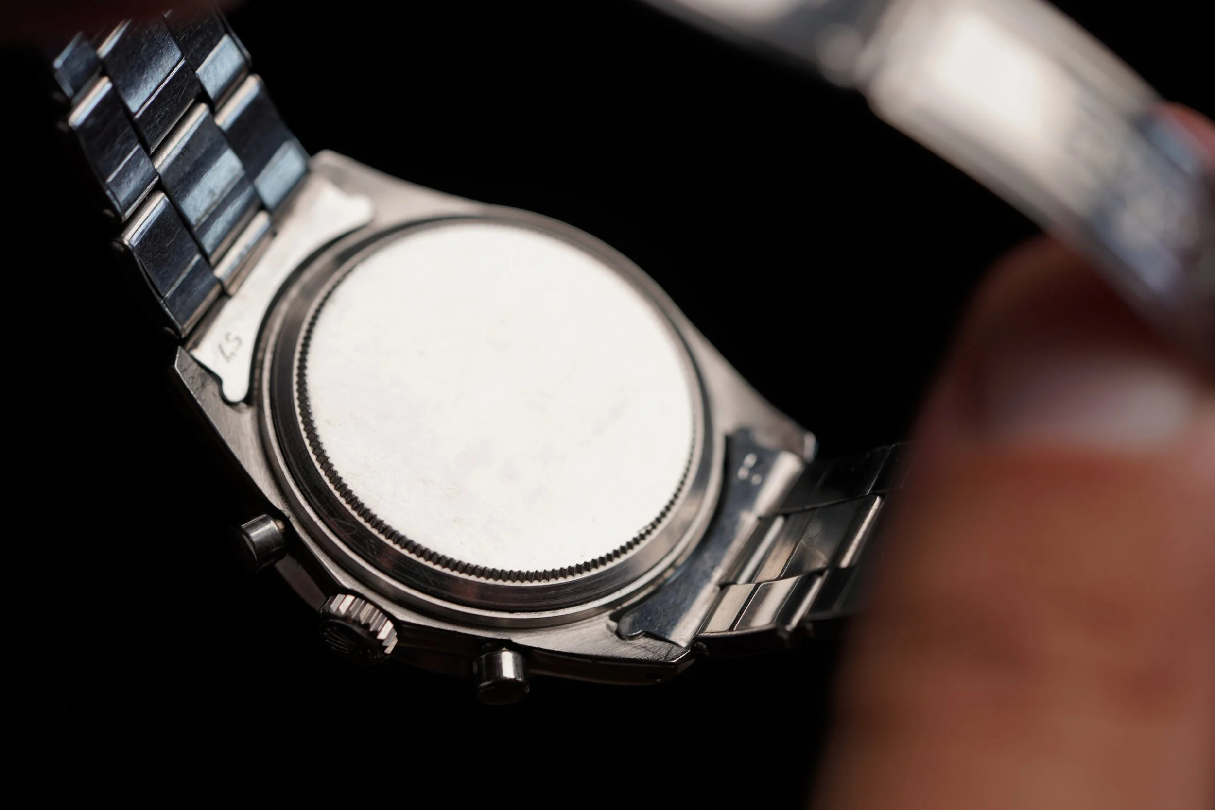 The case appears to be unpolished. The watch measures approximately 36mm in diameter (39mm including the crown). It features a 2.41M serial number dating to circa 1970. The watch was sold in circa 1971 at Molinelli’s (a retailer in Idaho) according to the papers.