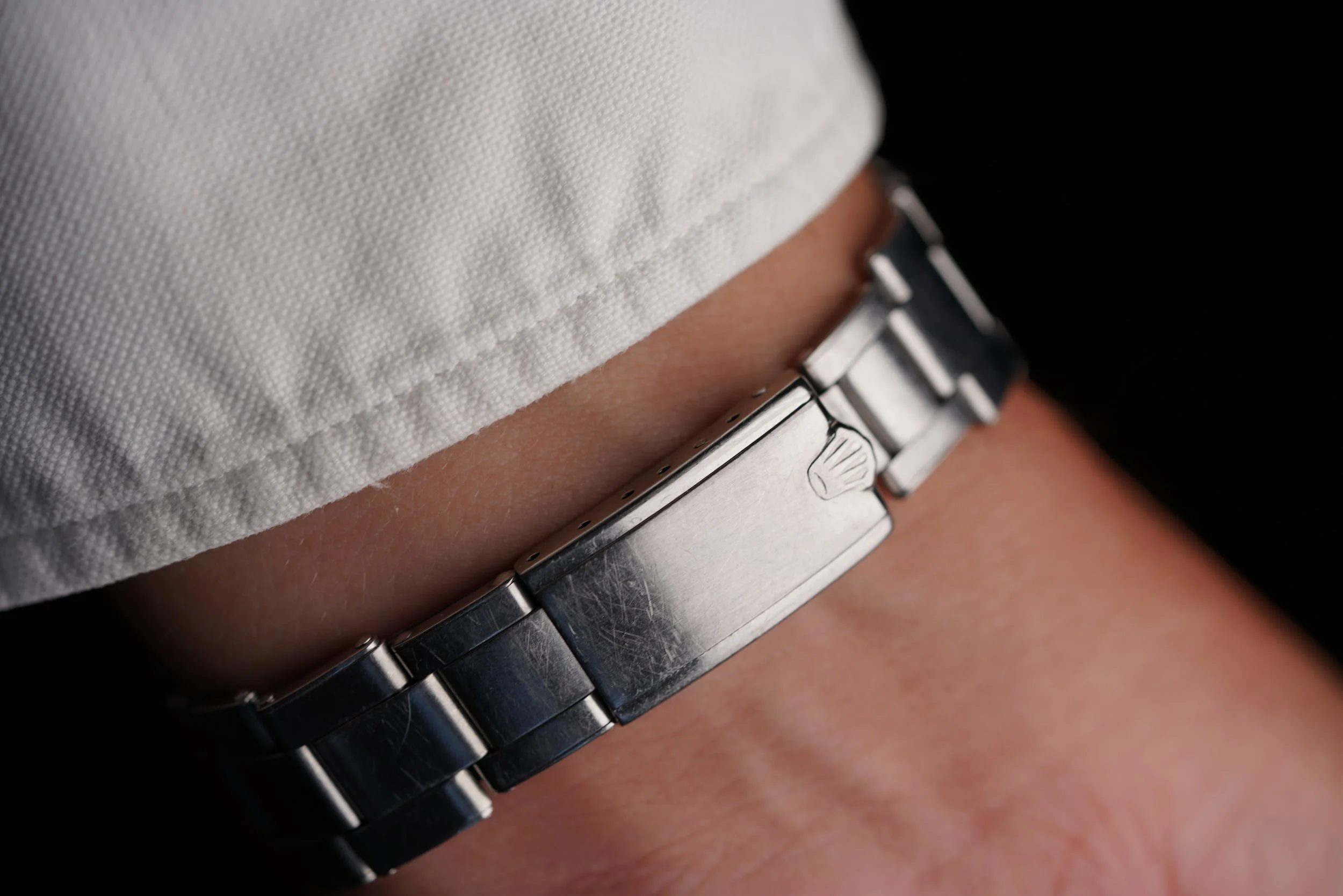 It is paired on a Rolex 7205 Rivet bracelet dating to 1964. It features a True Dome D21 crystal.
