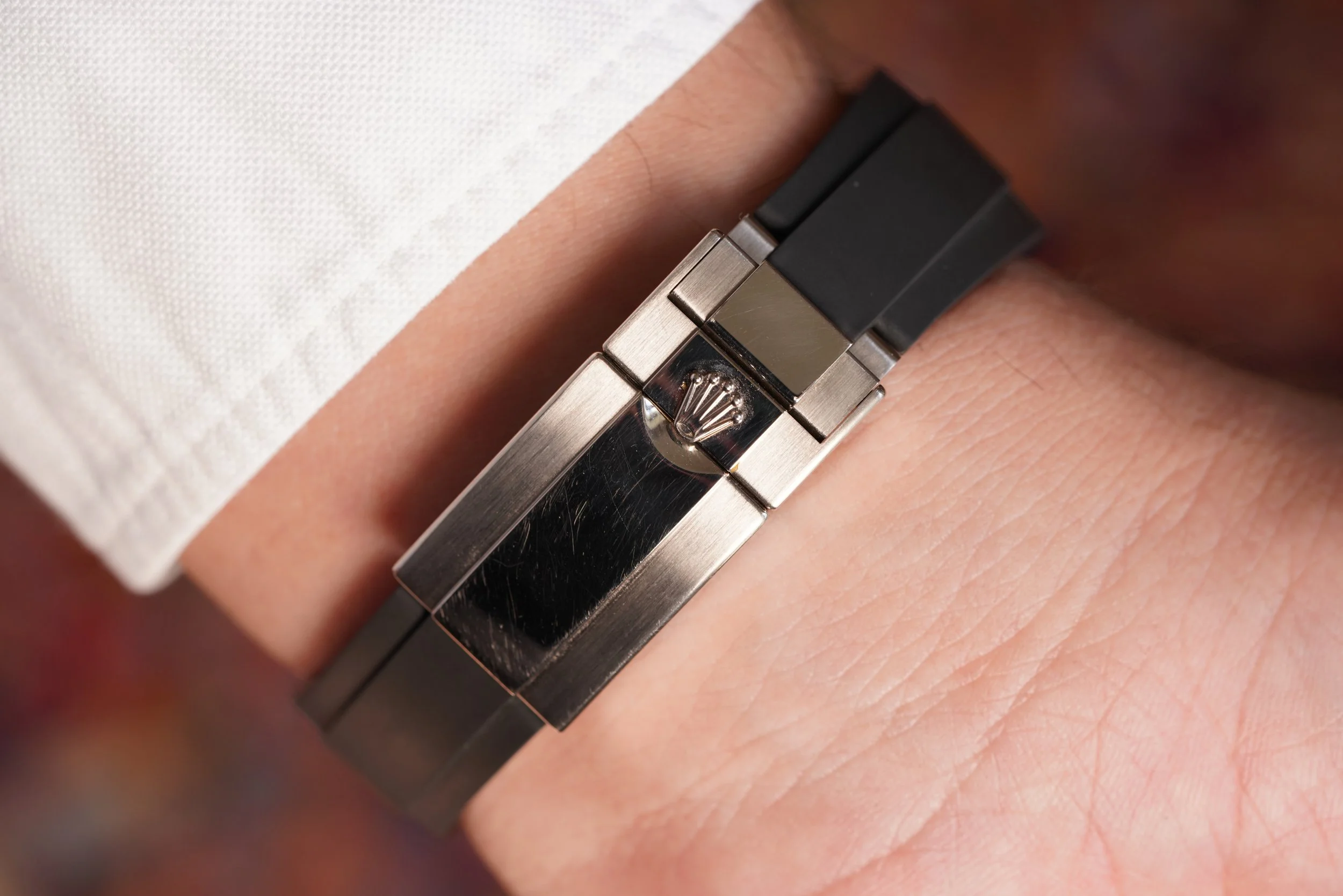 Rolex Cosmograph Daytona Reference 116519LN in white gold on Oysterflex