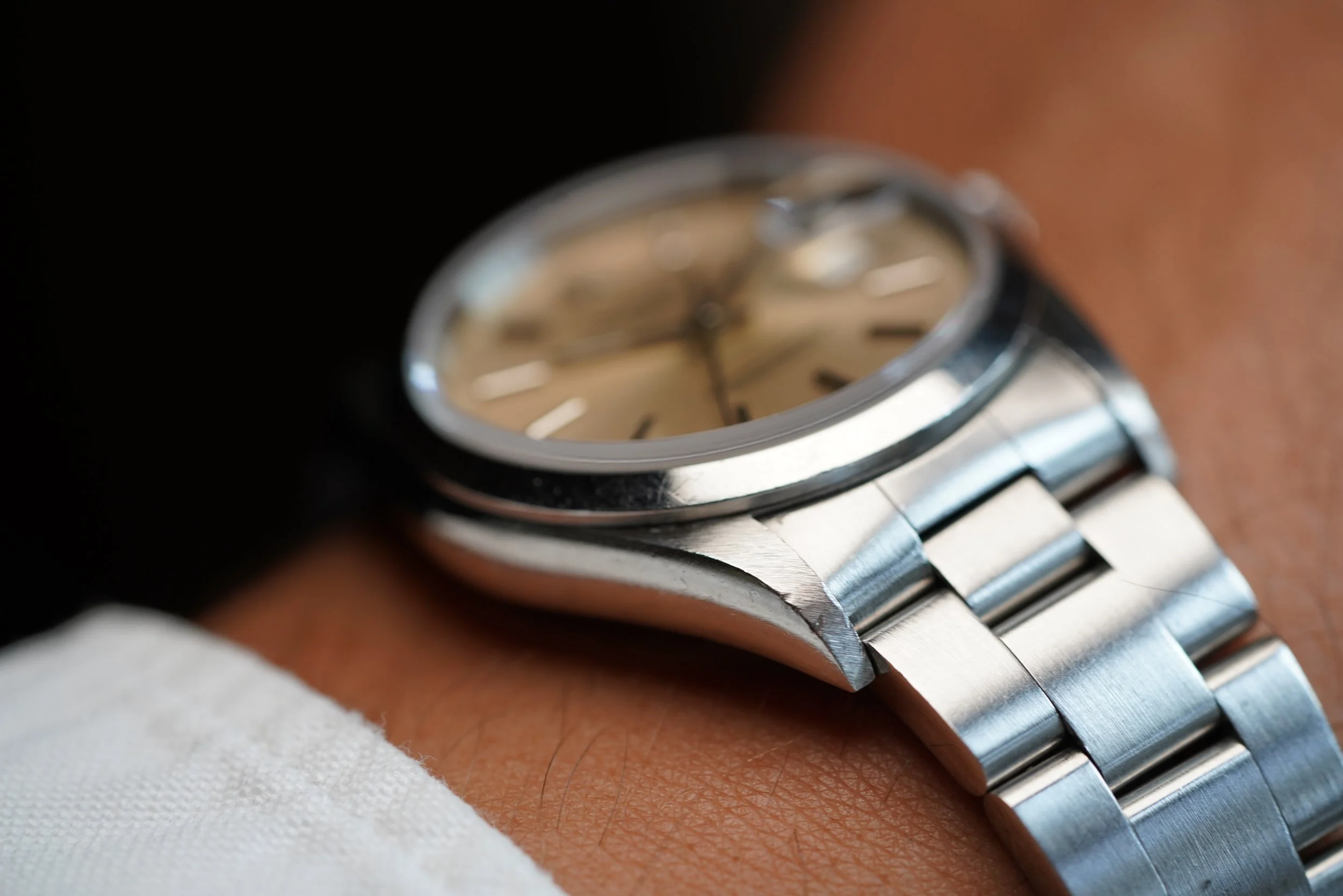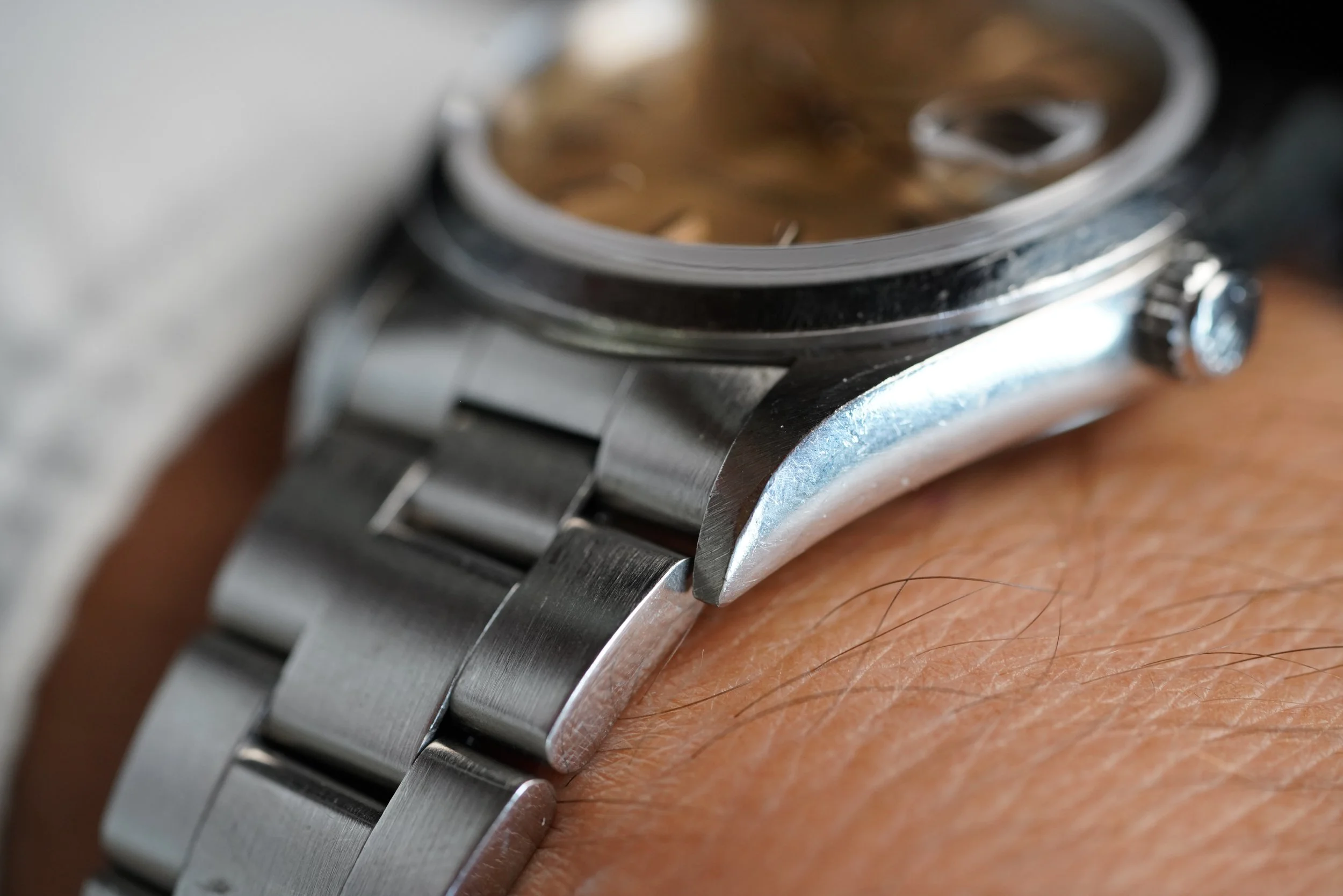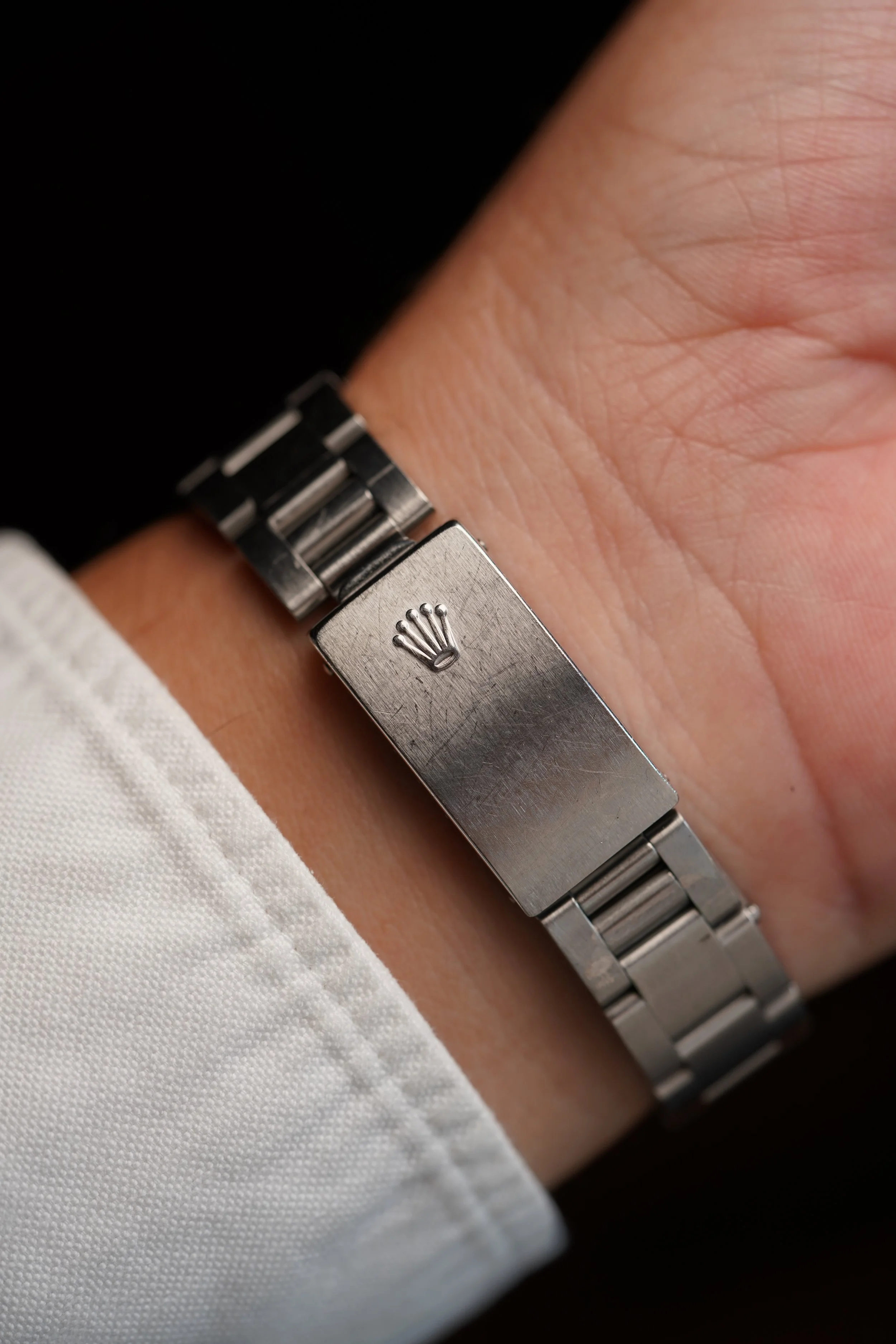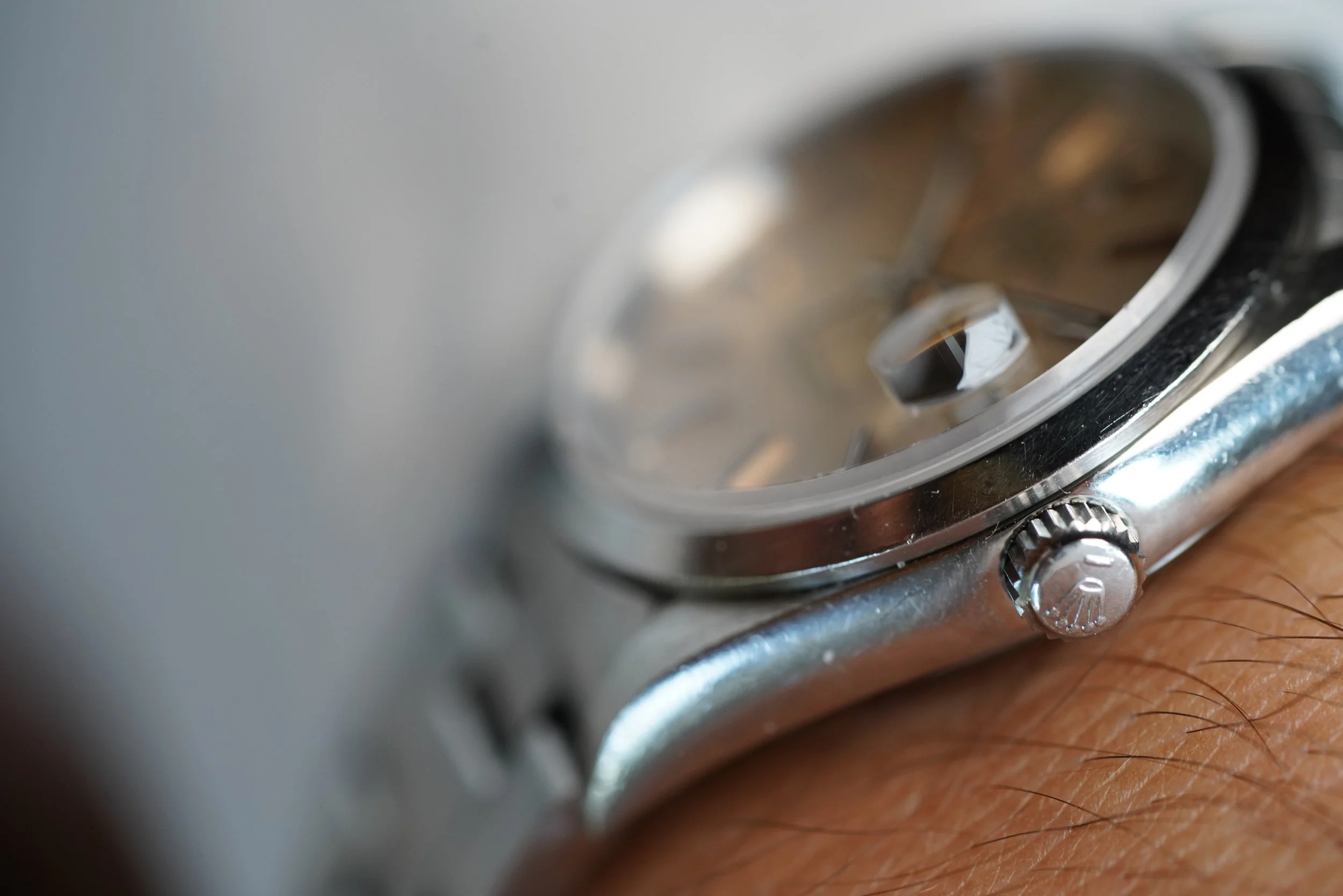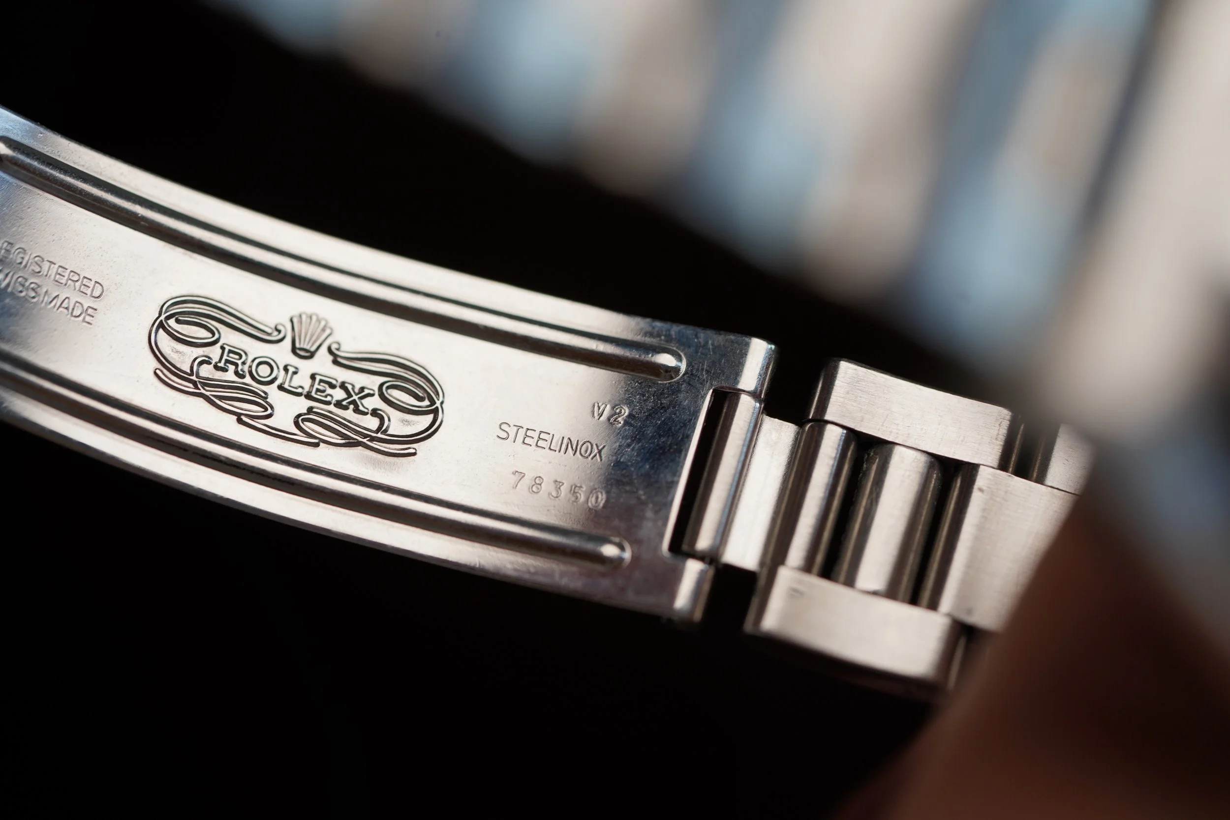 I absolutely love this Rolex Date reference 15200. The watch dates to circa 1994 with an S9 Serial. The case measures 34mm in diameter. The watch is in excellent condition. We believe the case is unpolished.