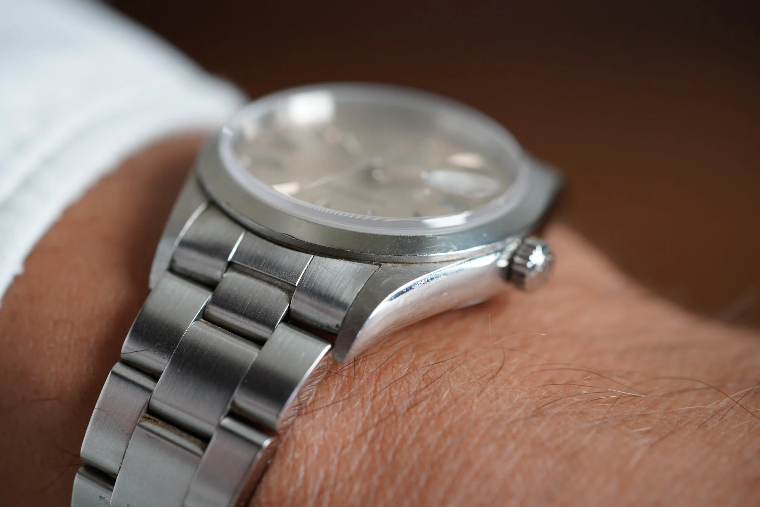 I absolutely love this Rolex Date reference 15200 The watch has a U7 serial code and. dates to circa 1997. The case measures 34mm in diameter. The watch is in excellent condition. We believe the case is unpolished.