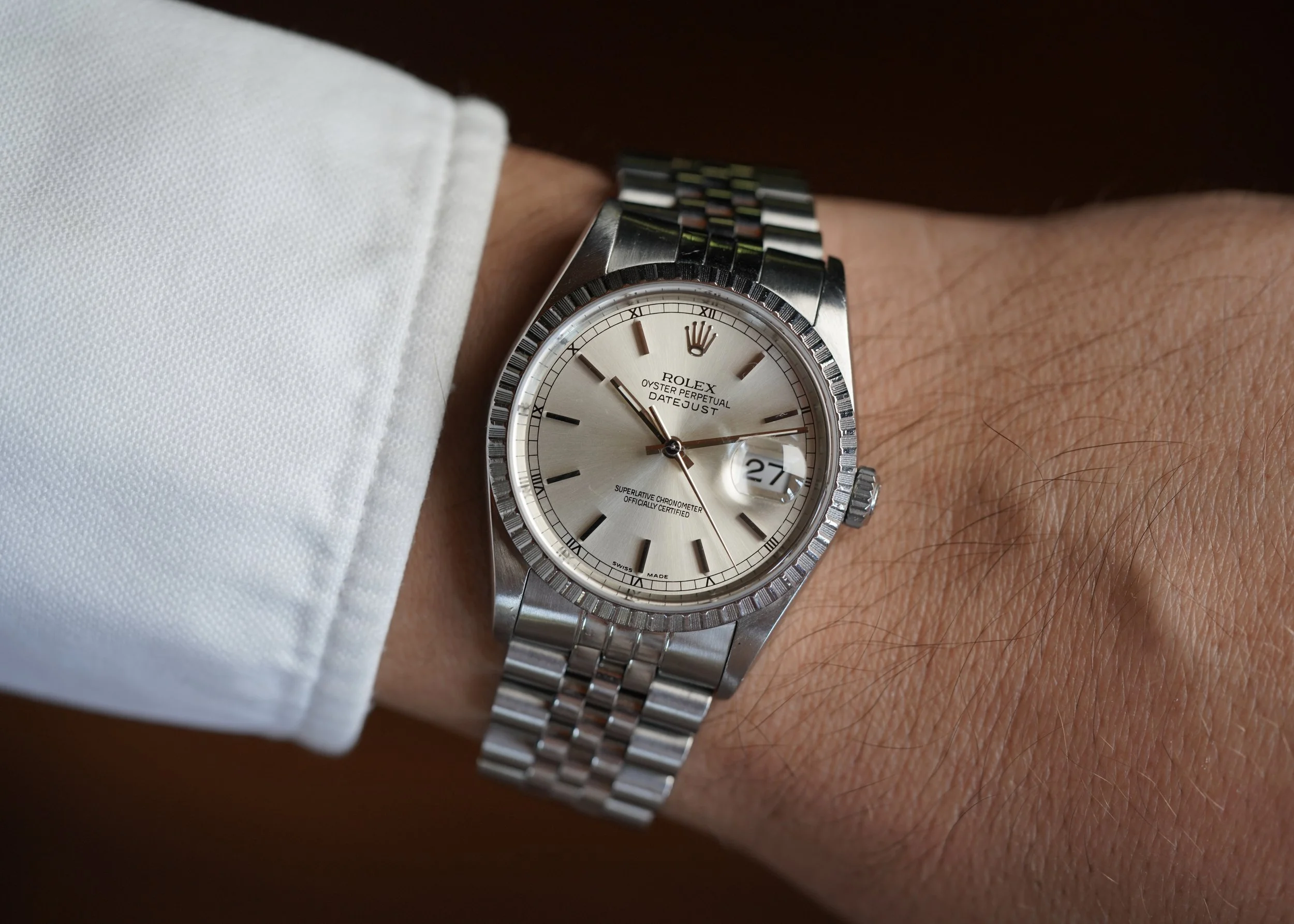 I absolutely love steel Rolex Datejusts. I recently wrote about them in our blog ‘Don't Sleep On This: The Simple Vintage Rolex Datejust In Steel’. I’m constantly amazed by the quality and differentiations of the dials that Rolex used in vintage Datejusts over the decades. I have found the Rolex Datejust to be one of the most versatile watches a person can have and the simplicity in this silver-dial reference 16220 is so beautiful.
