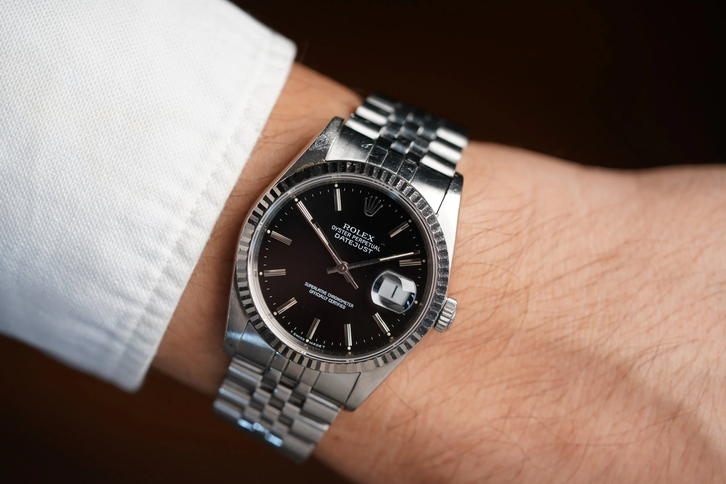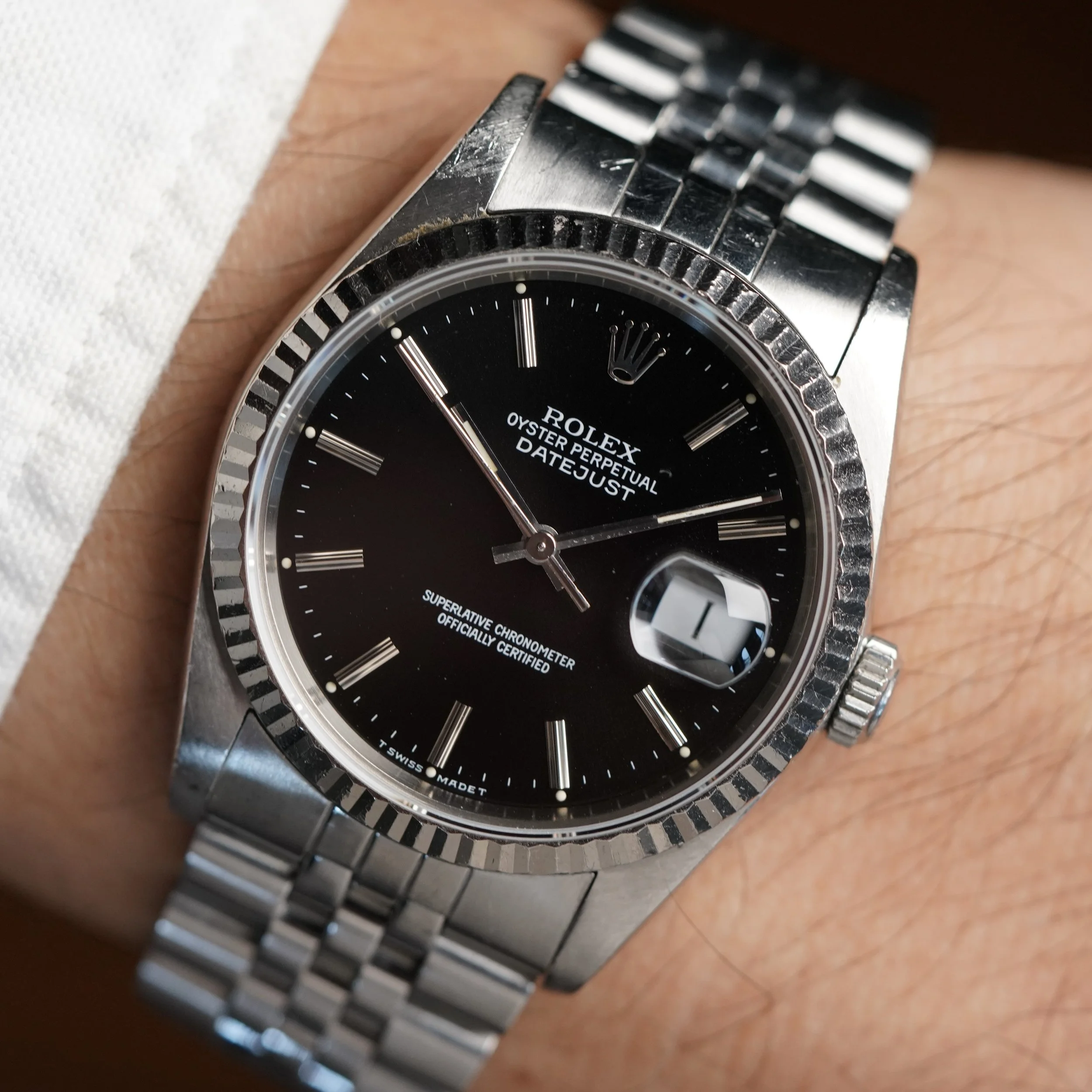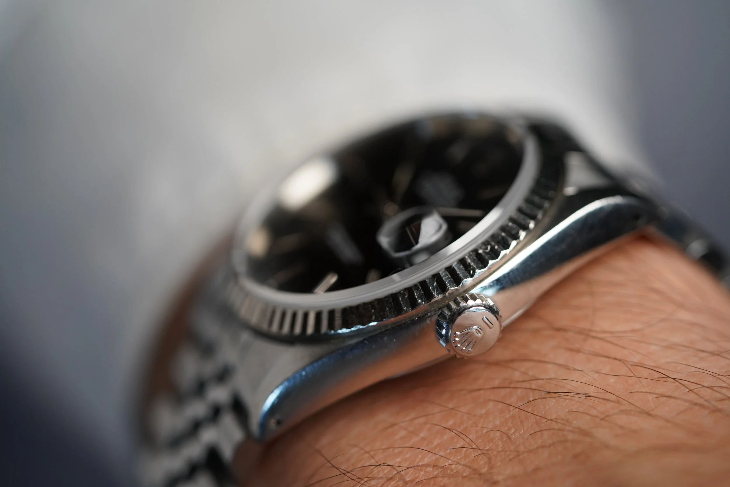 I absolutely love steel Rolex Datejusts. I recently wrote about them in our blog ‘Don't Sleep On This: The Simple Vintage Rolex Datejust In Steel’. I’m constantly amazed by the quality and differentiations of the dials that Rolex used in vintage Datejusts over the decades. I have found the Rolex Datejust to be one of the most versatile watches a person can have. This 16234 is no exception. The black dial is one of my favorite Datejust dials, as it is so attractive and special.