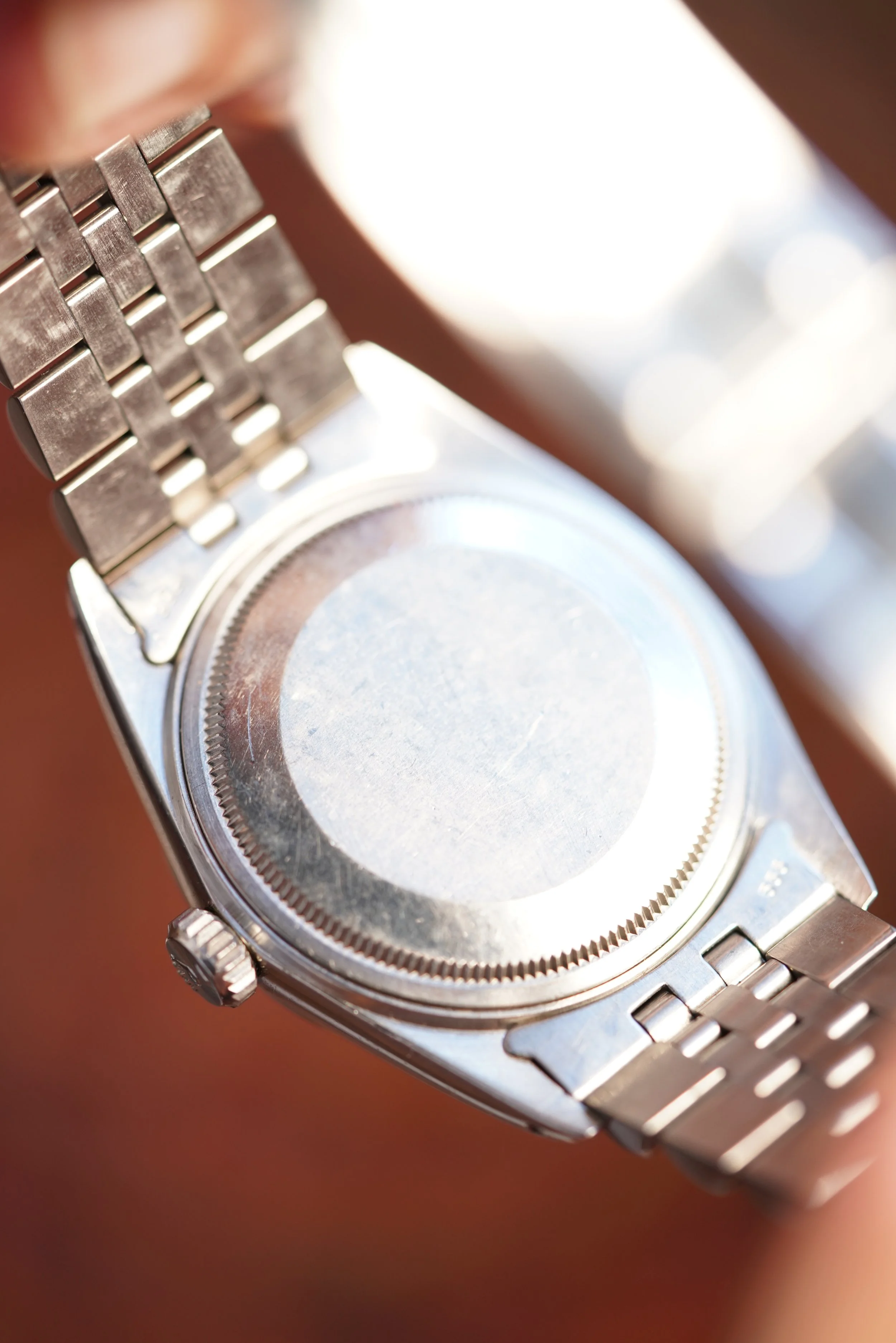 This Rolex Datejust reference 16014 is a remarkable vintage watch with the rare “Linen” dial in white. The case is steel and the fluted bezel is white gold. This case is unpolished and the original bracelet is very tight. The watch dates to circa 1982. It is insanely difficult to find these in this condition, and as a result I am tempted to give this watch to Charlie Dunne.
