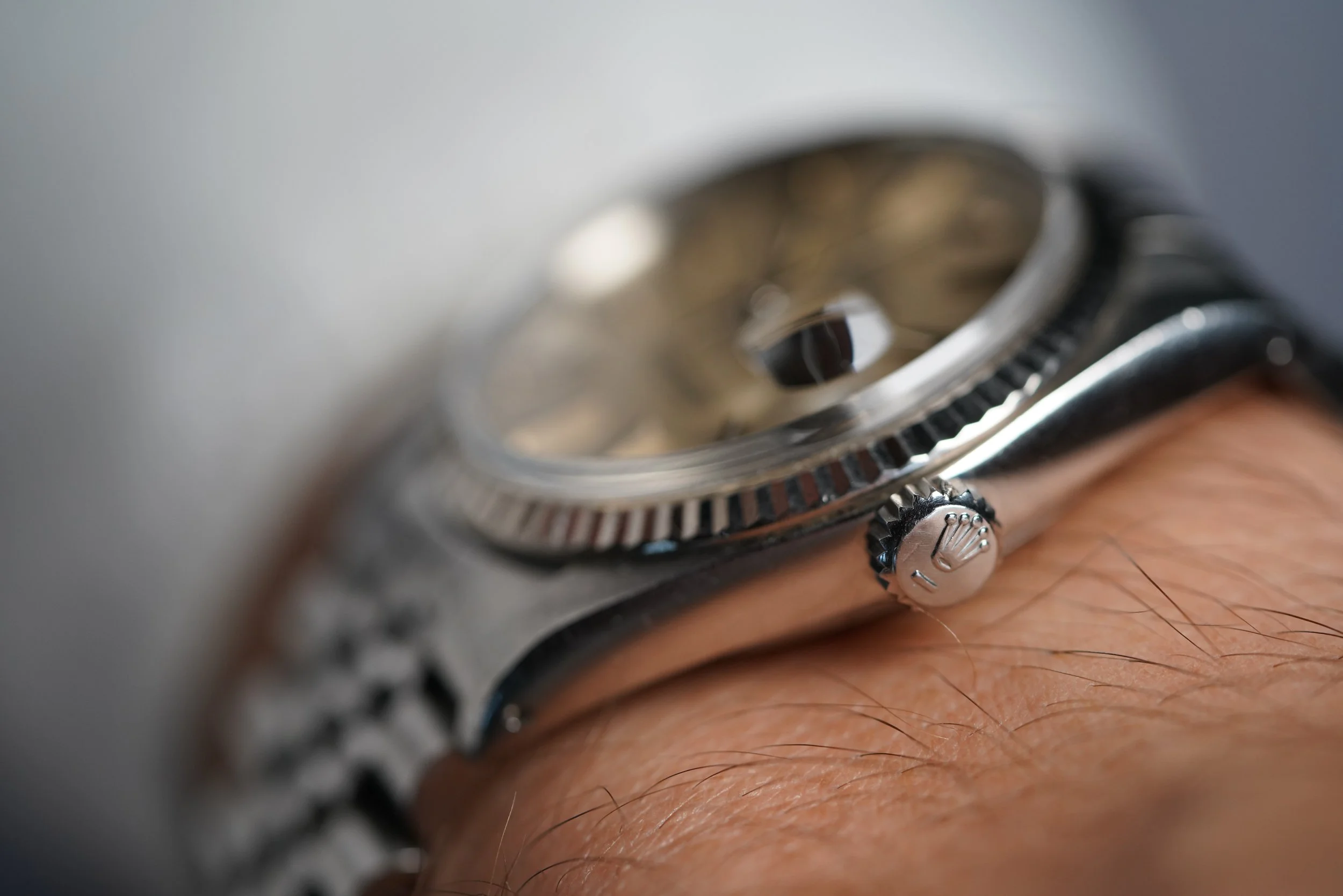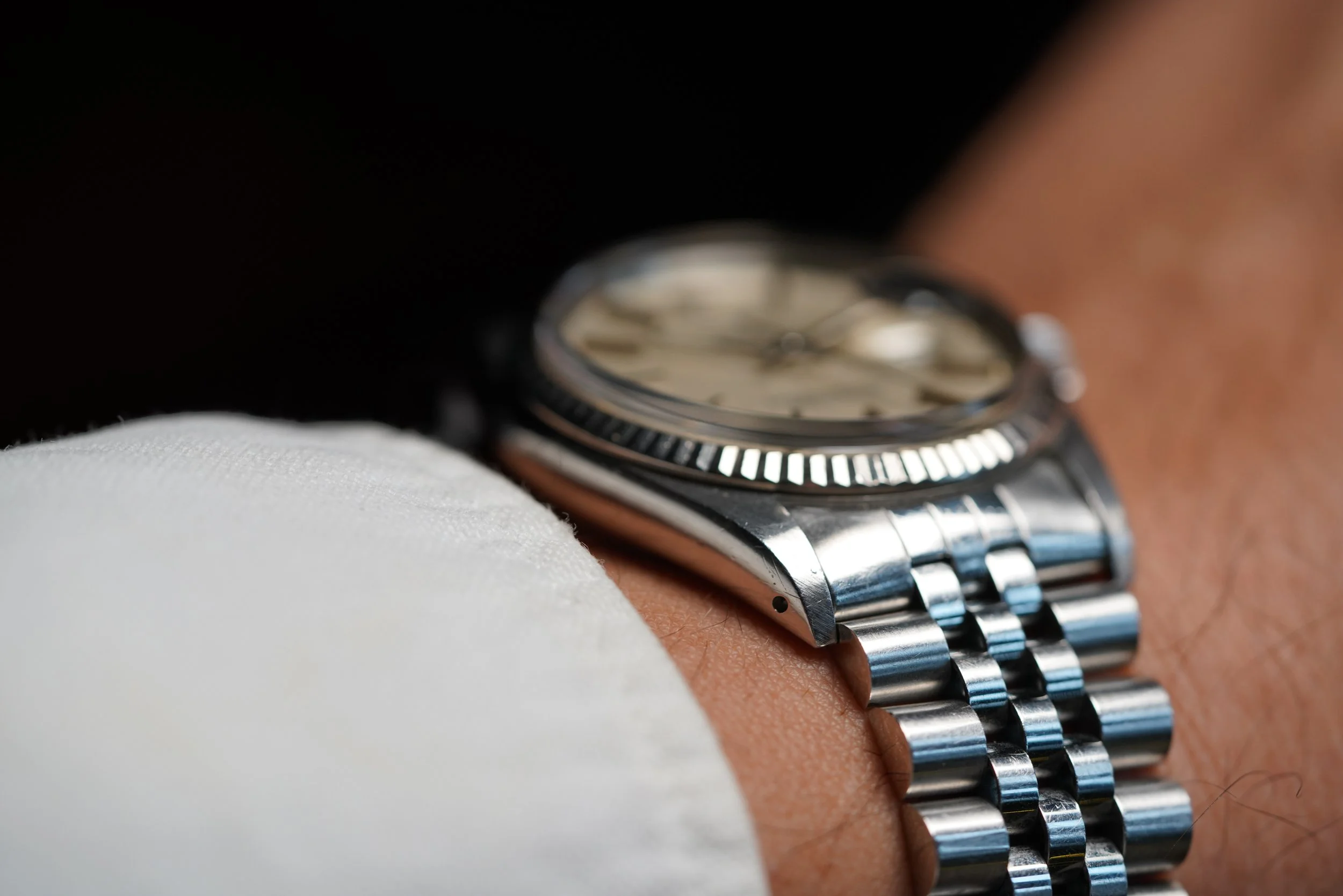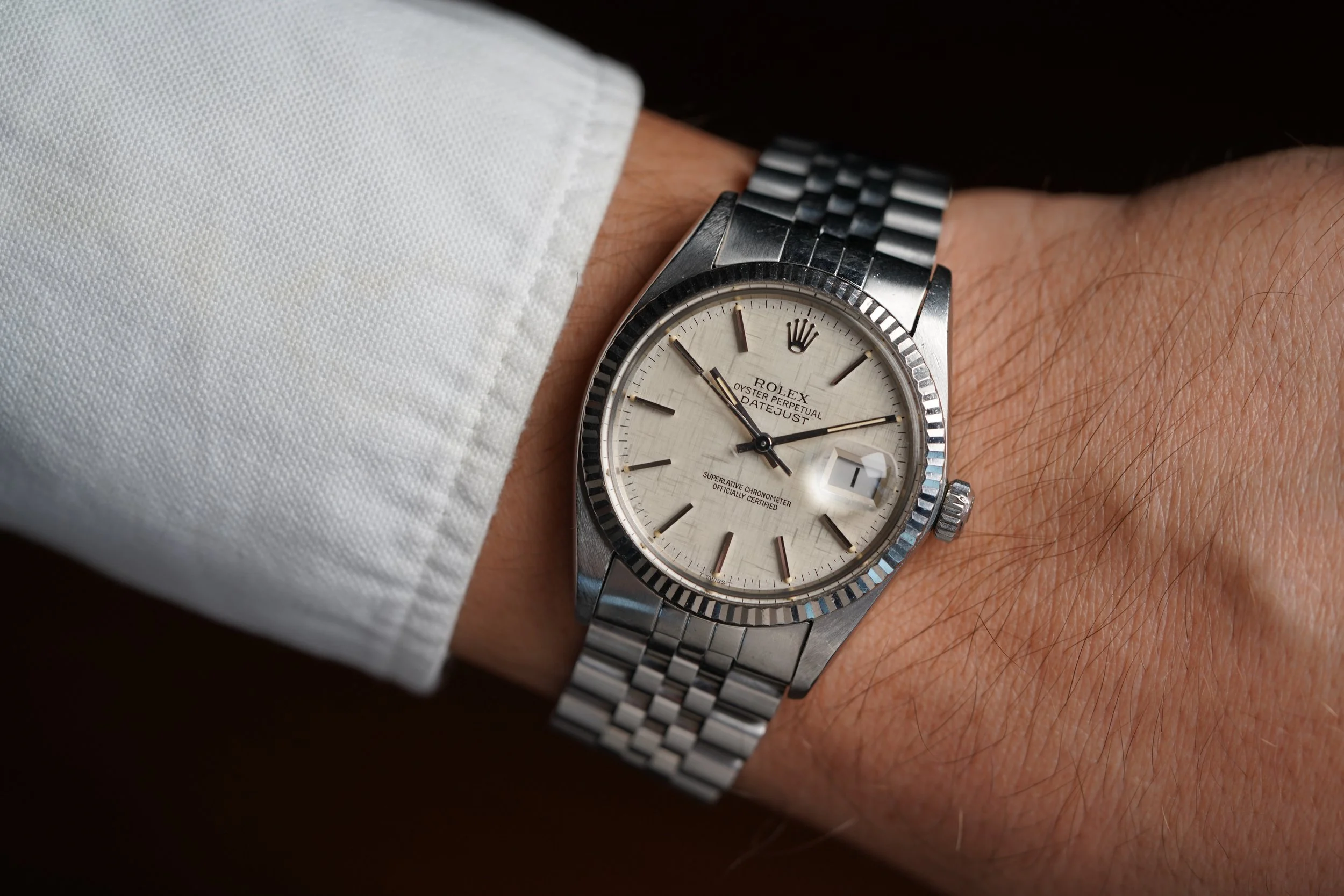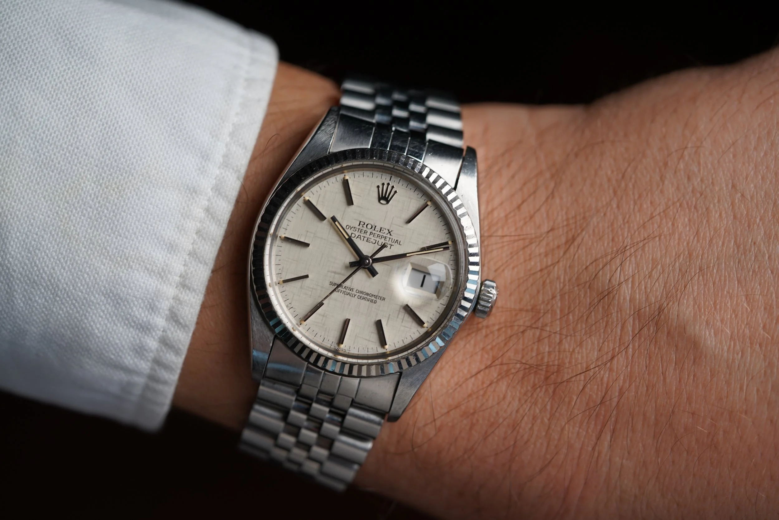 I absolutely love steel Rolex Datejusts. I recently wrote about them in our blog ‘Don't Sleep On This: The Simple Vintage Rolex Datejust In Steel’. I’m constantly amazed by the quality and differentiations of the dials that Rolex used in vintage Datejusts over the decades. I have found the Rolex Datejust to be one of the most versatile watches a person can have. This 16014 is no exception. The “linen” dial is one of my favorite Datejust dials, as it is so attractive and special.