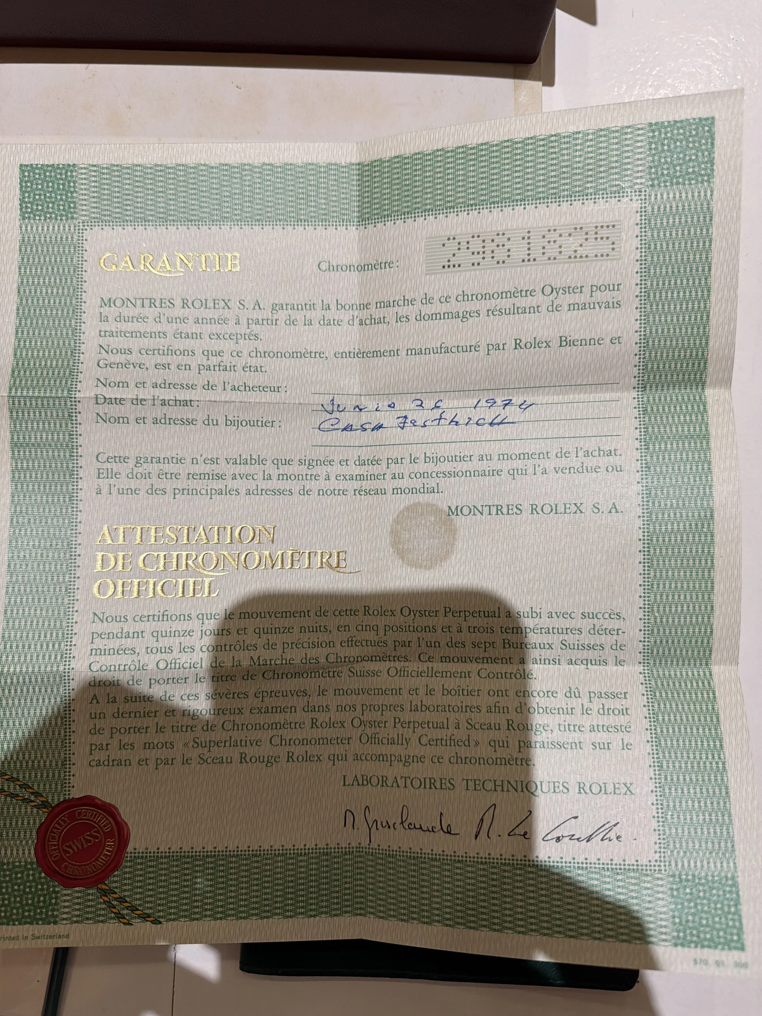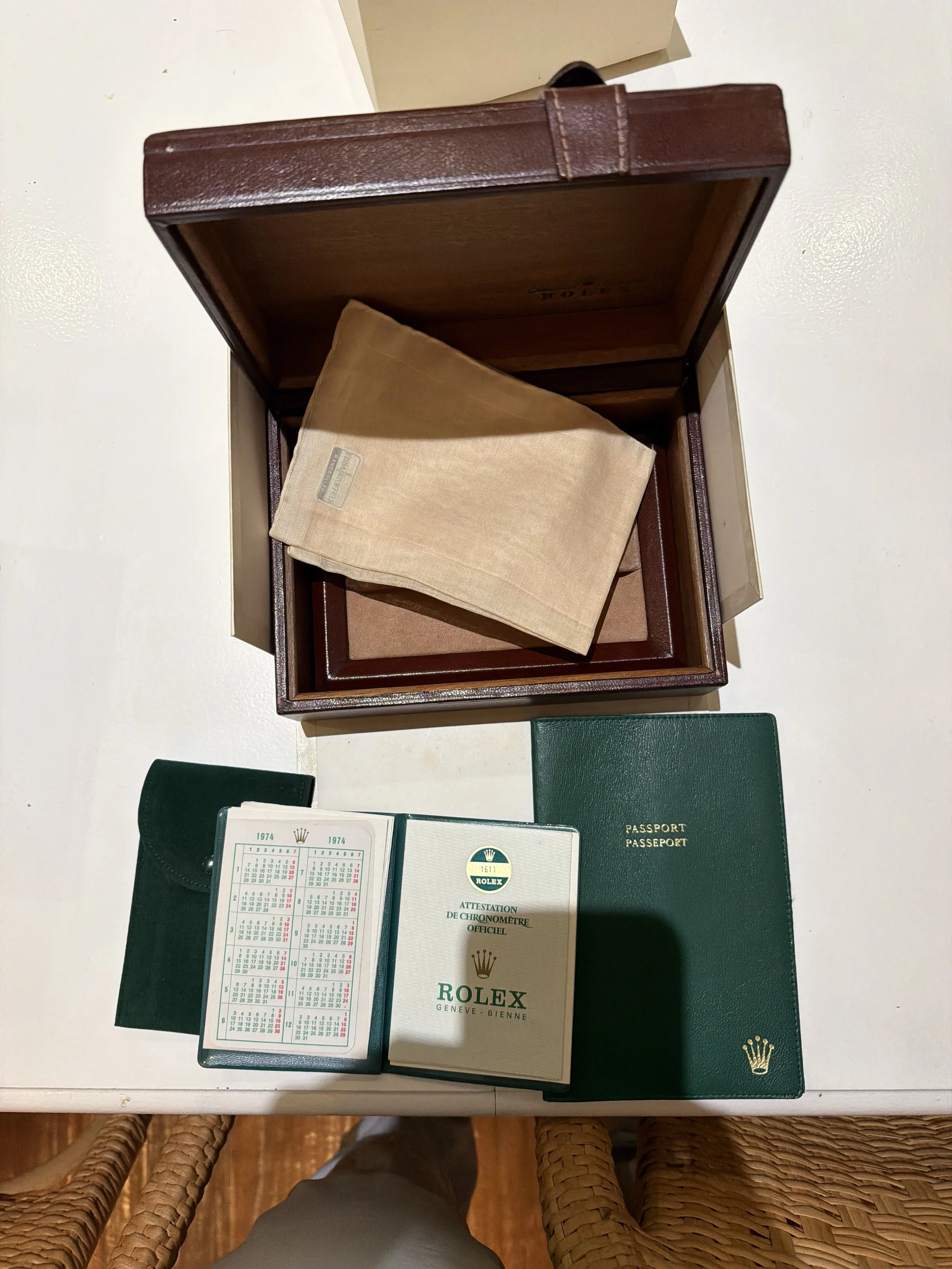 It comes as a full set with a box and papers. The service history is unknown, but it is running well. It recently passed a 5 bar water resistance test.