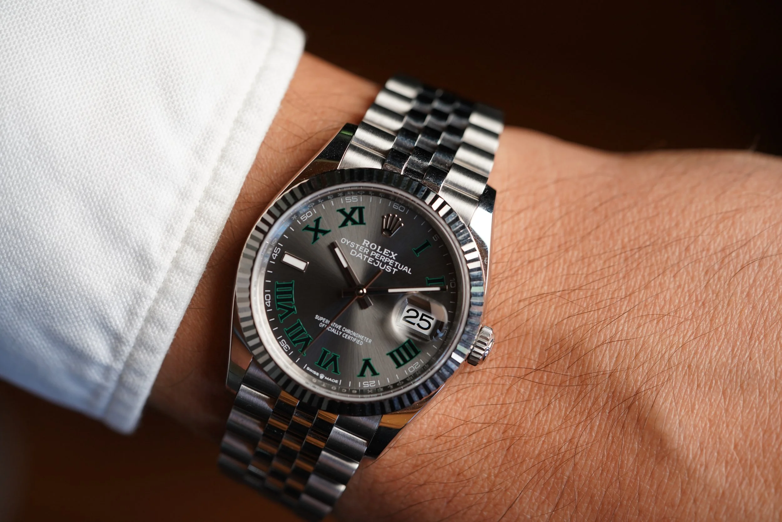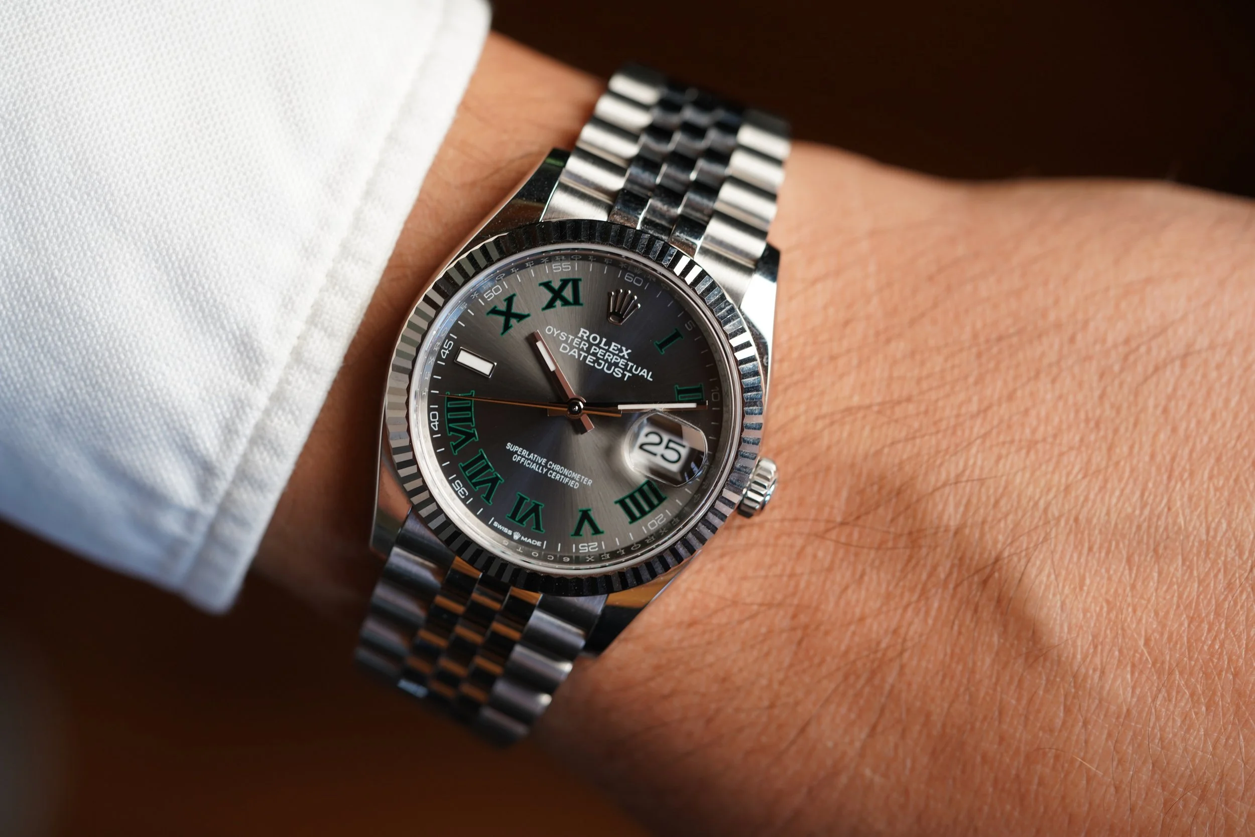 This Rolex Datejust reference 126234 is a great example from the modern catalog. The steel case is 36mm and unpolished. It features a beautiful “Wimbledon” dial which looks great in any setting. The case is unpolished and like new.