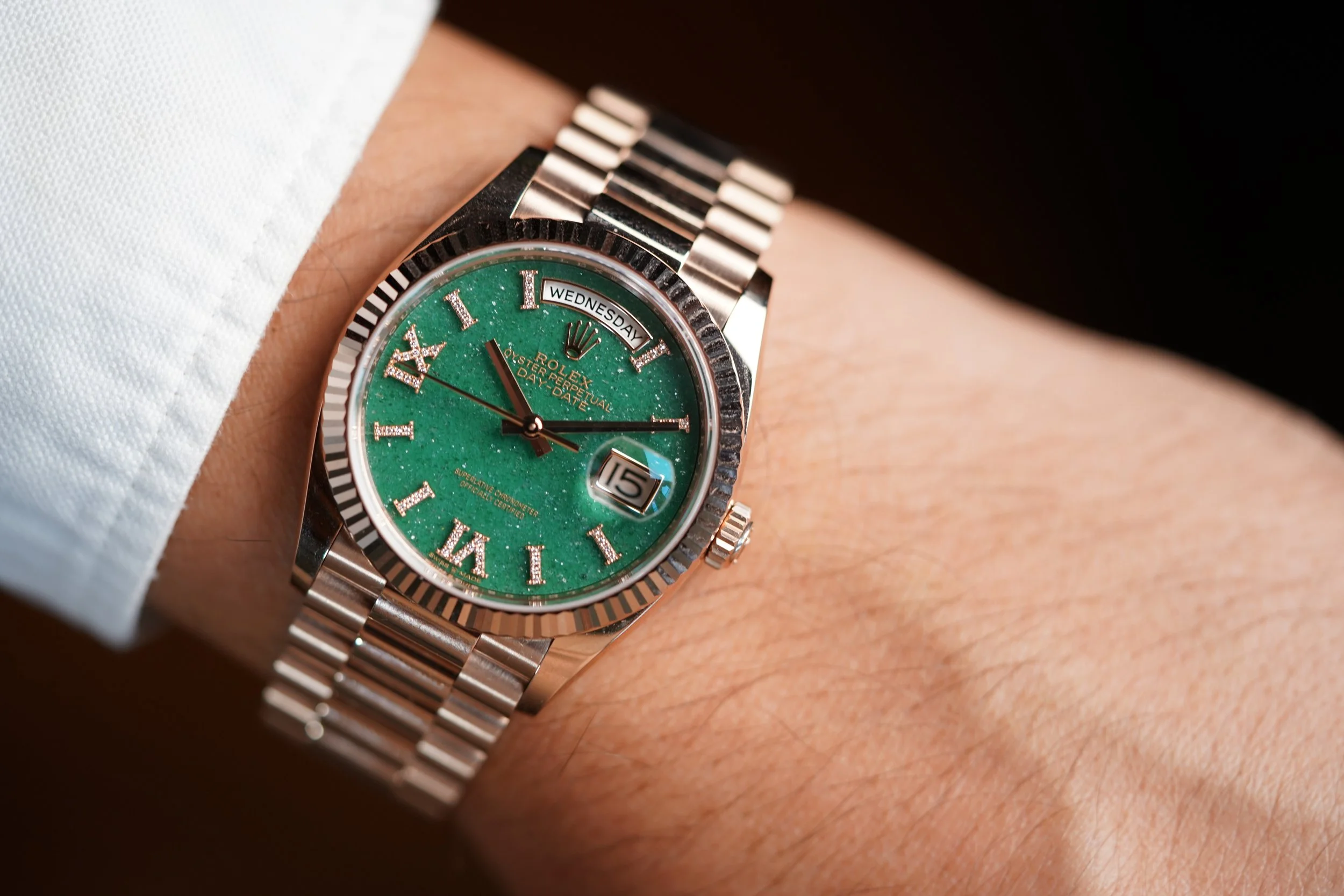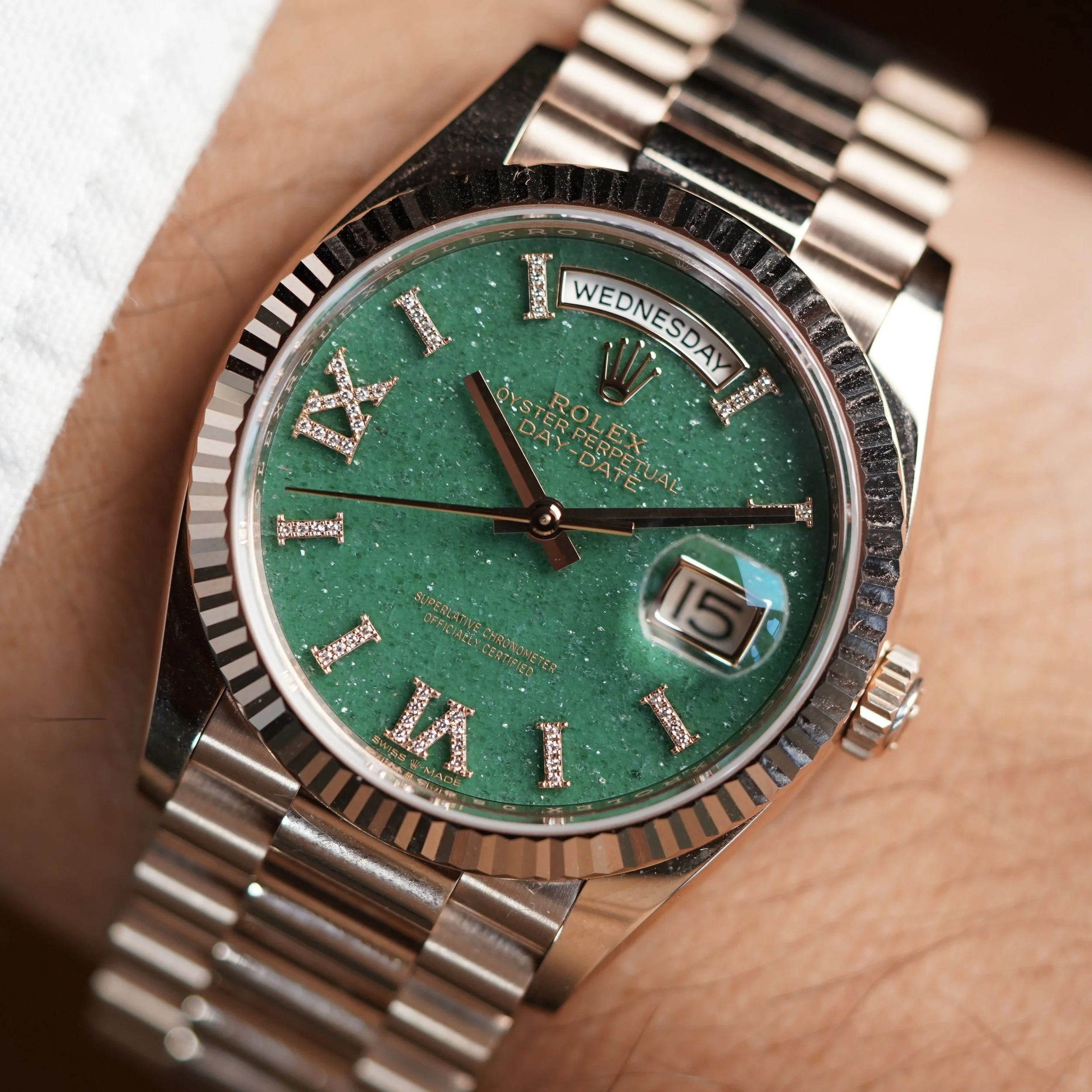 Rolex Day-Date Ref. 128235 Rose Gold Green Aventurine Dial Full Set
