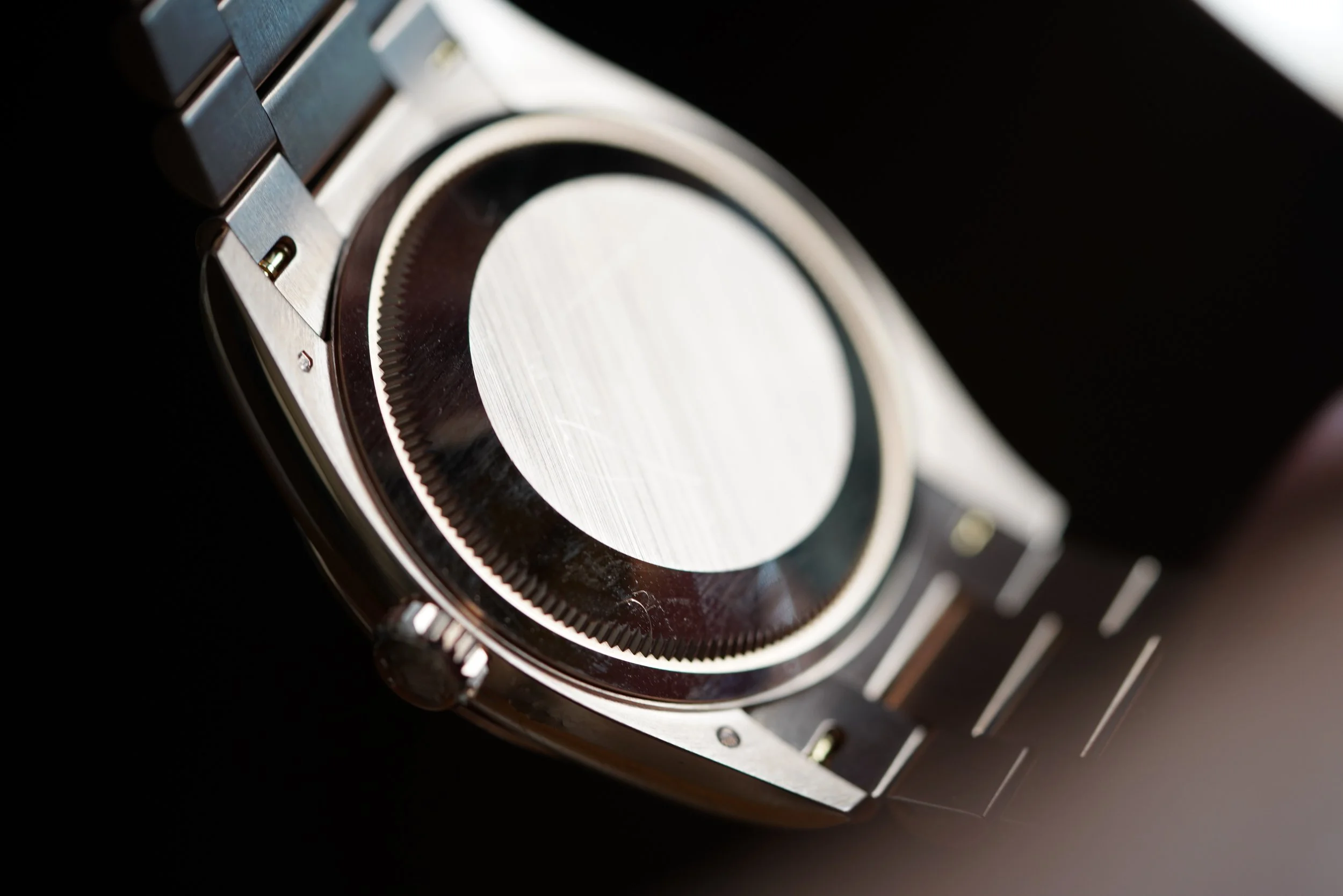 The case and bracelet appear to be unpolished and are in excellent condition. The watch recently passed a water resistance test of 5 bar. It comes as a “full set” with the original box and papers. It was sold in 2023.