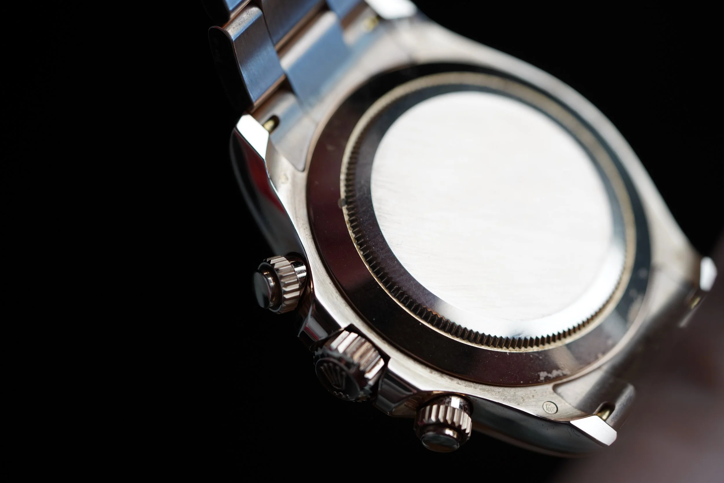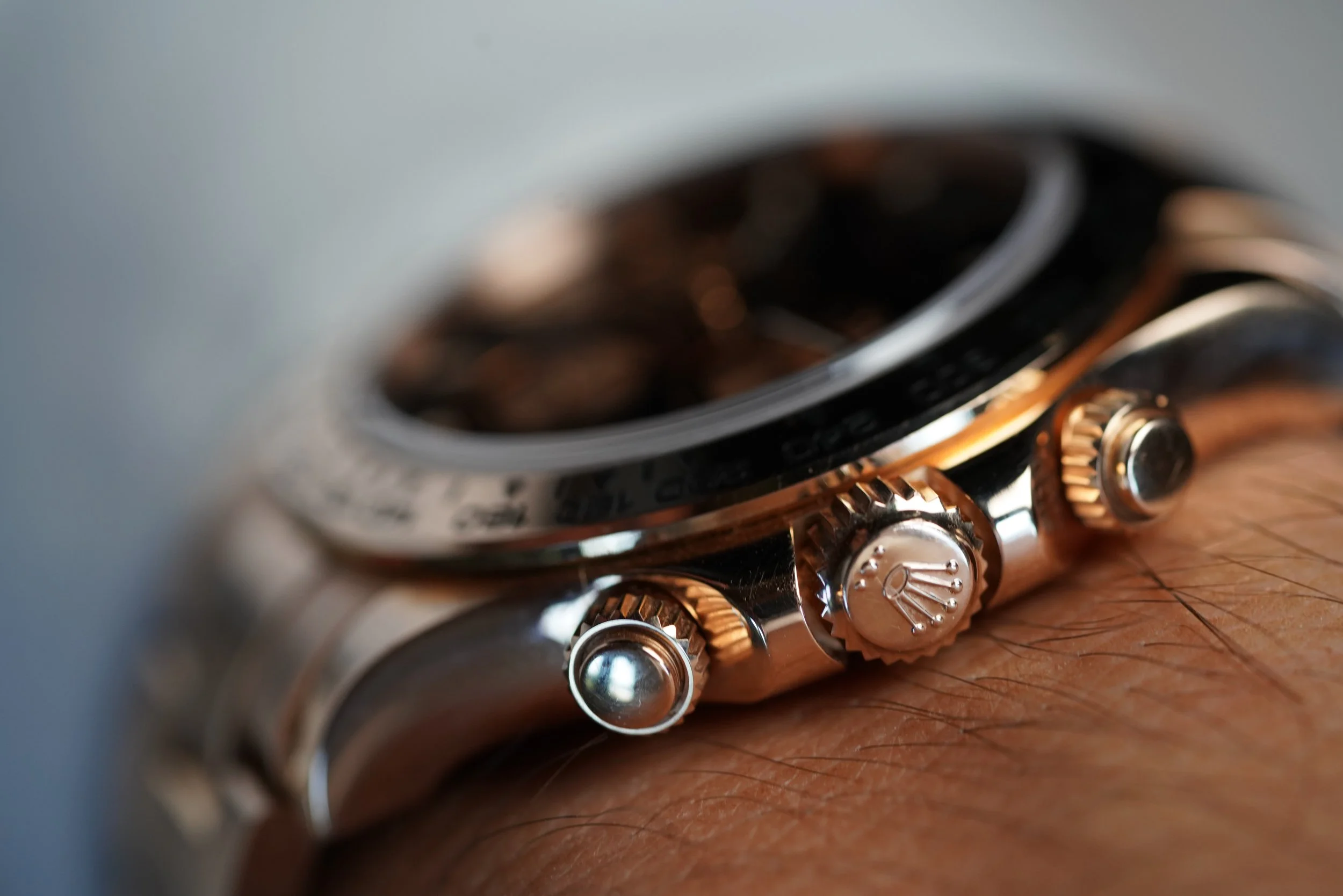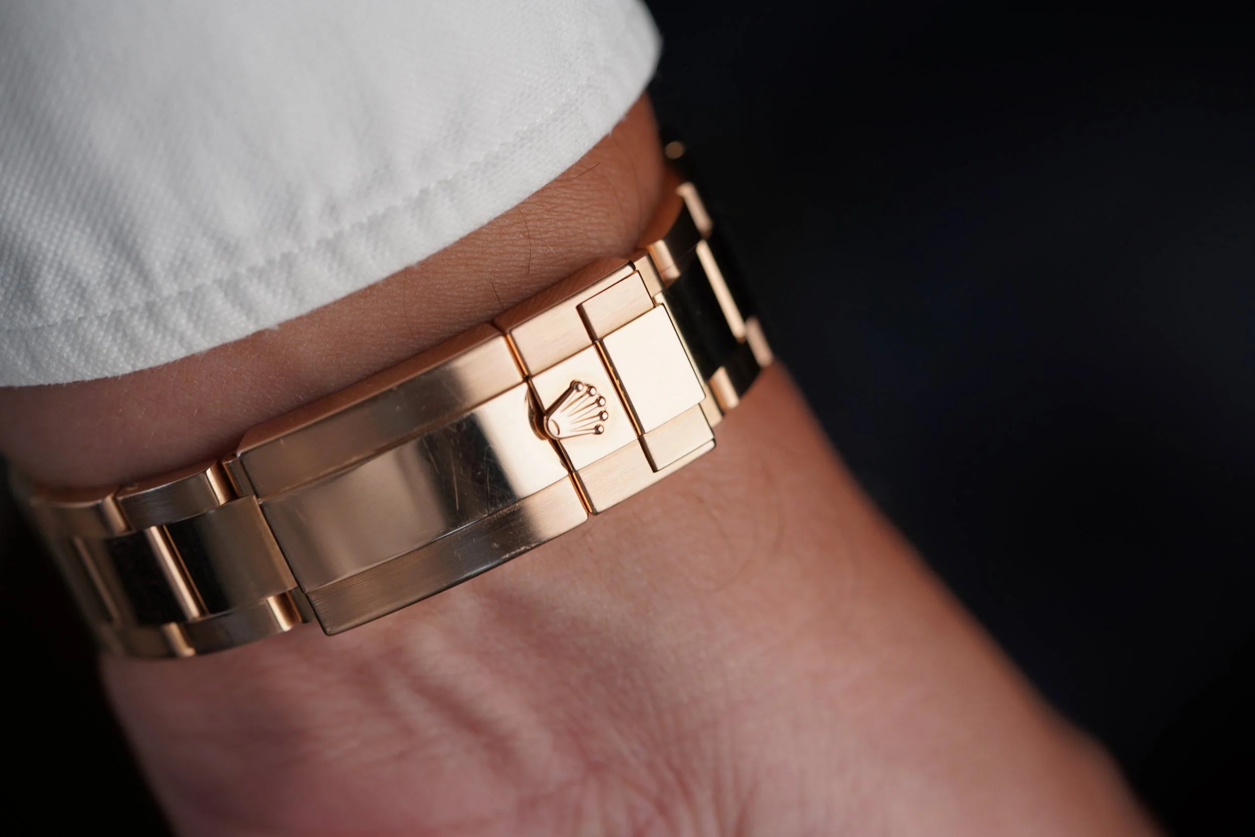 The Rolex Daytona Cosmograph reference 116505 is one of the most luxurious sport watches in the world. The everose case is has been polished in the past. It is in great condition.