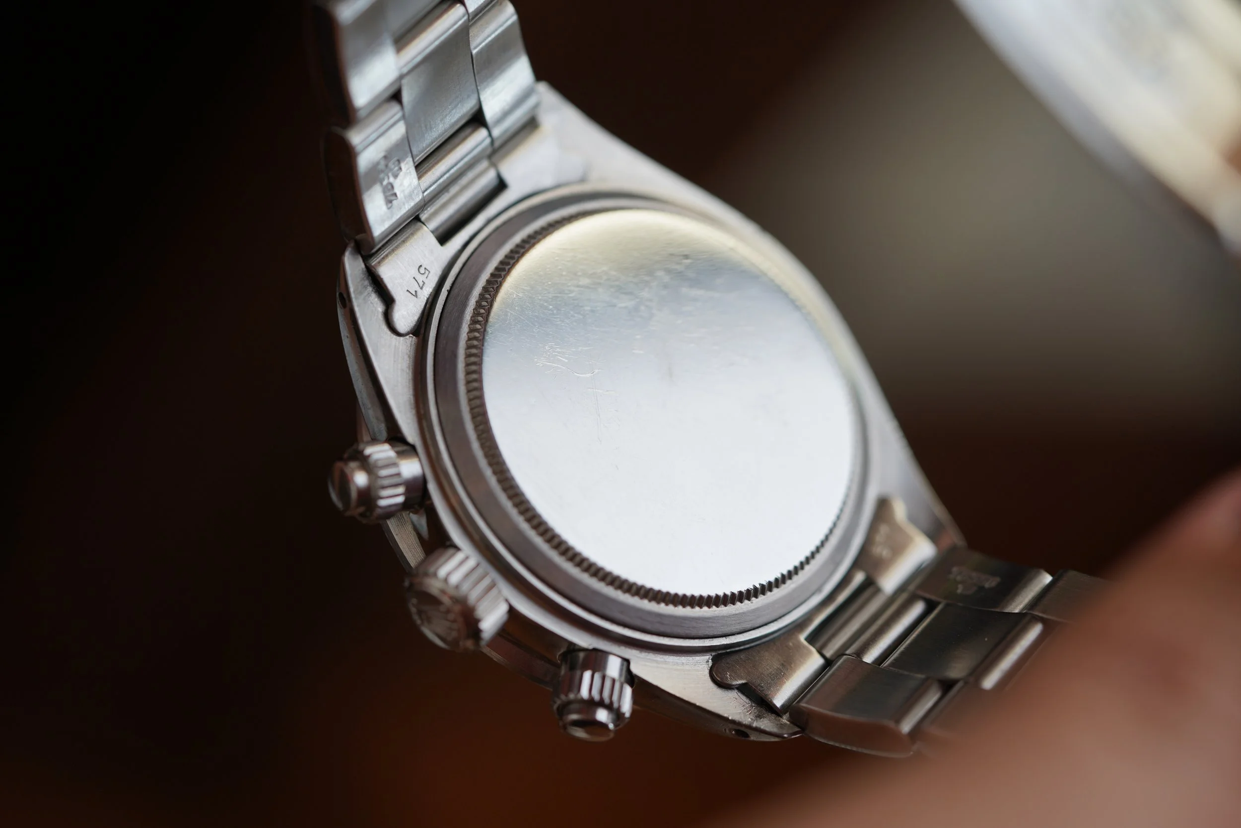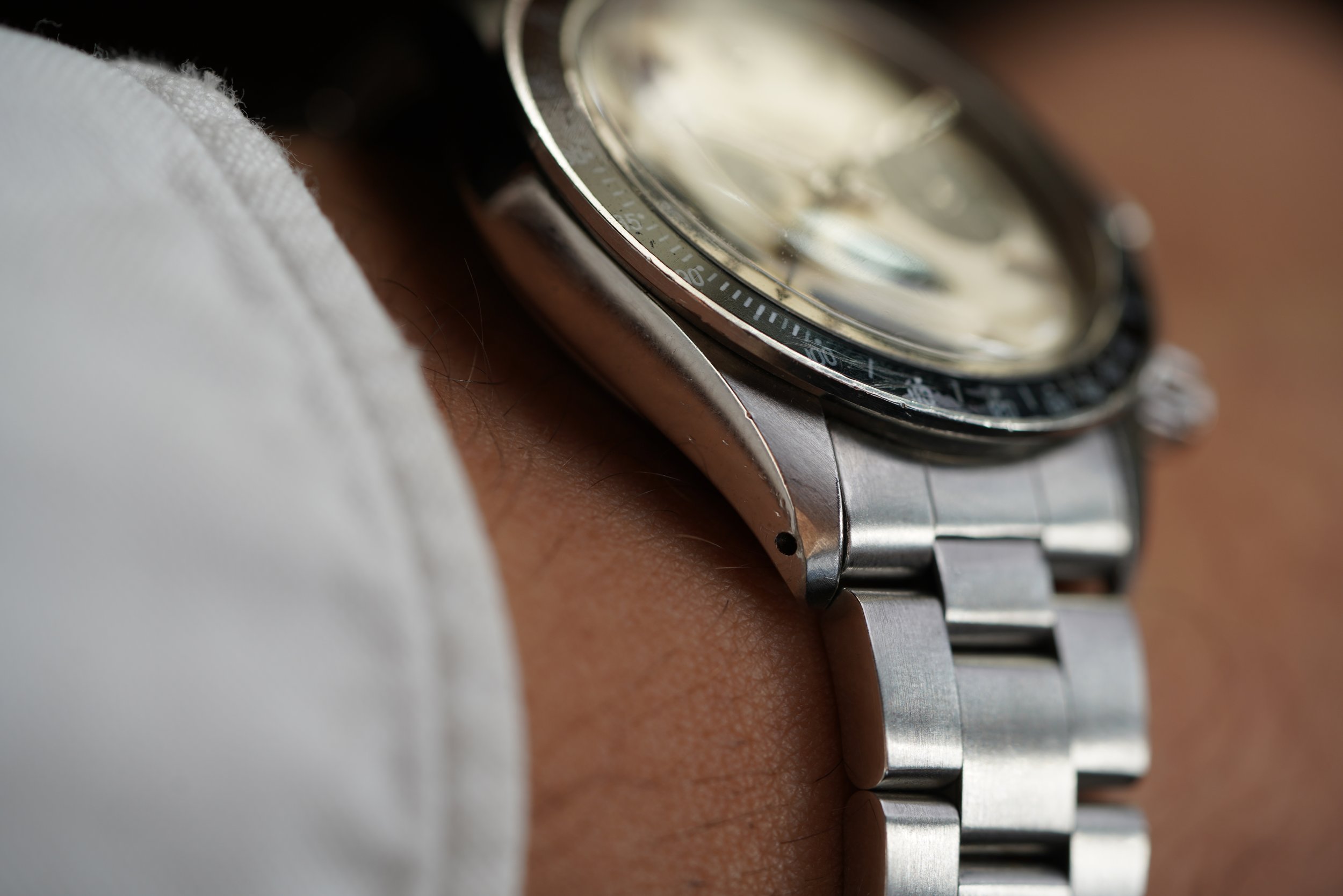 The watch is paired on a later 78350 Oyster bracelet with 571 end links with H date code dating to 1983. The case is crisp and appears to be unpolished. It measures 37mm in diameter. The bottom left lug has a slight bend - which could potentially be bent back into place..