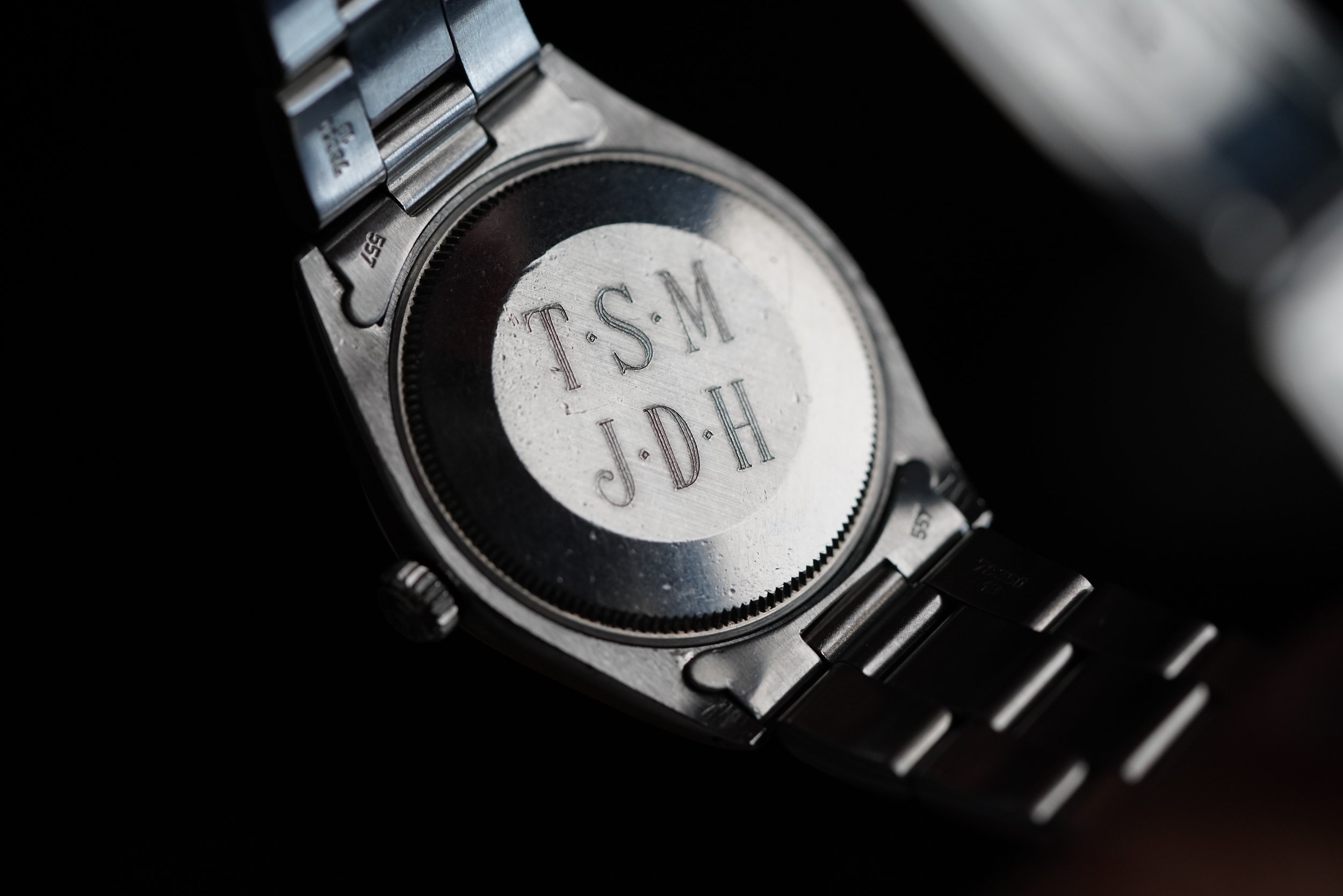 All these watches were originally ordered through Schlanderer and Sons in Ann Arbor, Michigan, where Domino’s has its headquarters. In the past, these watches on the secondhand market were generally the least expensive Rolex a person could purchase as few people wanted a pizza logo like this on their dial. Dealers would buy them, swap out the Domino’s dial, and polish off the case back initials. Over the last year, however, they have gained a massive following. The watch features an engraving on the back with the recipient’s initials above “T.S.M.” for Thomas S. Monaghan, the founder of Domino’s. The engravings were made in Ann Arbor, Michigan.