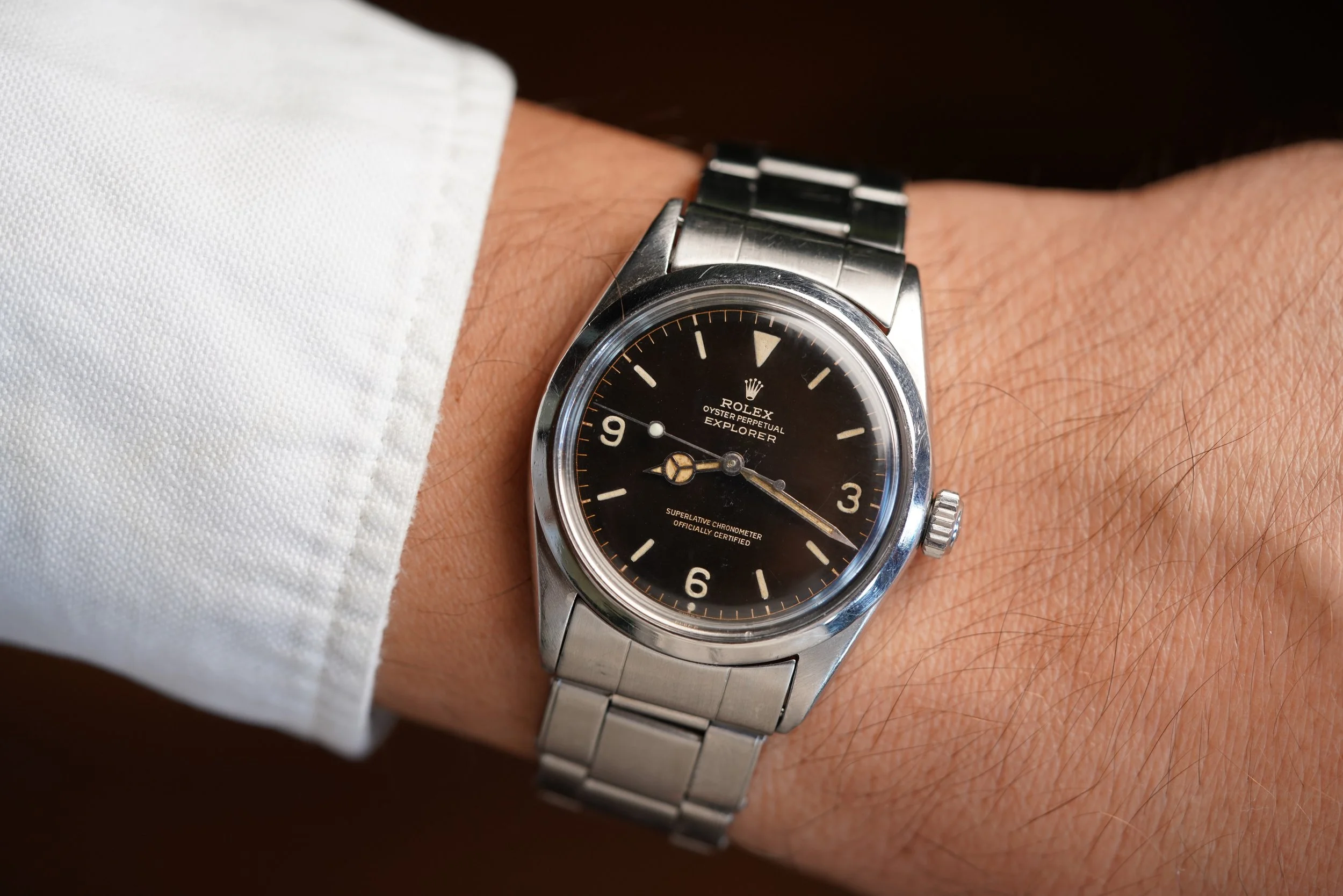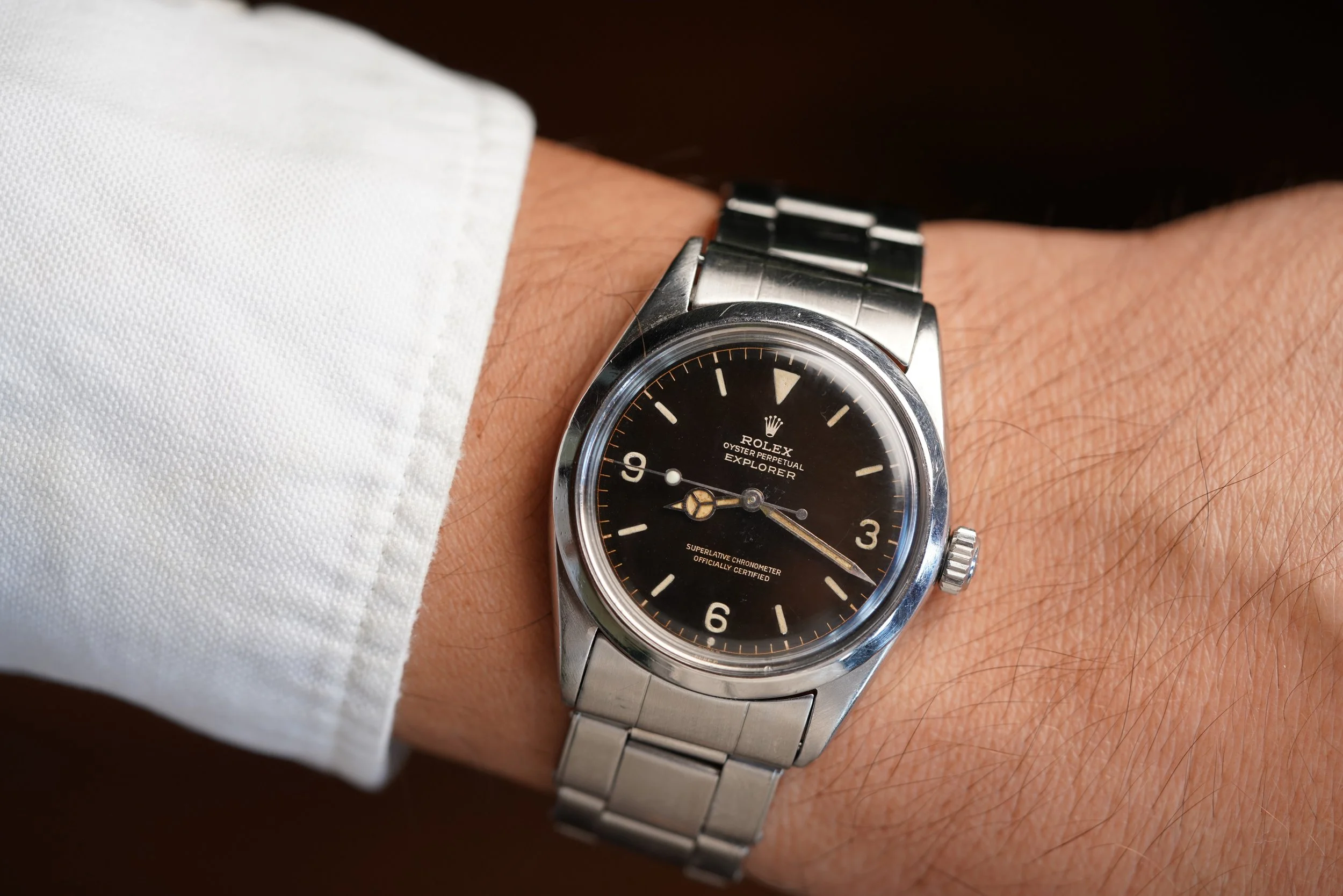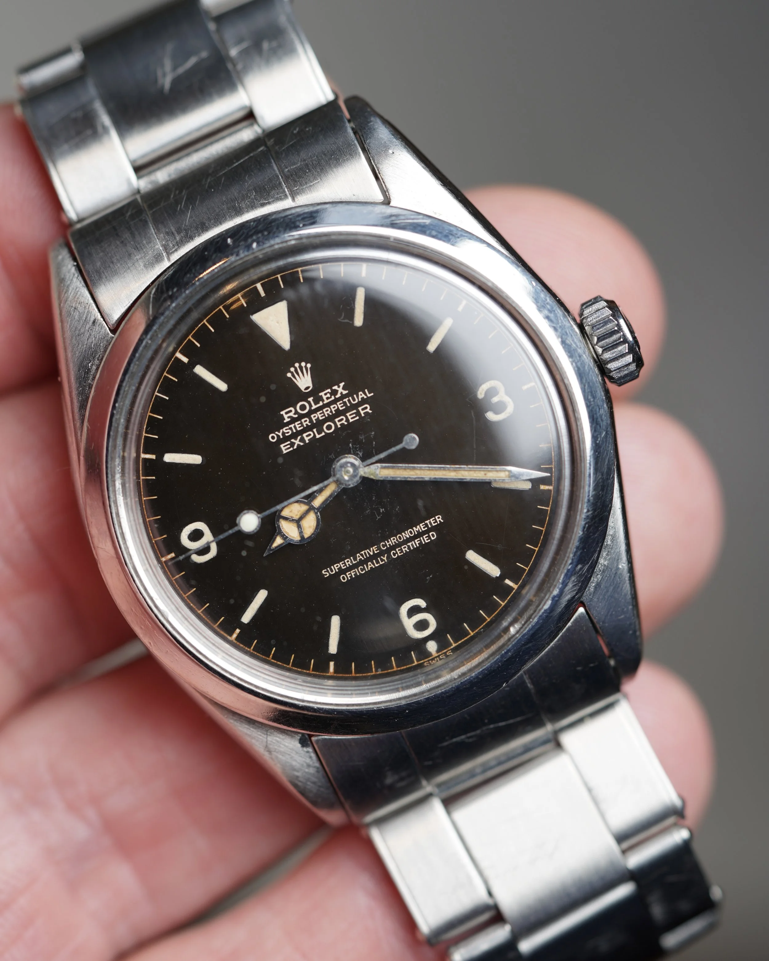 The Rolex Explorer reference 1016 is an icon of simplicity and function. The Explorer reference 1016 was produced from 1960 until circa 1989 and it was the first Explorer with “Superlative Chronometer Officially Certified" on the dial. The 1016 is one of the purest expressions of watch design and I am asked for great vintage Explorer reference 1016 examples more than any other watch.