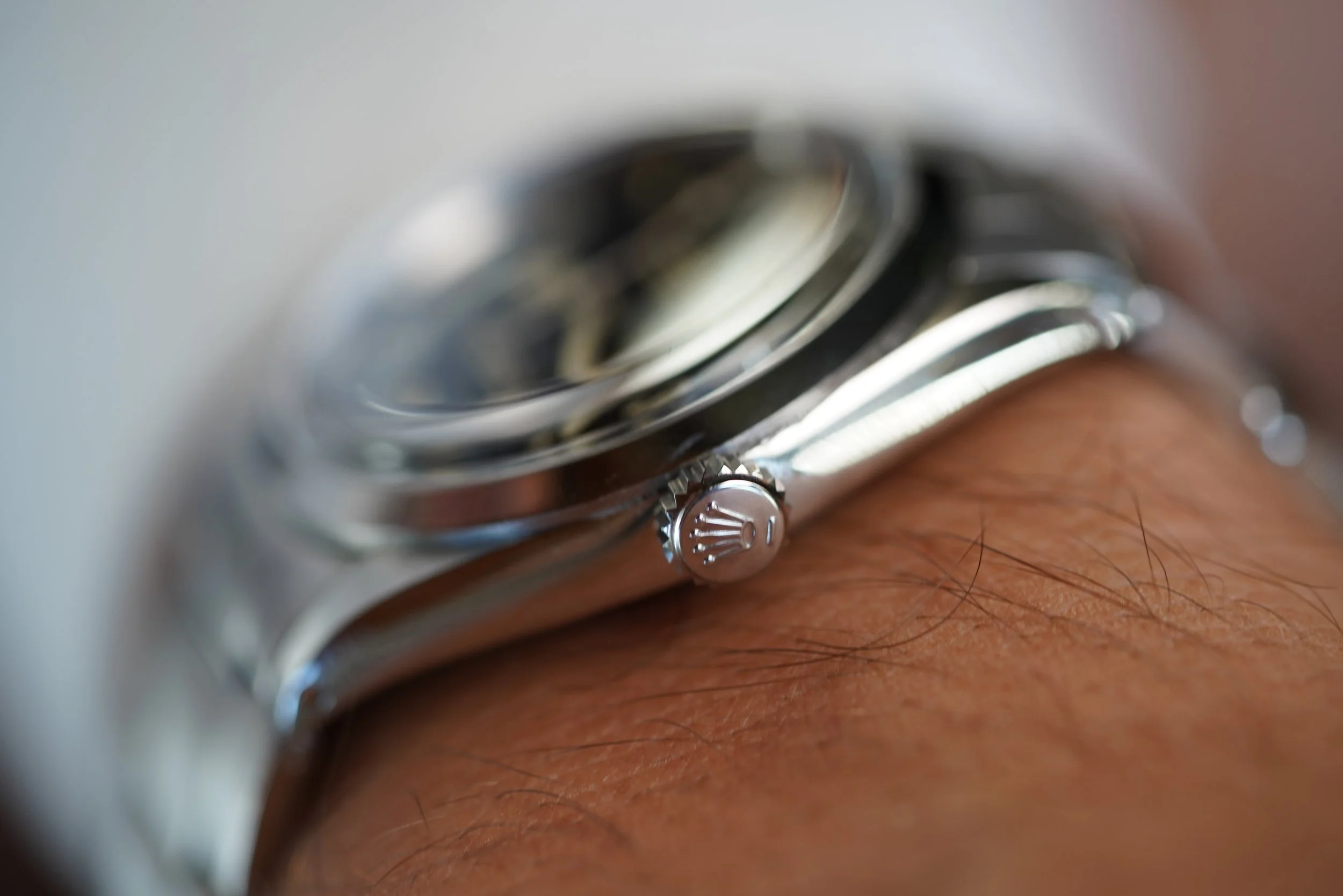 The dial is extremely attractive. There is a slight mark below the pinion, which is very hard to notice without a loupe. The case is 36mm in diameter. It has polished in the past but is attractive on the wrist. For those looking for an amazing gilt 1016, this is a fantastic option!