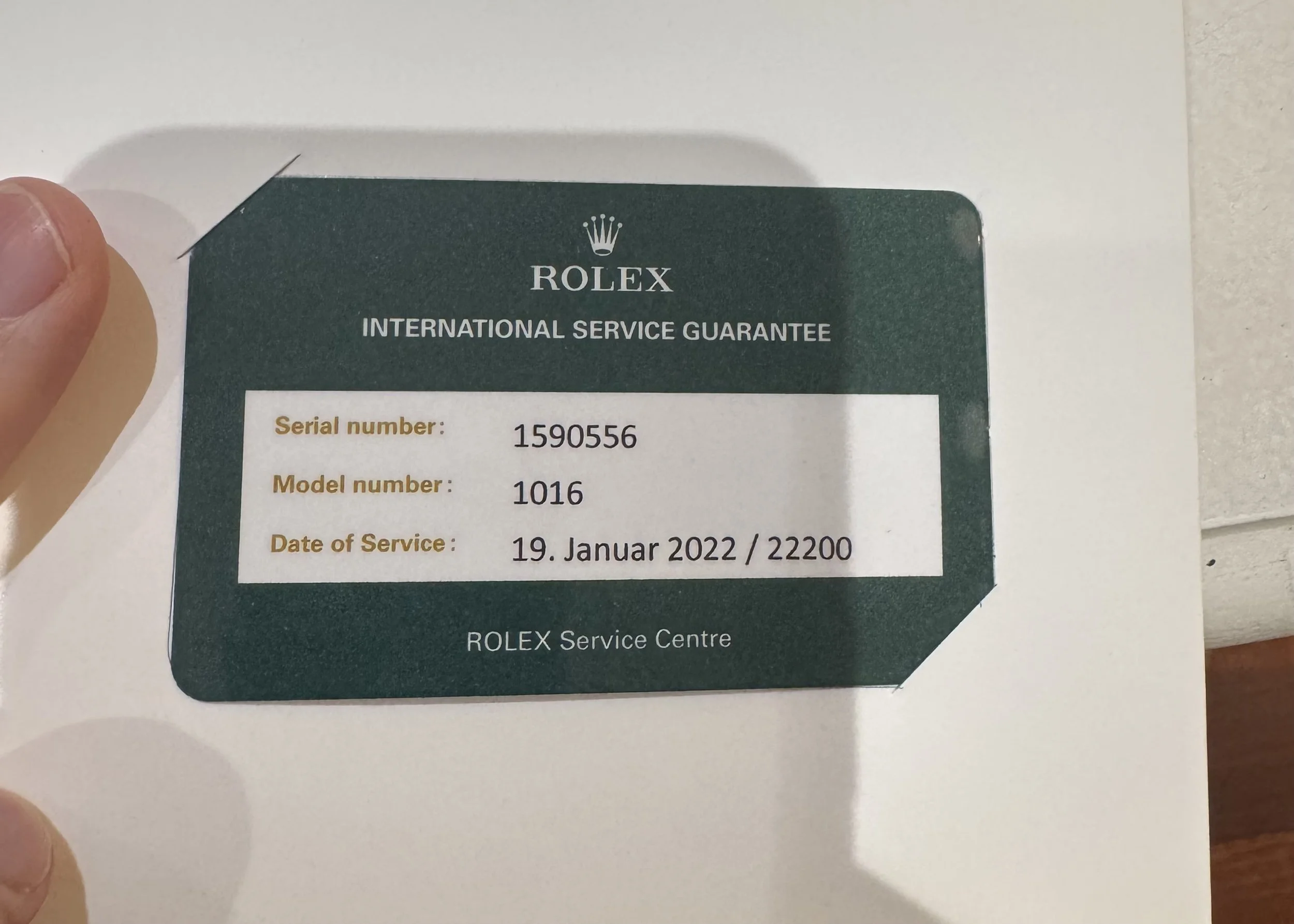 The watch comes with a box and service papers from 2022. It recently passed a water resistance test of 5 bar. It features a replacement crystal.