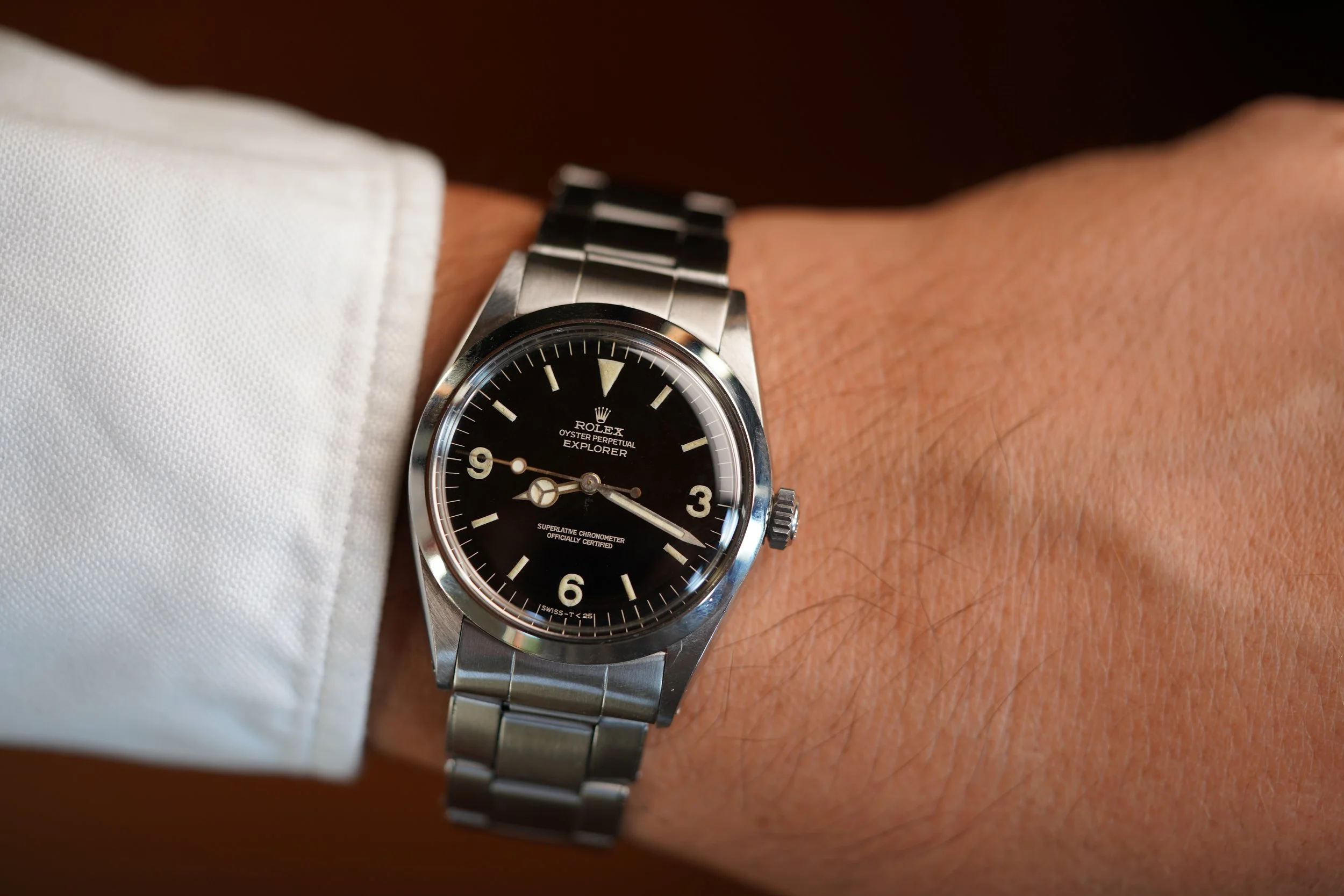 The Rolex Explorer reference 1016 is one of the purest expressions of watch design, and it is for this reason that I am probably asked for vintage Explorer reference 1016s more than any other watch. This model features a gilt dial and dates to circa 19667 with a 1.59M serial. It is paired on a stretch 7206 Rolex bracelet with 58 end links dating to 4th quarter of 1966.